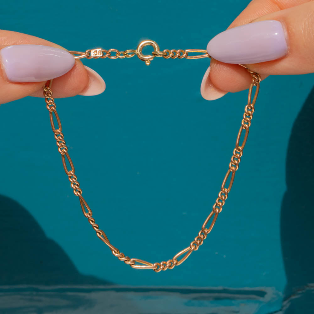 The delicate design of this Victorian Gold bracelet makes her a wonderful addition to any wrist stack, or wear her alone to add a subtle splash of splendour to any attire. You won't regret becoming the new proud owner of this Gold Figaro bracelet!