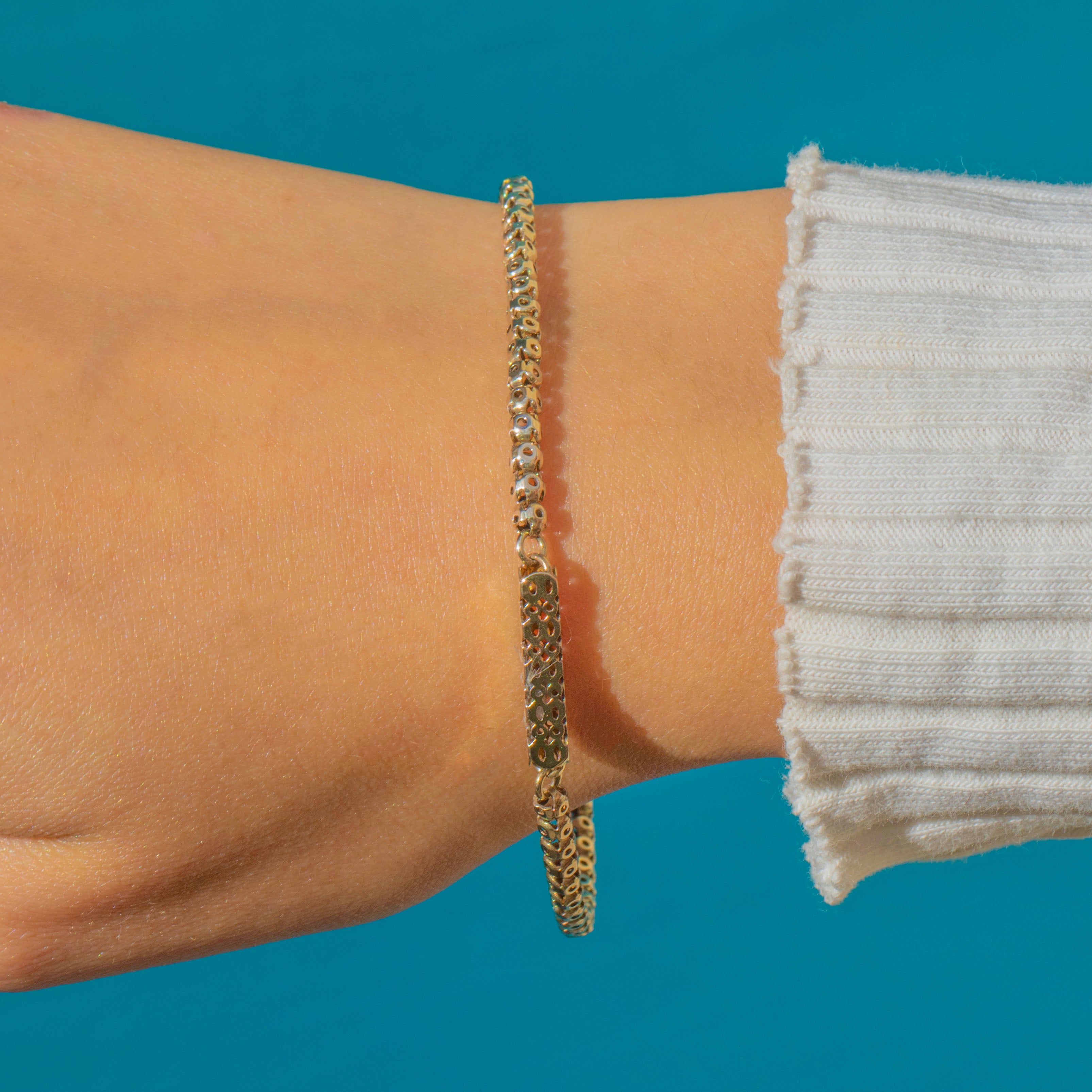 Charming in detail and versatile in style, it’s perfect worn alone for a delicate antique touch or layered with other bracelets for a more contemporary stack.