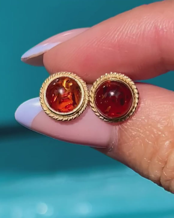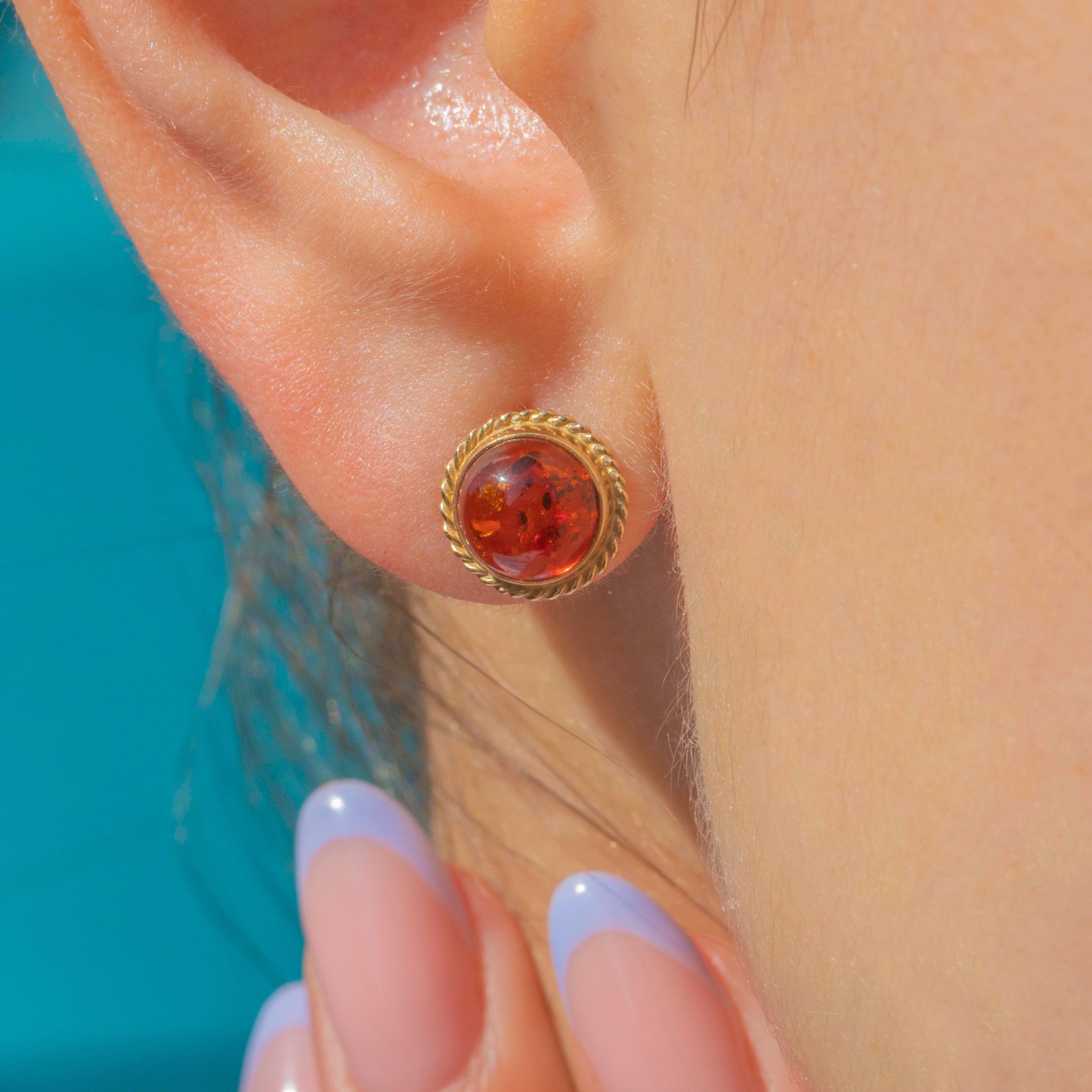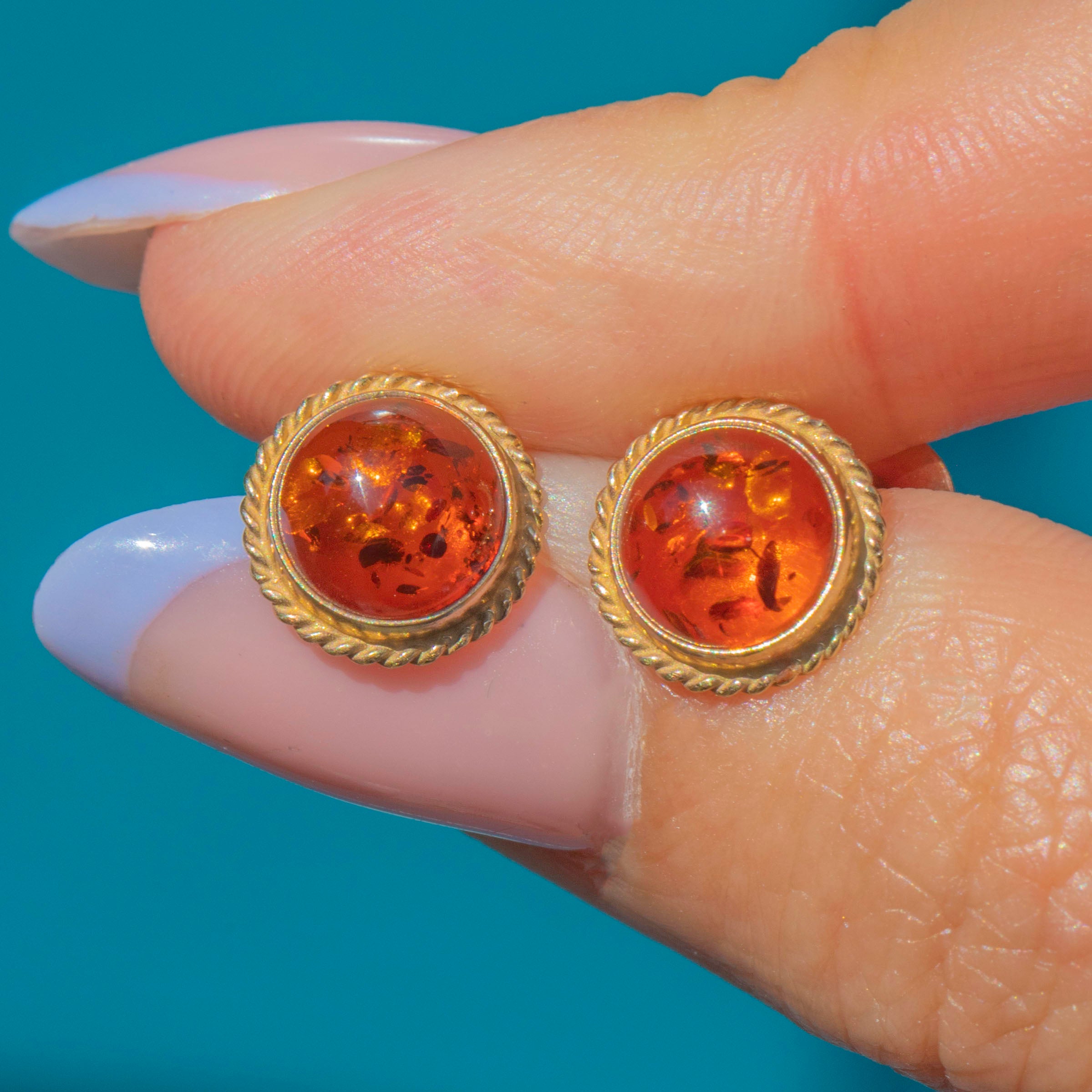 EXCELLENT: With nothing to report, these 9ct Gold Amber round stud earrings are in excellent condition!