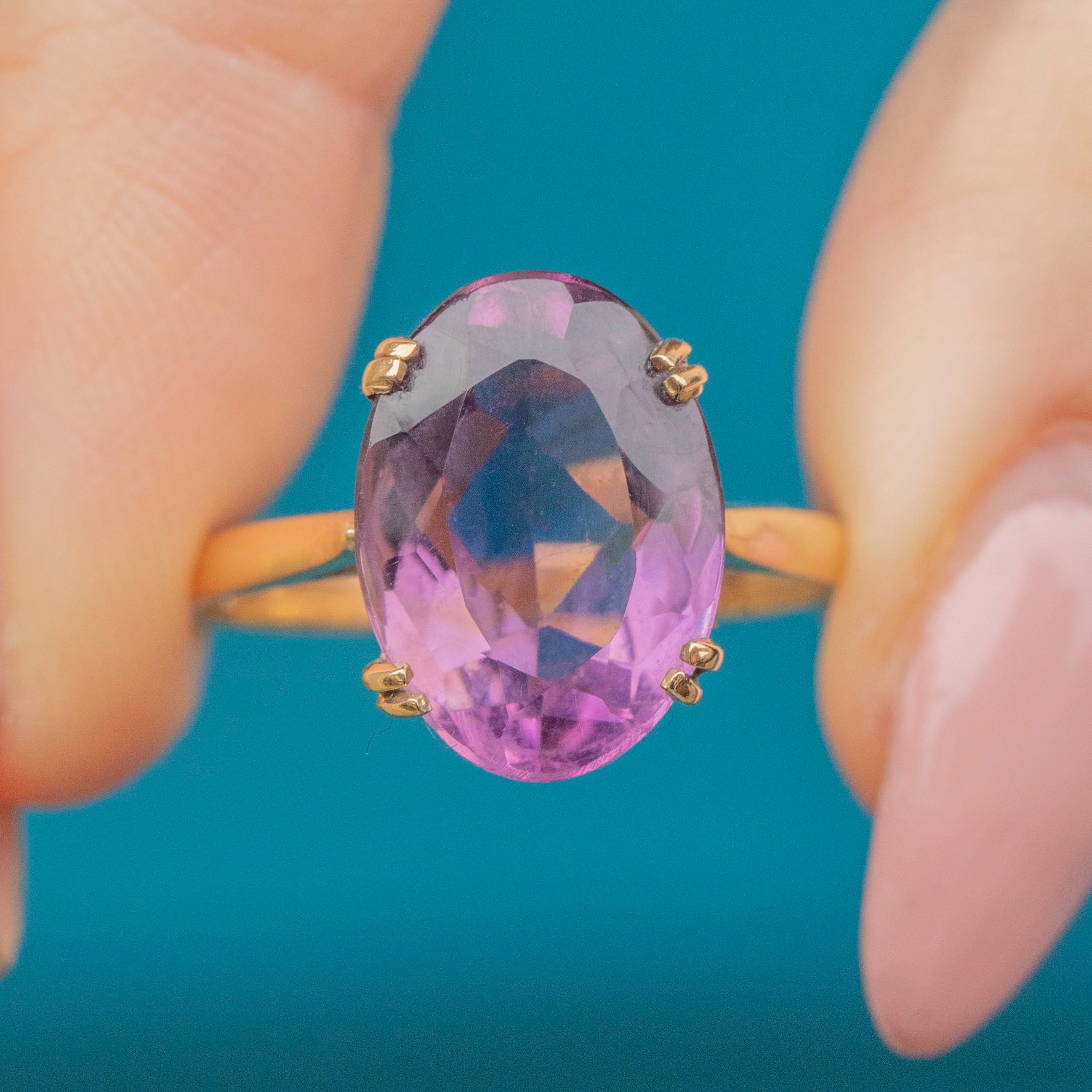 This vintage Amethyst ring would be a fabulous show-stopper to have in your collection. The colour of the Amethyst is a quintessentially feminine shade of lavender, with hints of blue just peeking through the facets. Completing this elegant piece is a 2mm wide 9ct Gold ring shank with a full set of vintage hallmarks inside.