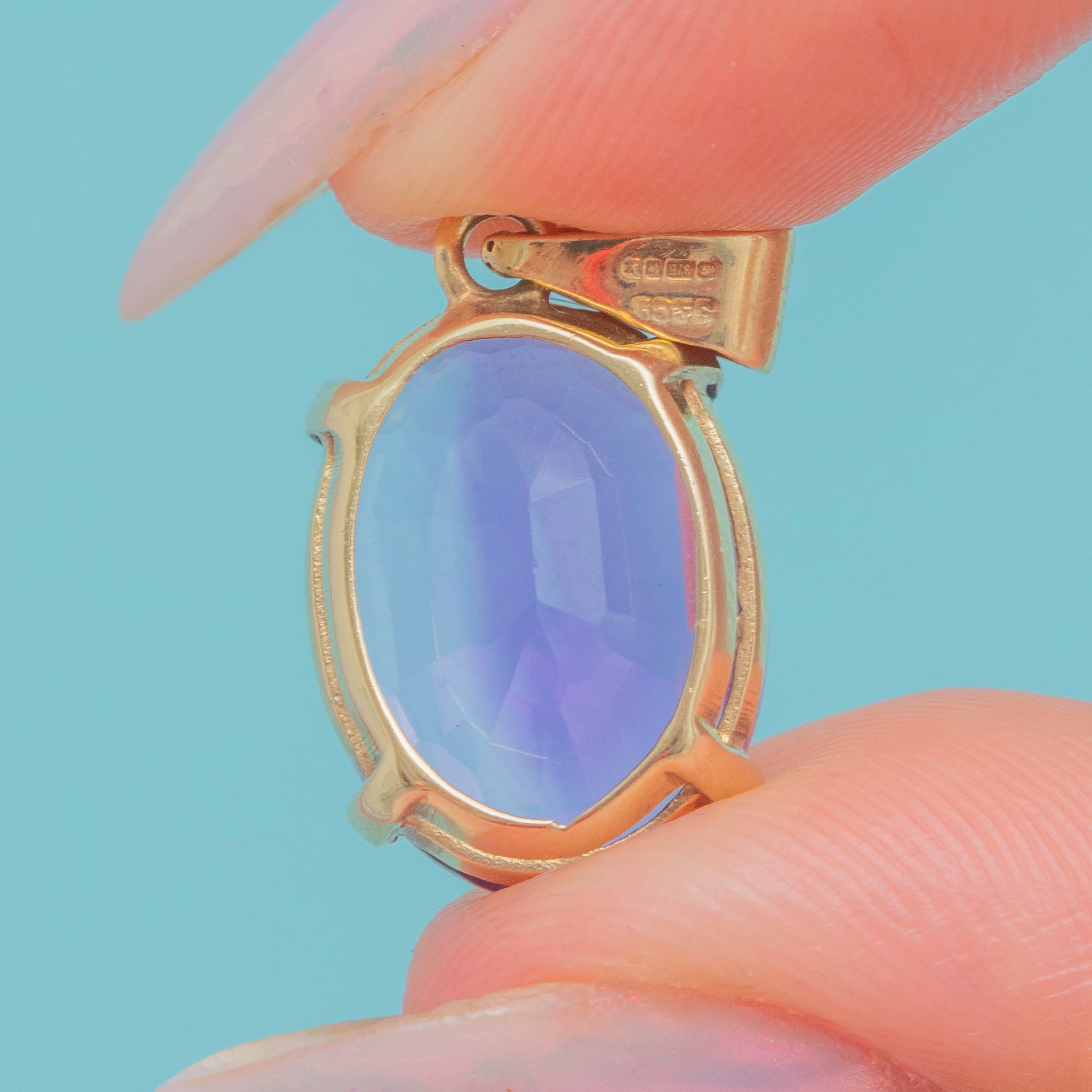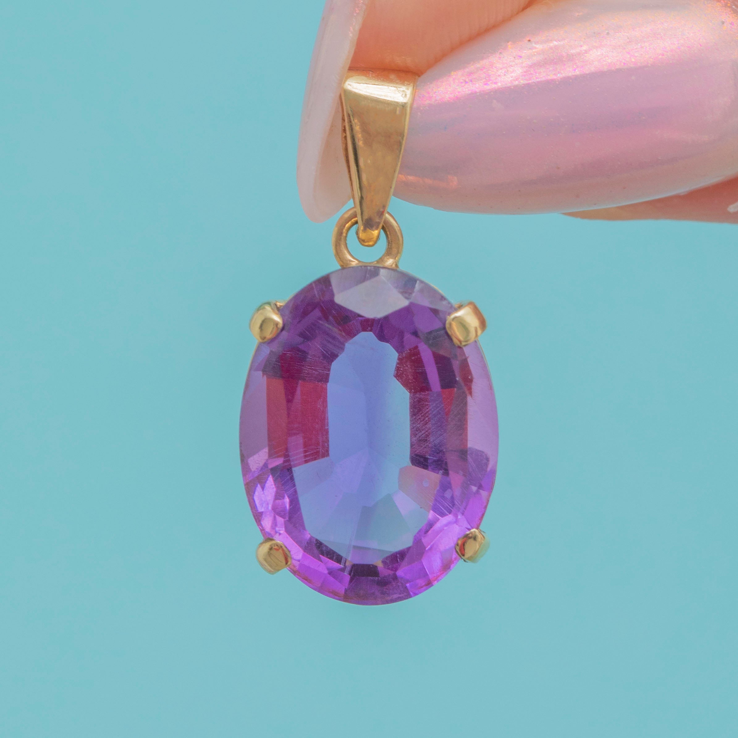 EXCELLENT: The 7.45ct Amethyst is securely set and free from chips or abrasions. The Gold has an even, buttery hue throughout, and the bale is securely soldered, promising many more years of wear and enjoyment!