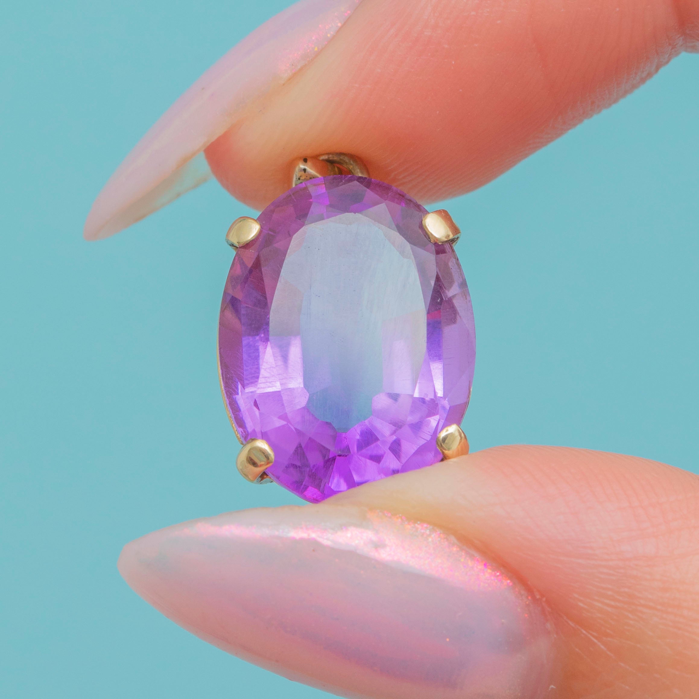 This divine vintage Amethyst pendant will look sublime when suspended from your favourite Gold chain. Perfect for adding a flash of vibrance to your outfit, the purple orchid hue of this 7.45ct Amethyst is sure to impress!