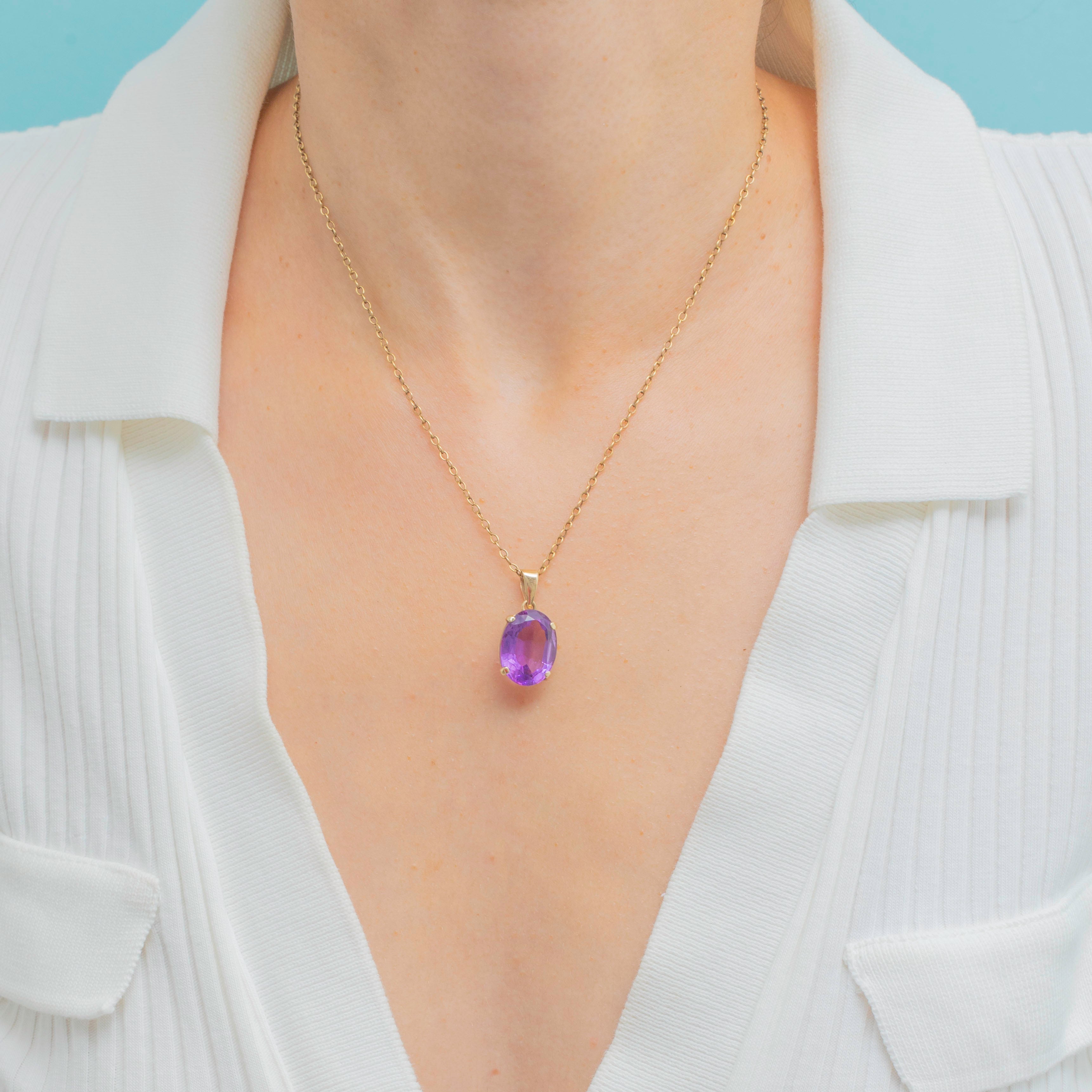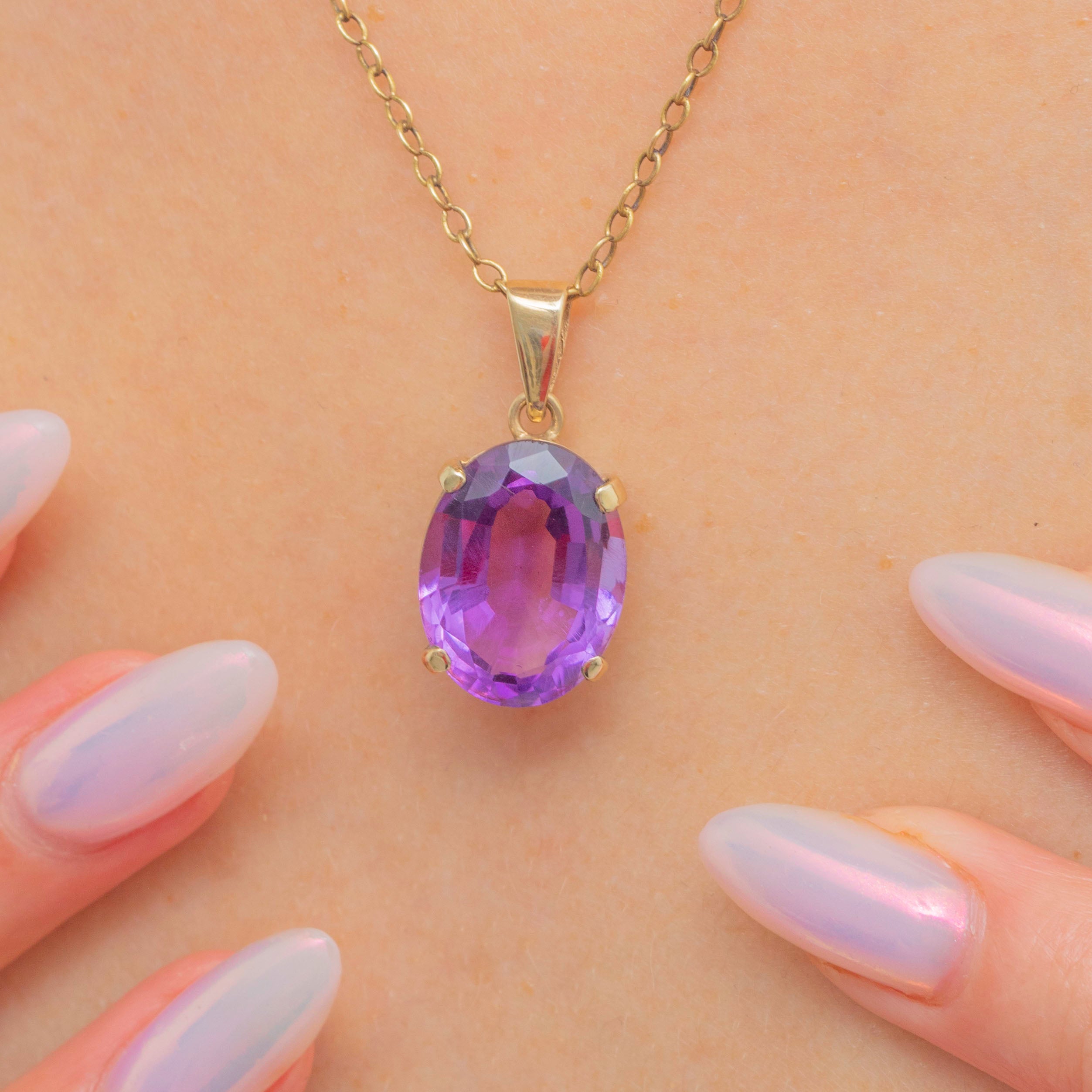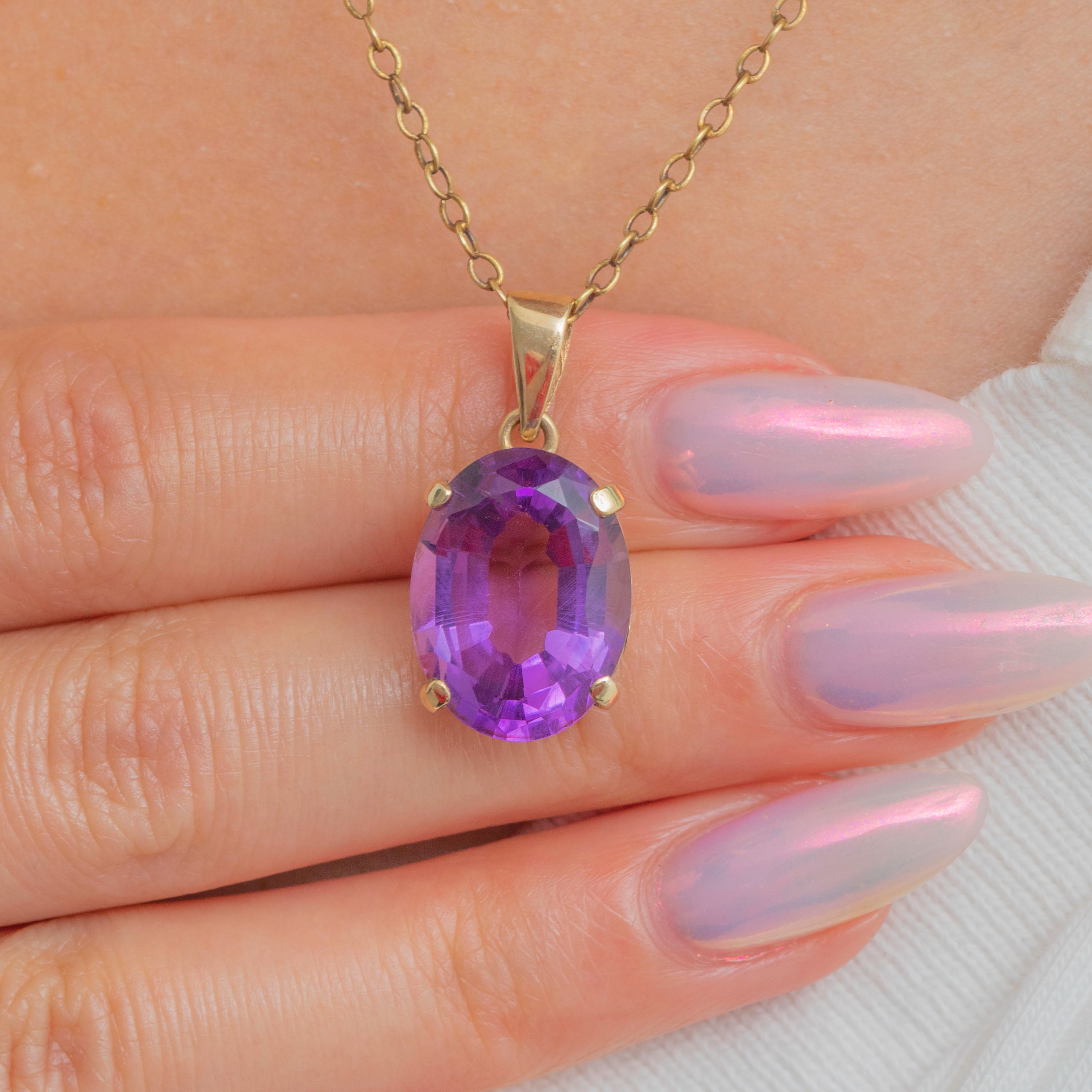 9ct Gold Amethyst Oval Pendant 7.45ct
