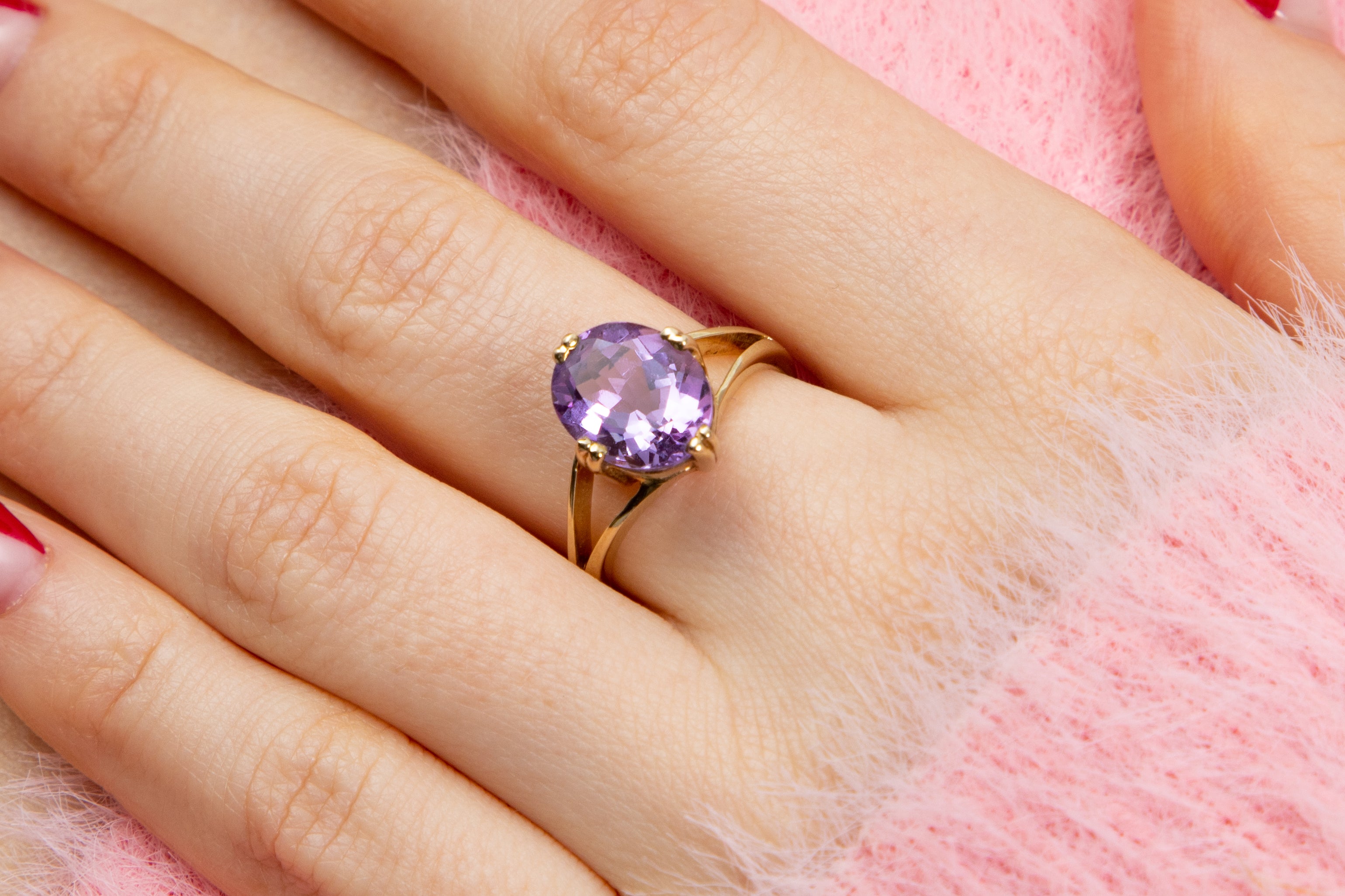 9ct ゴールド アメジスト オーバル ソリティア リング、2.70ct