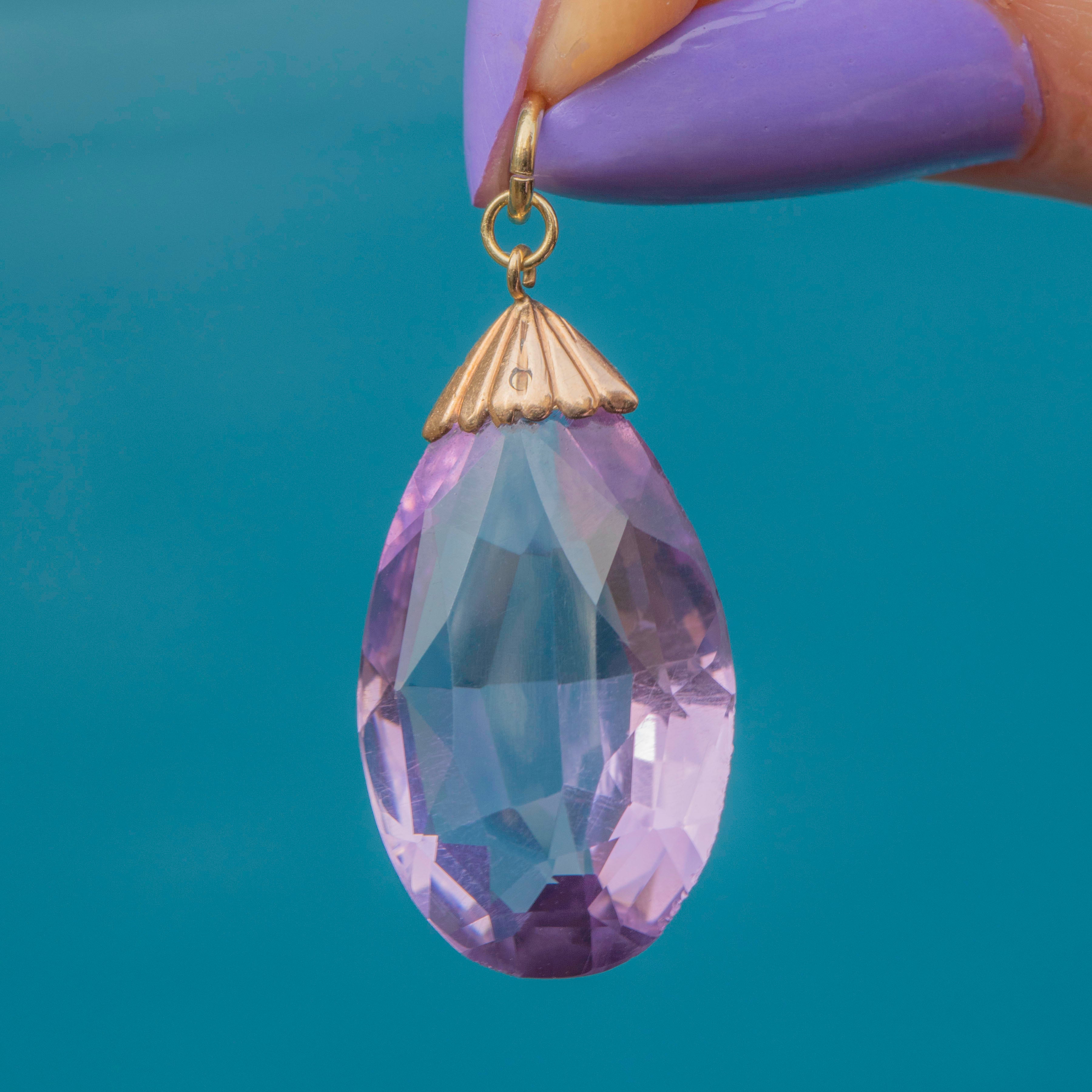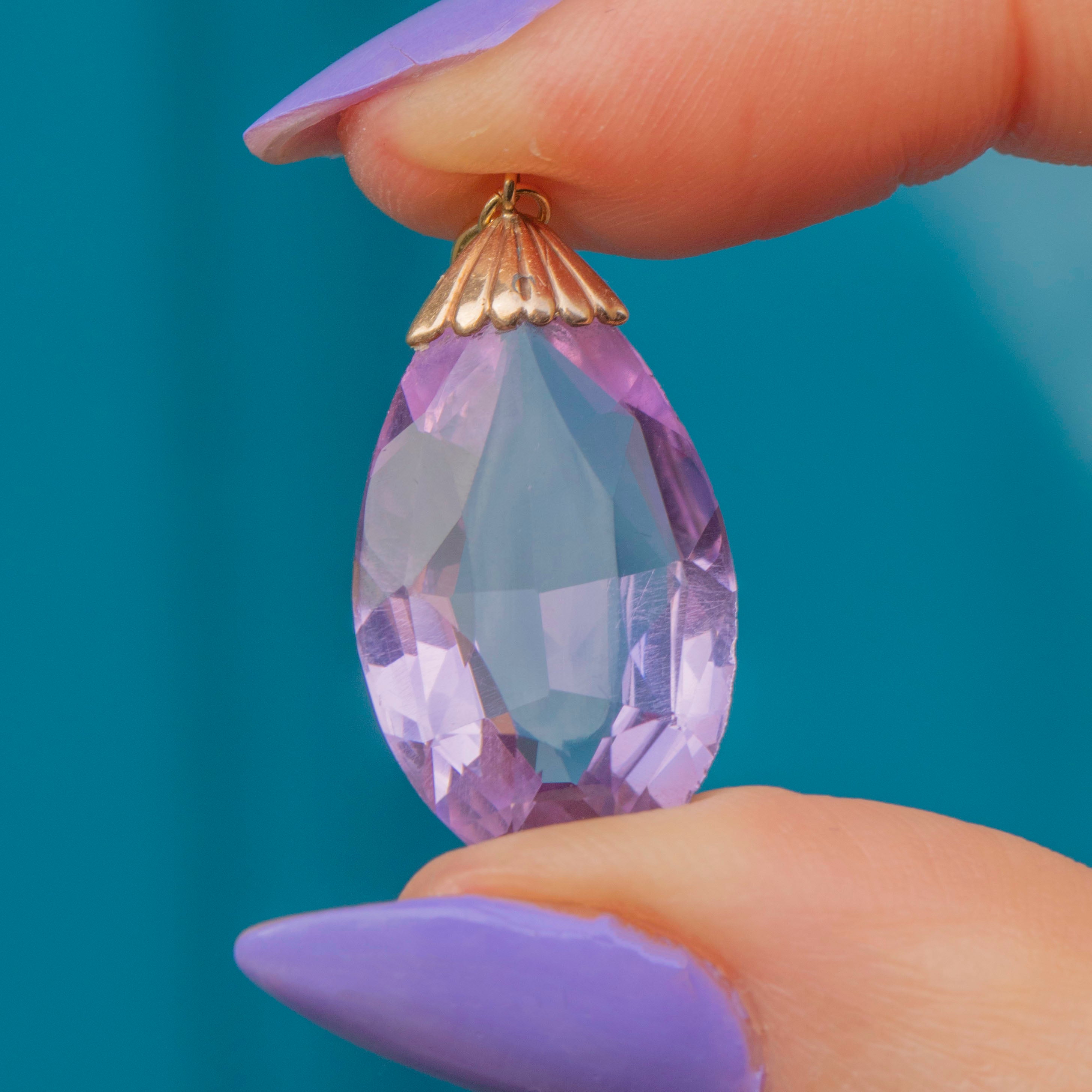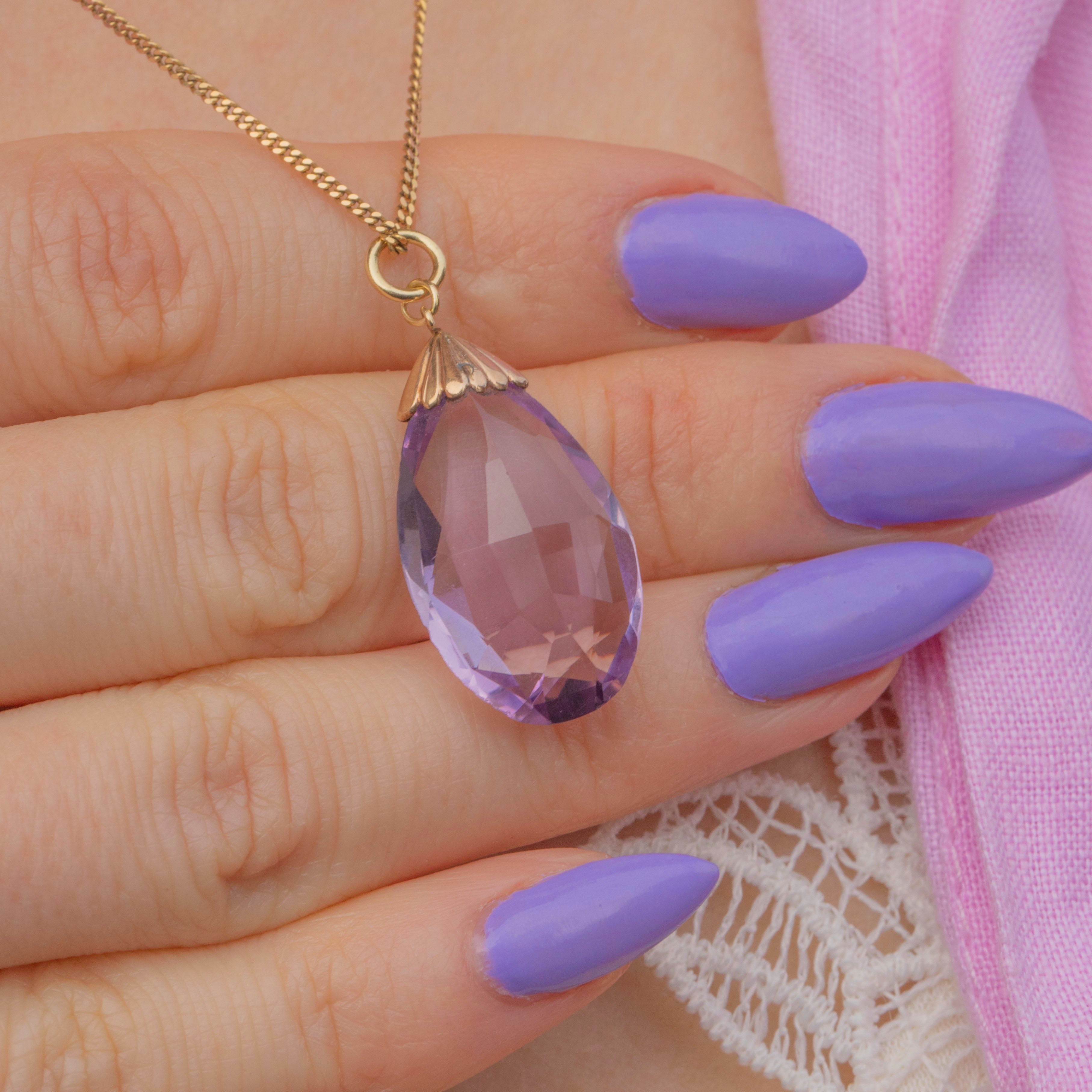Art Deco 9ct Gold Amethyst Pear Drop Pendant, 9.35ct
