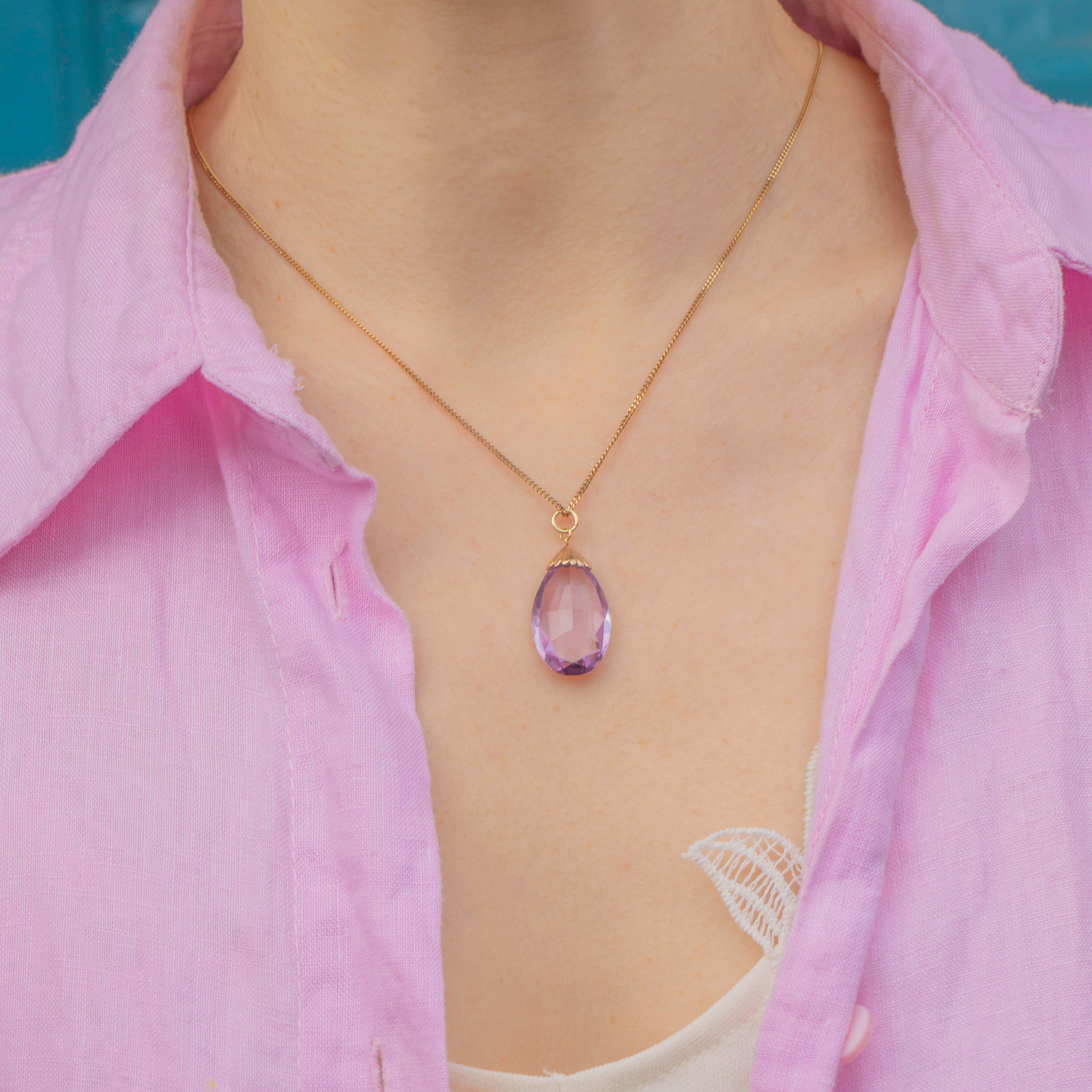 VERY GOOD: This stunning Art Deco 9ct Gold Amethyst pear drop pendant remains in lovely antique condition, with only mild wear to the Gold and subtle surface marks on the Amethyst—nothing that dims its radiant sparkle! A true Victorian treasure, still as enchanting and wearable as ever.