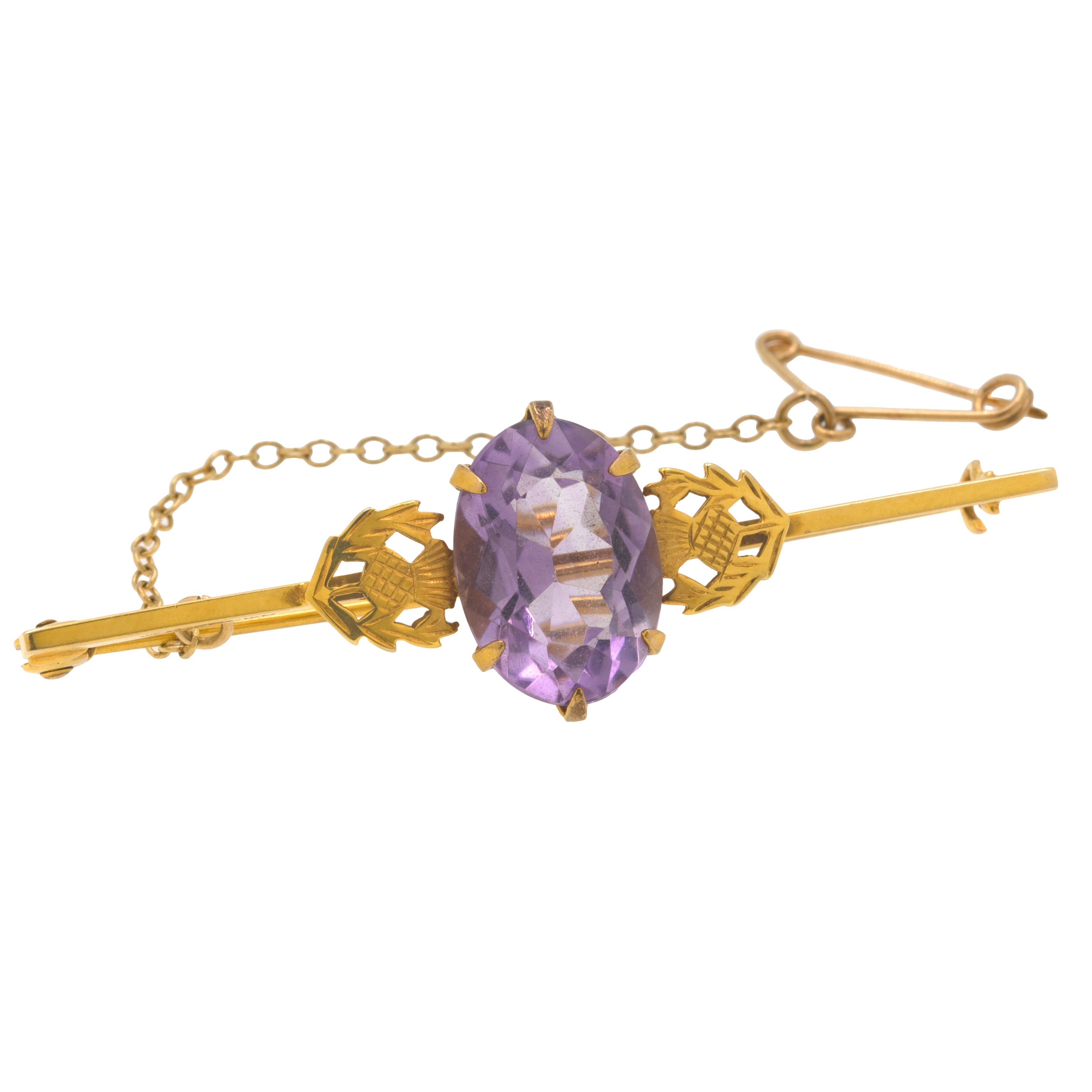 9ct ゴールド アメジスト スコティッシュ シスル ブローチ、4.90ct