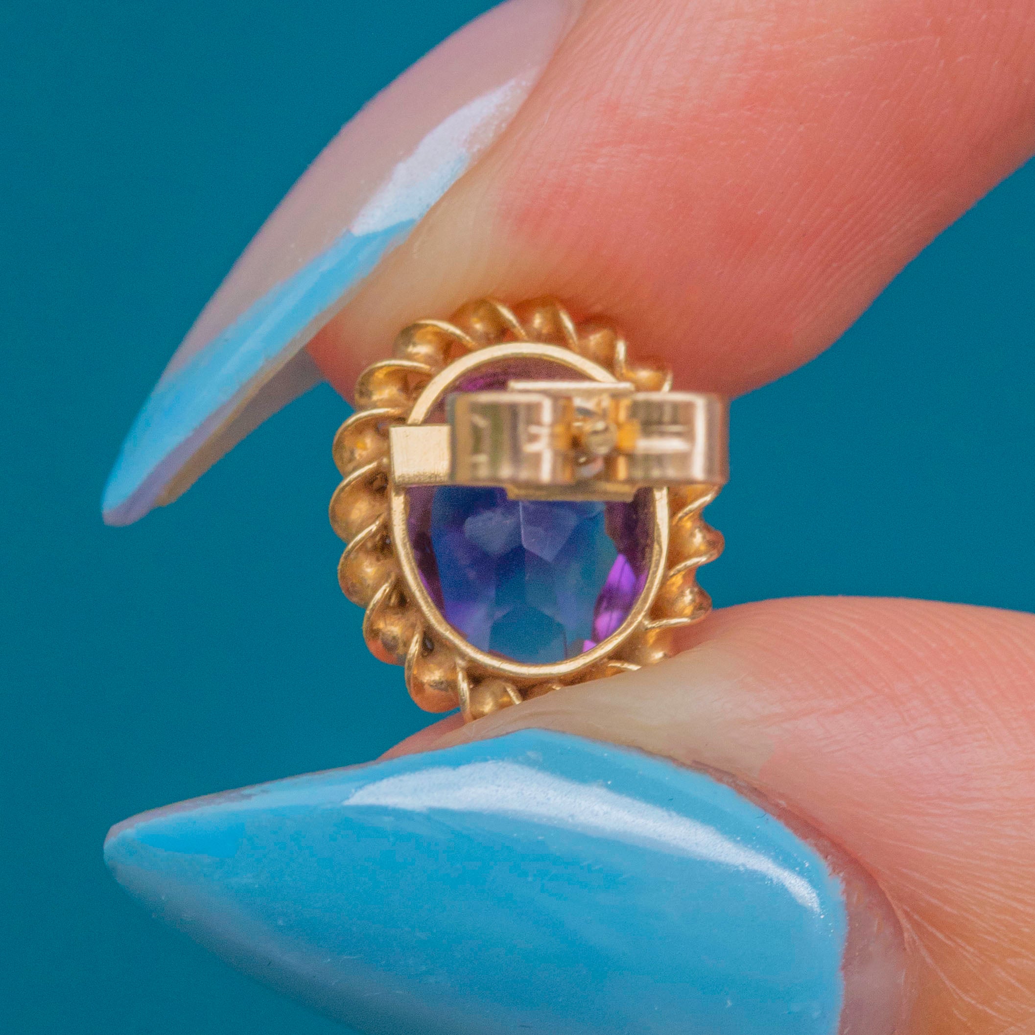 MATERIALS: Tests as 9ct Gold, Amethysts (1.25ct).