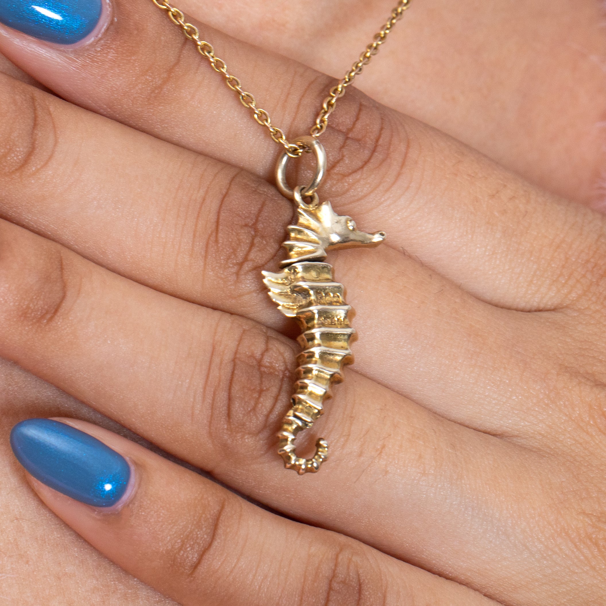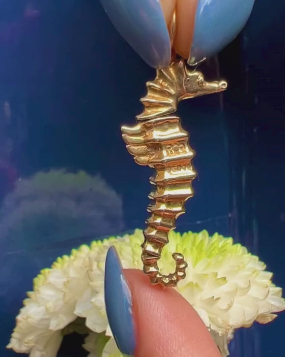 9ct ゴールド 可動式タツノオトシゴチャーム
