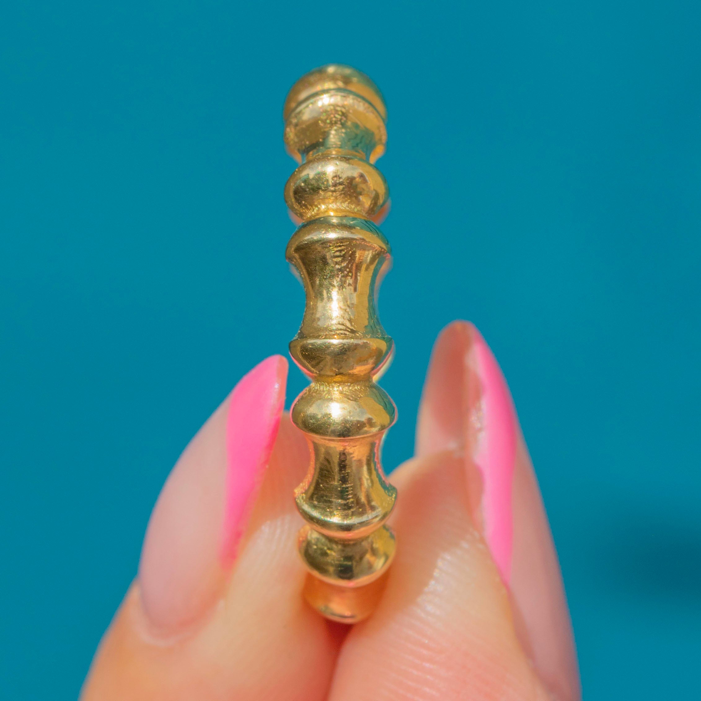 Crafted from solid 9ct Gold, this buttery delight has elegantly curved lines and the bamboo details catch the light beautifully. Slender in form, this vintage Gold band will bring elegance to your collection!