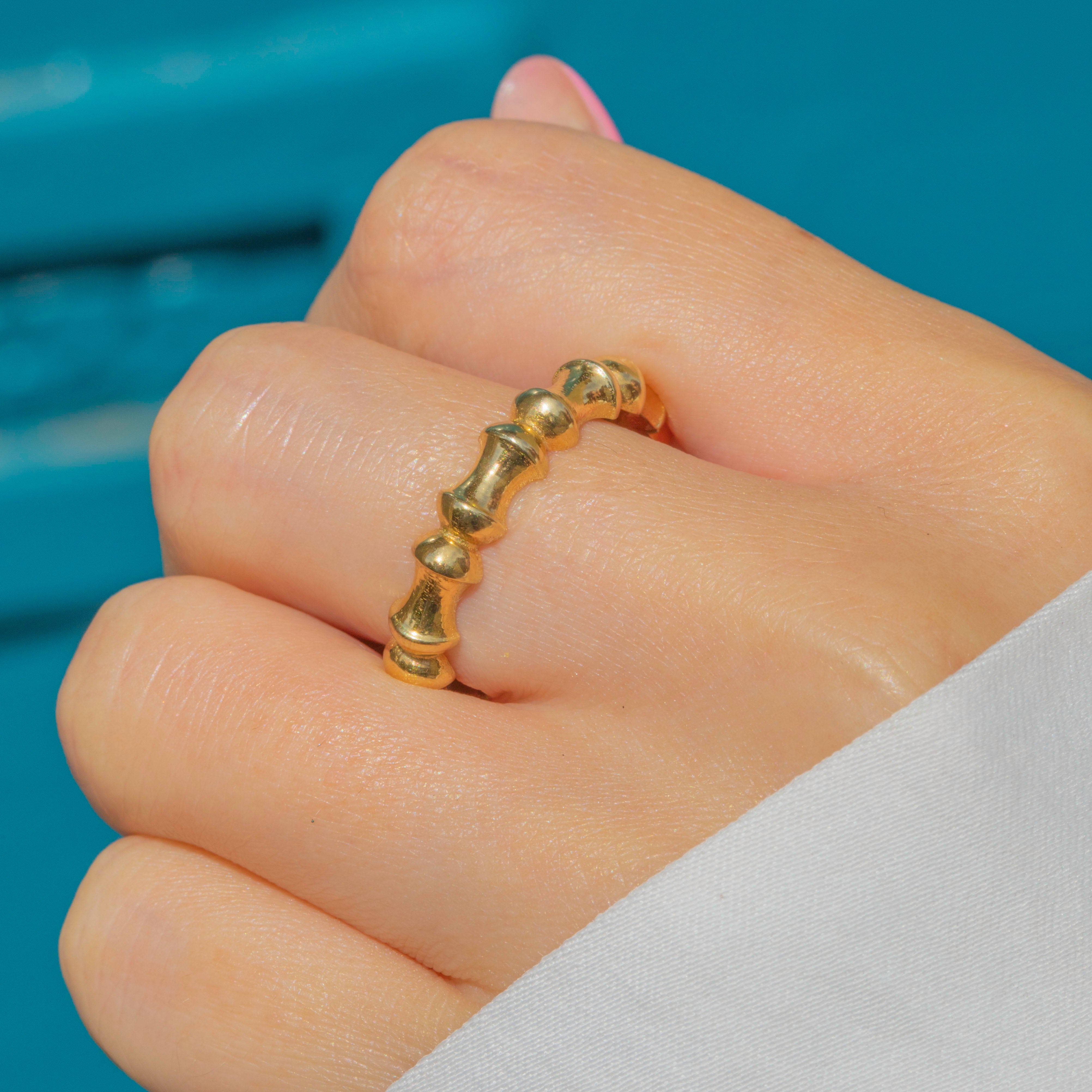 Perfect for adding texture to your curated ring stack, this 9ct Gold bamboo ring is a gorgeous piece and ideal for everyday wear!