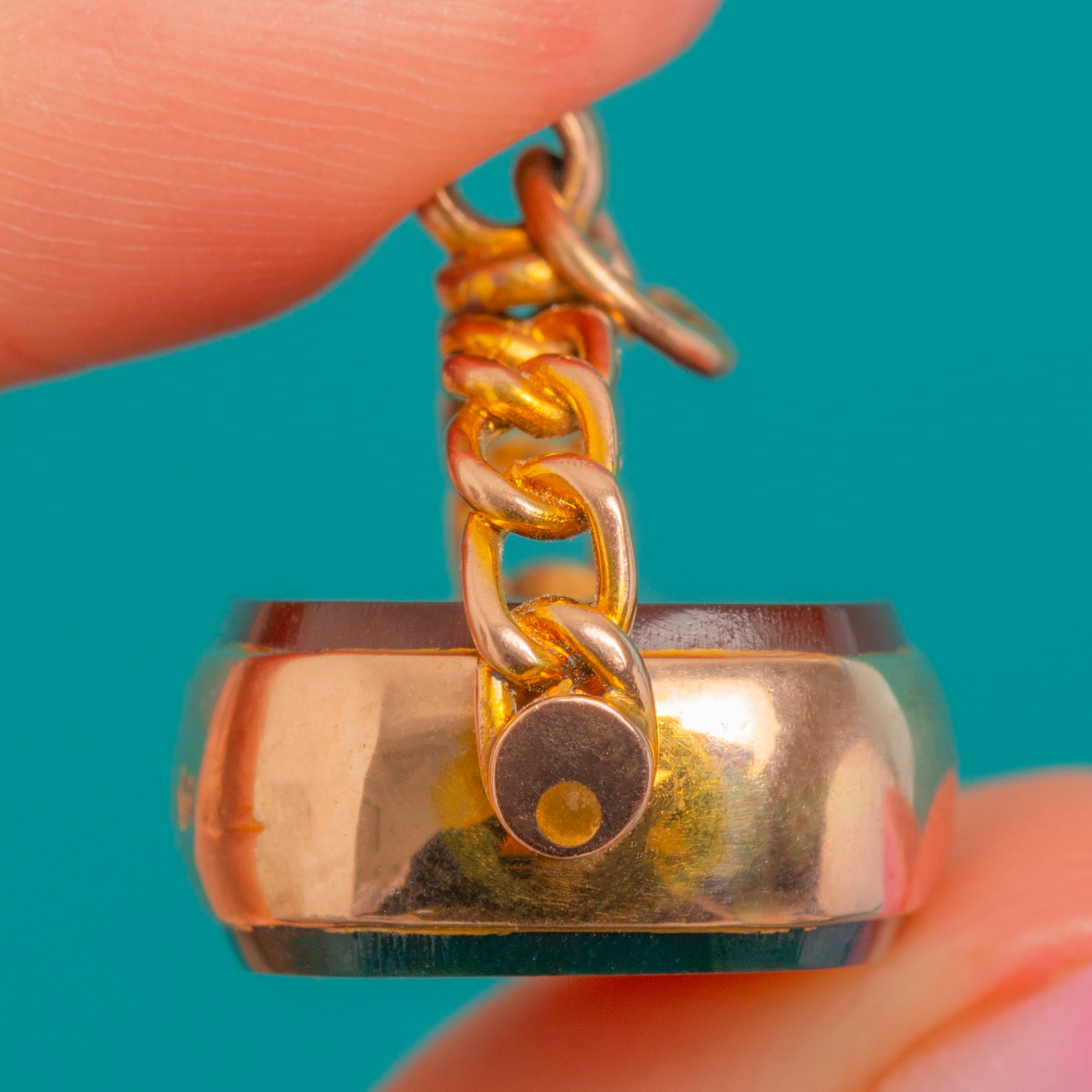 MATERIALS: Tests as 9ct Gold, Bloodstone, Carnelian.