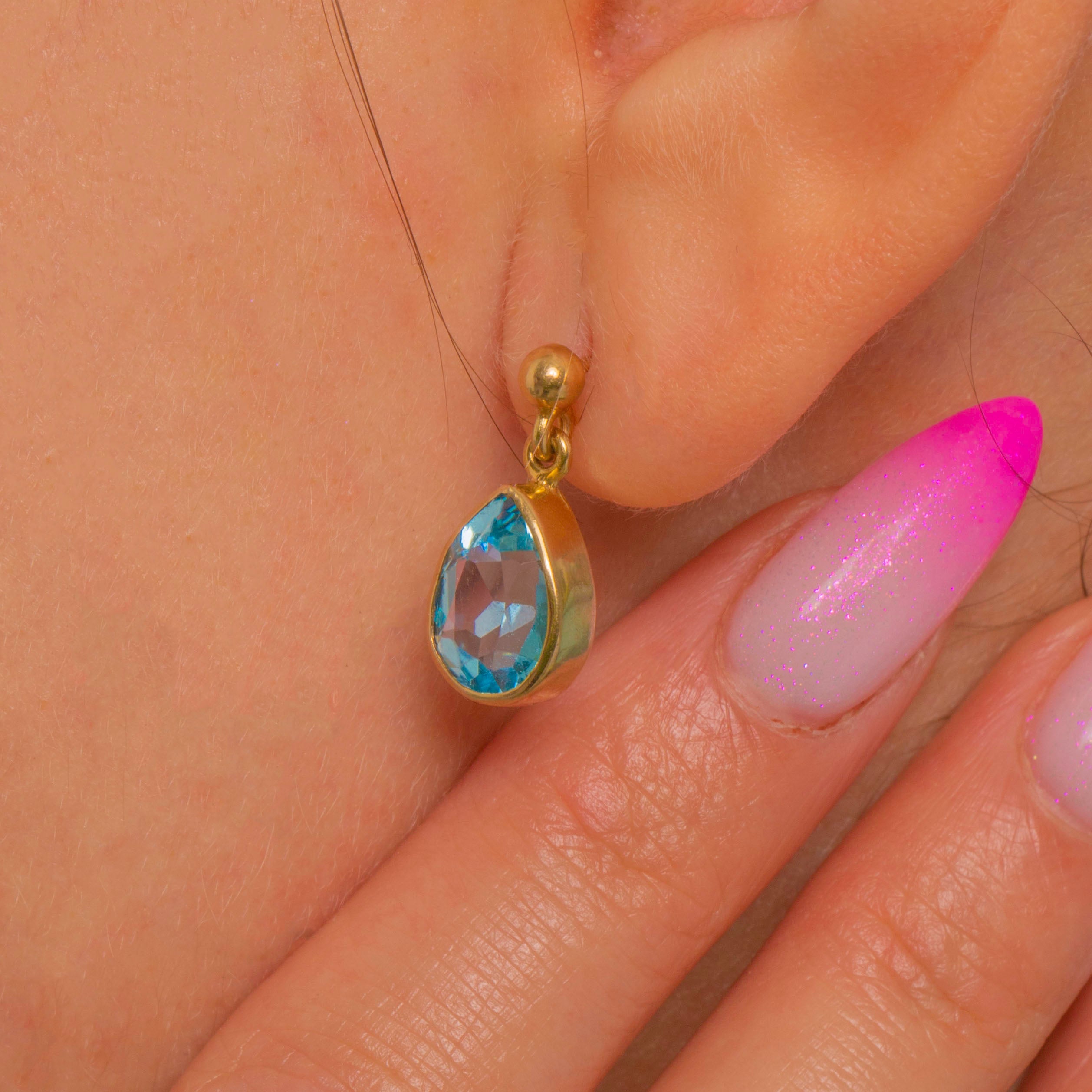 9ct Gold Blue Topaz Pear Drop Earrings