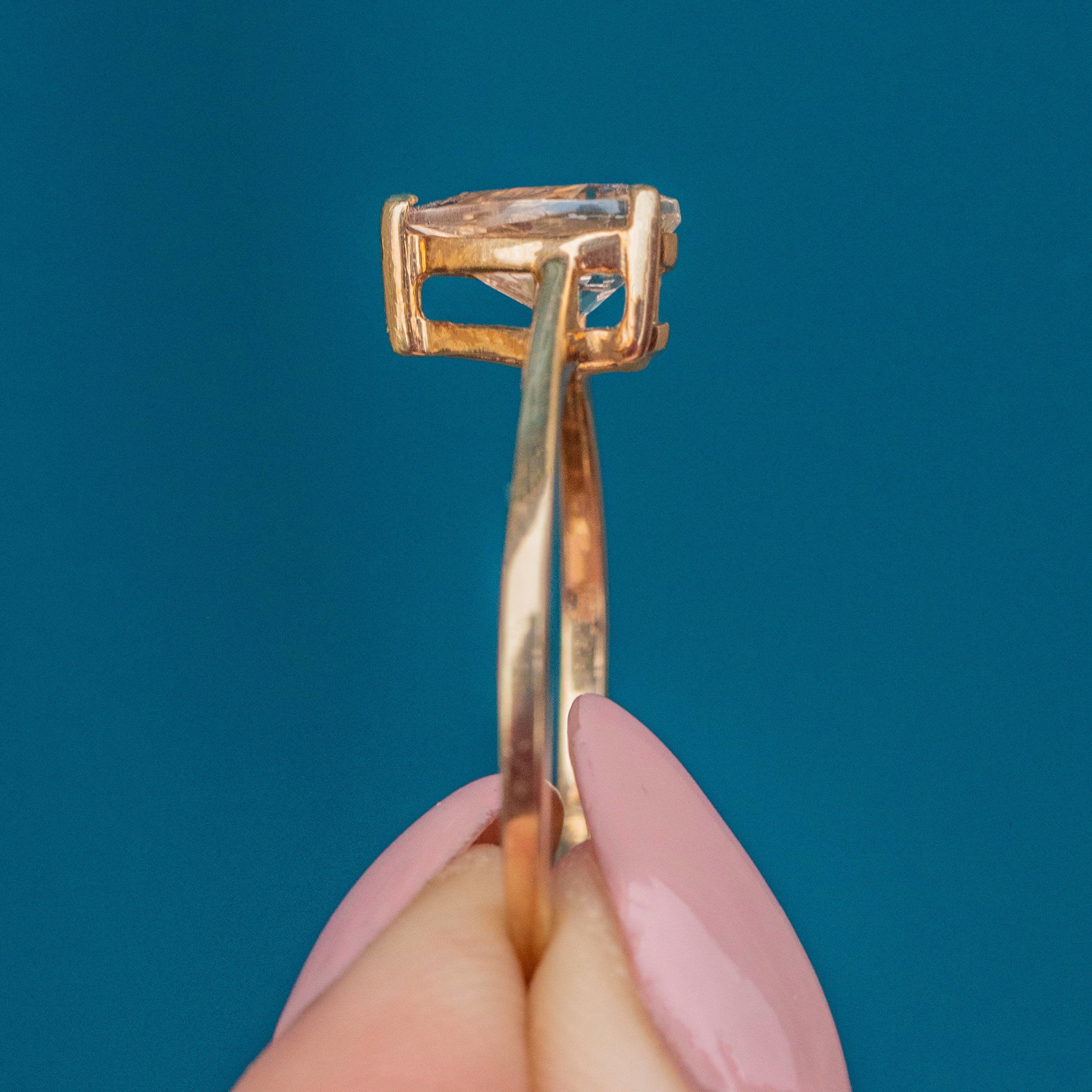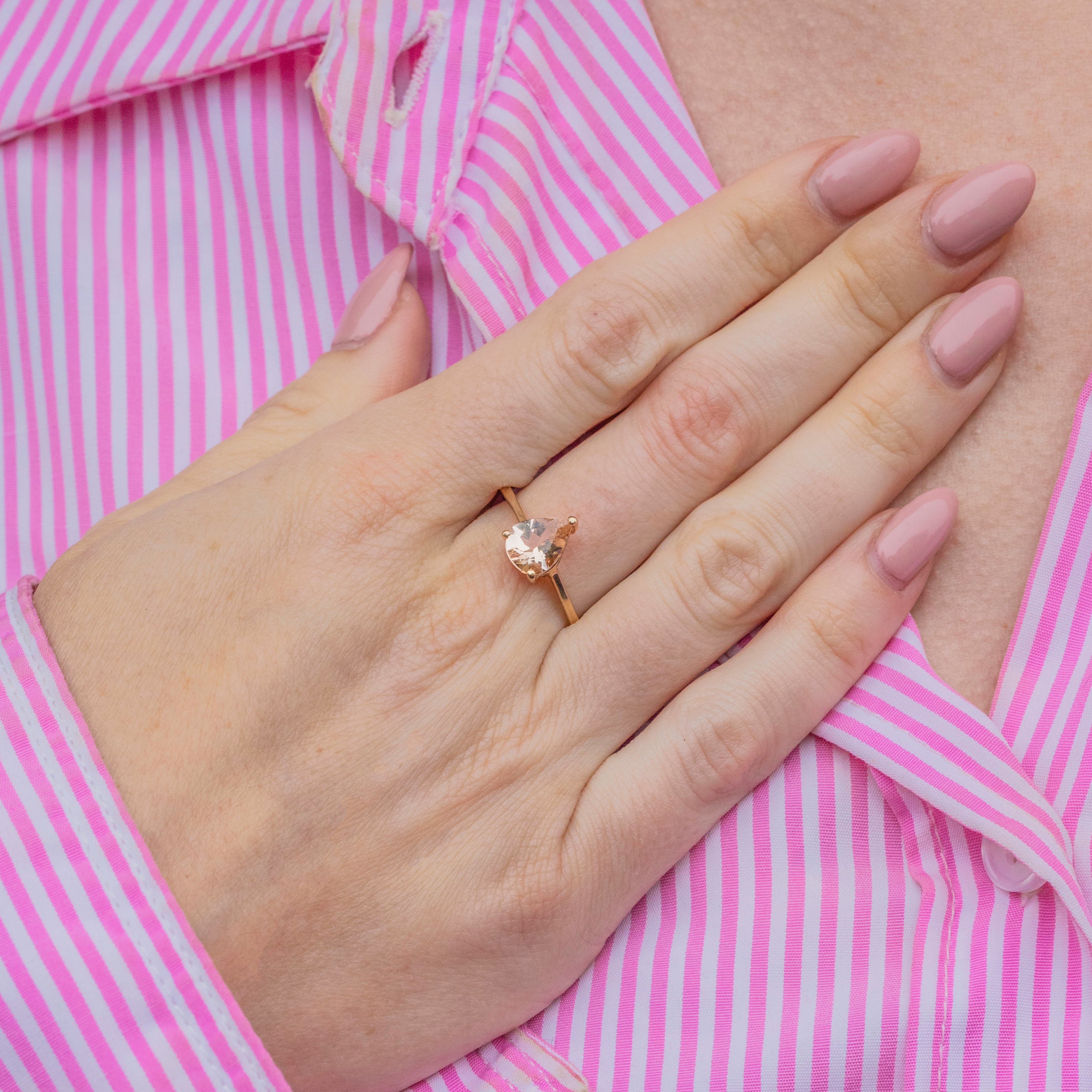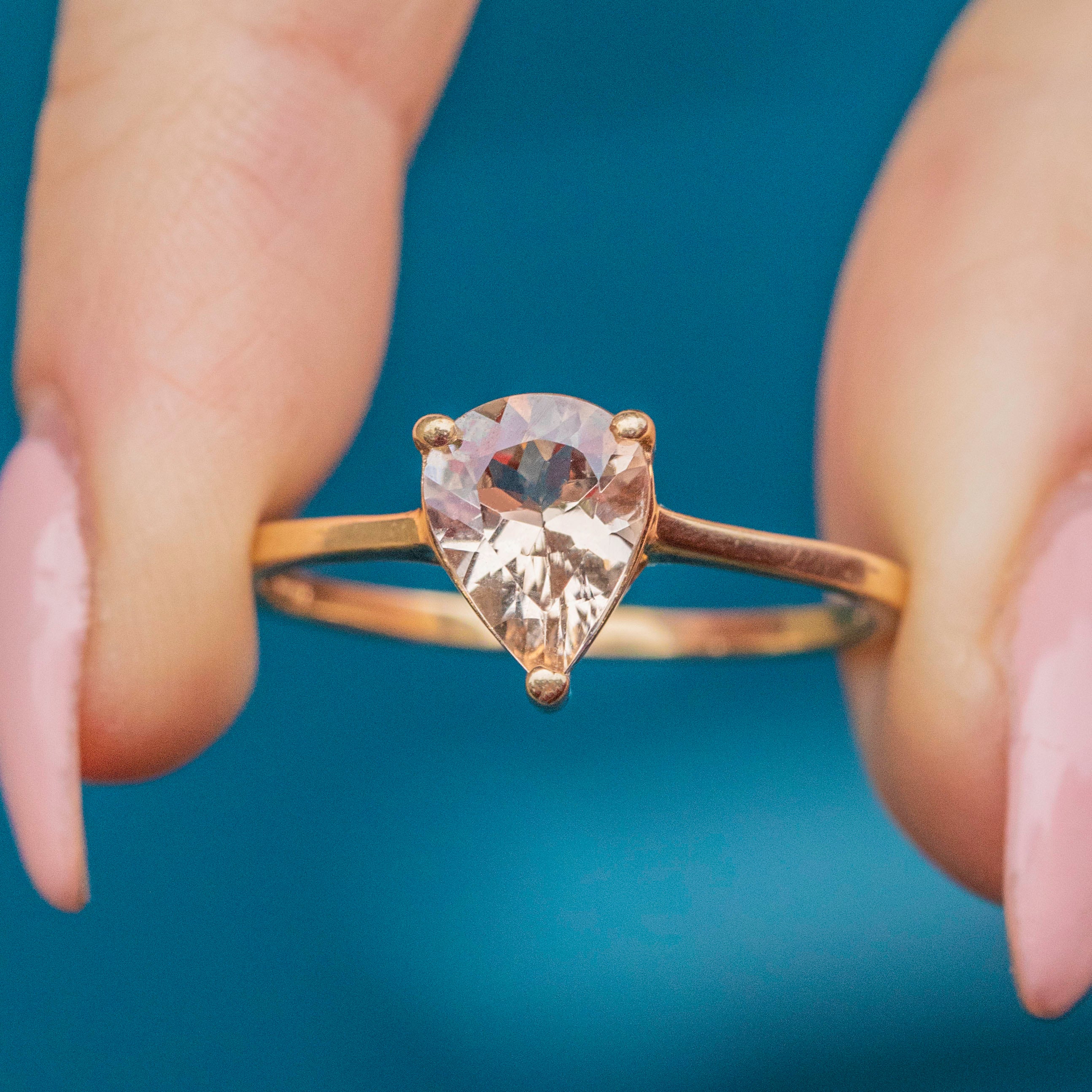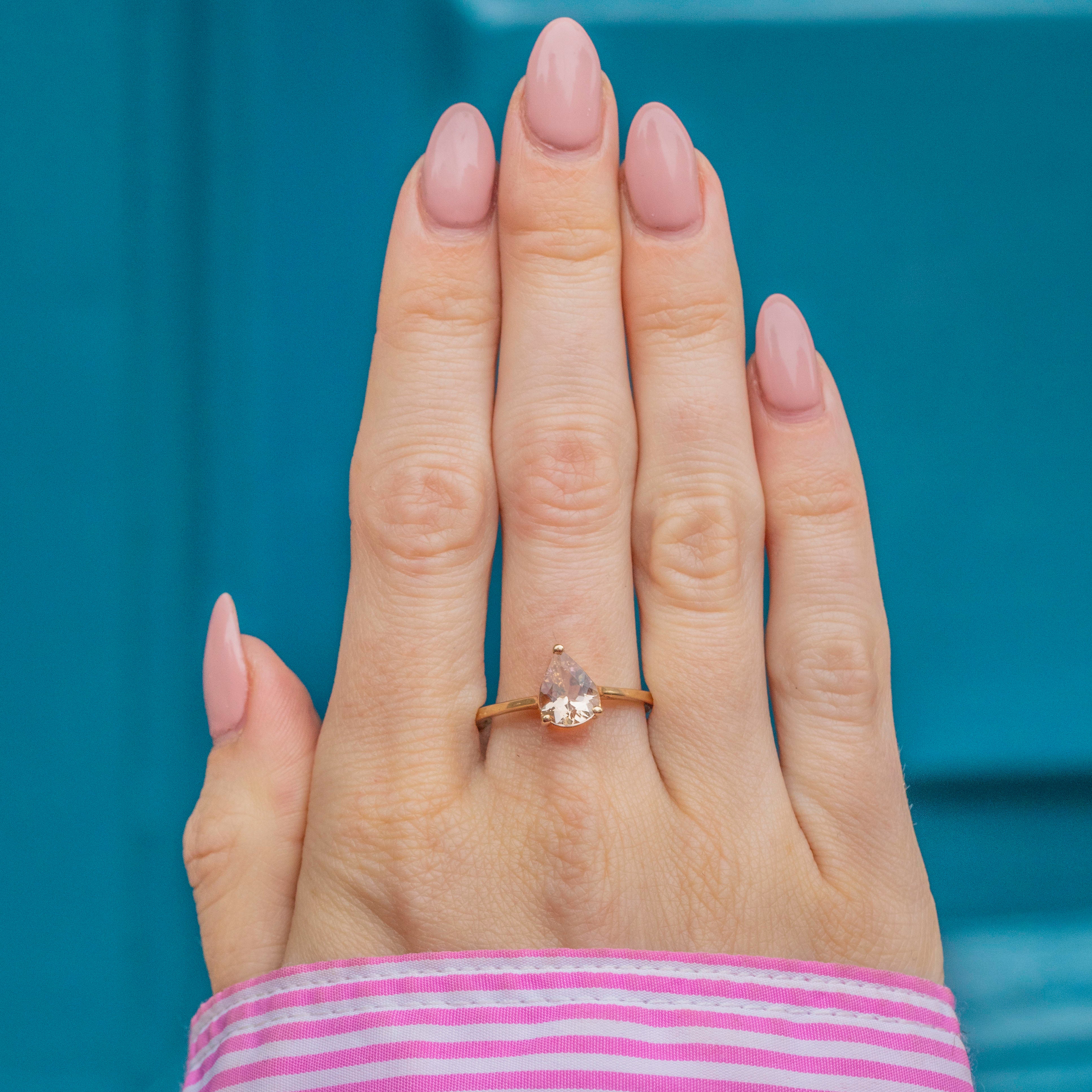 For lovers of soft pastel hues, this 9ct Gold blush Tourmaline pear-cut ring will grab your attention!