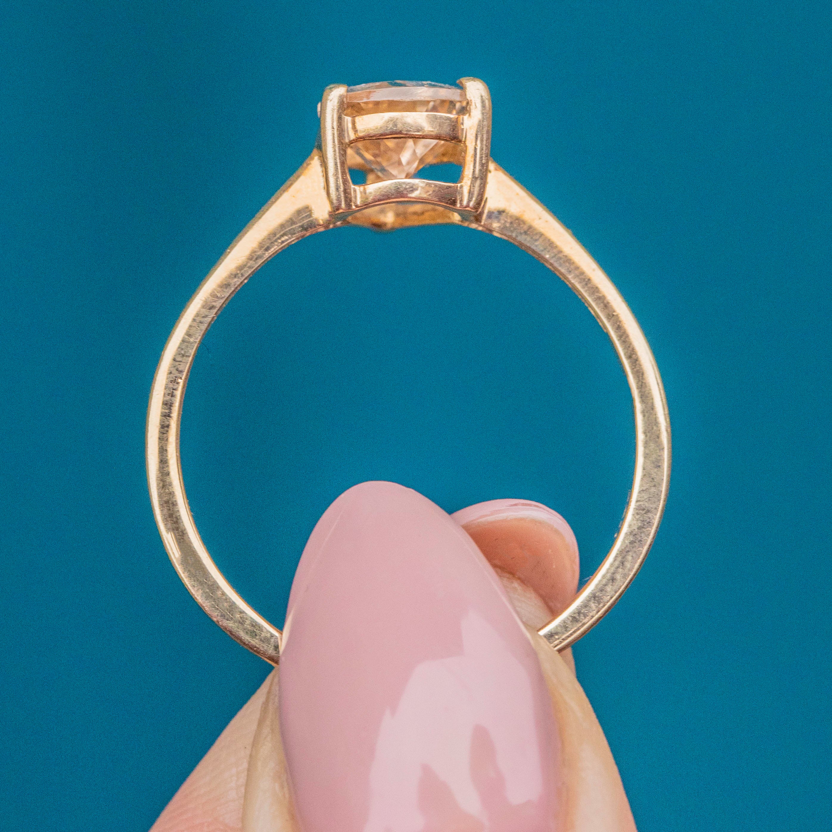 You can't help but become captivated by the pastel pink and peachy hues that dance between the facets of her Tourmaline. Supported around your finger by a buttery 9ct Gold ring band, the timeless design is what makes this Gold Tourmaline ring so irresistible.