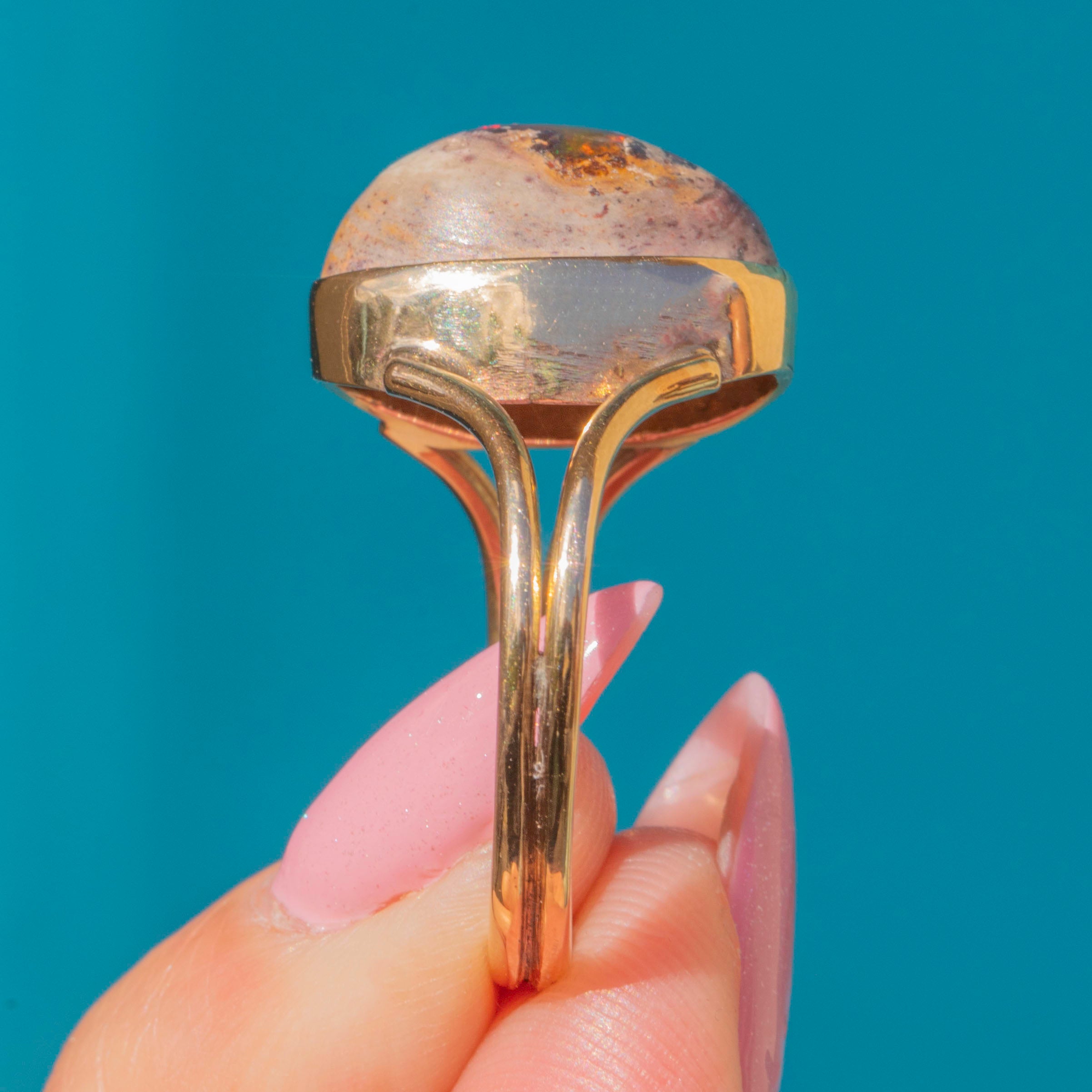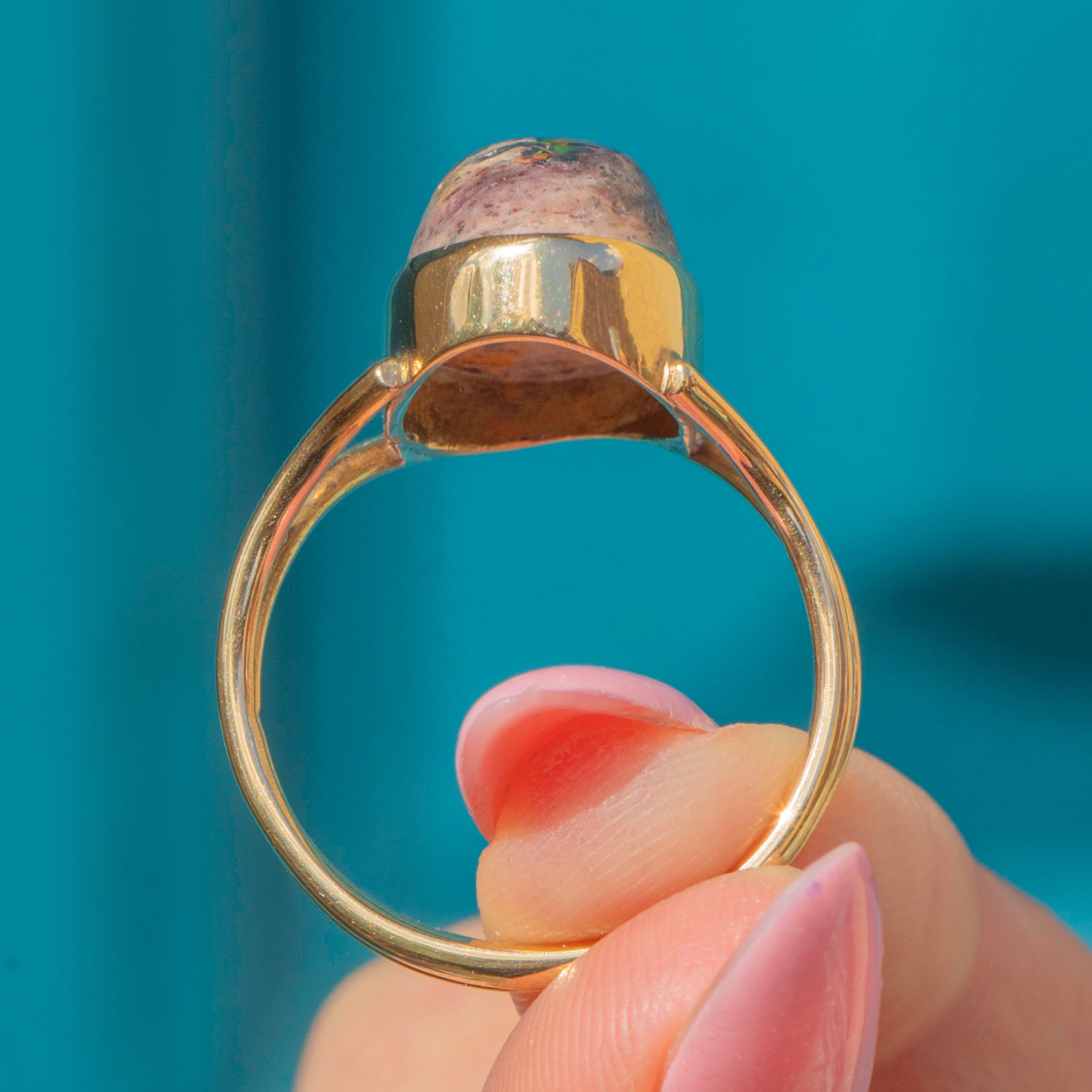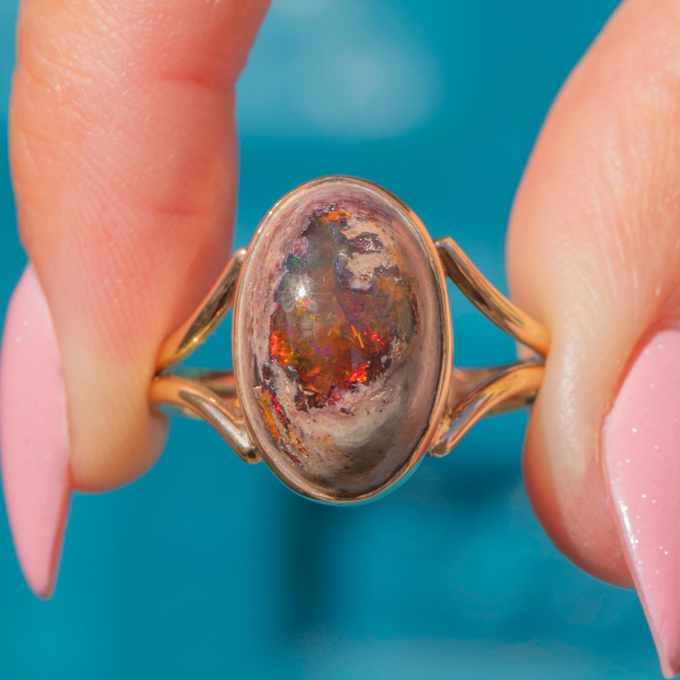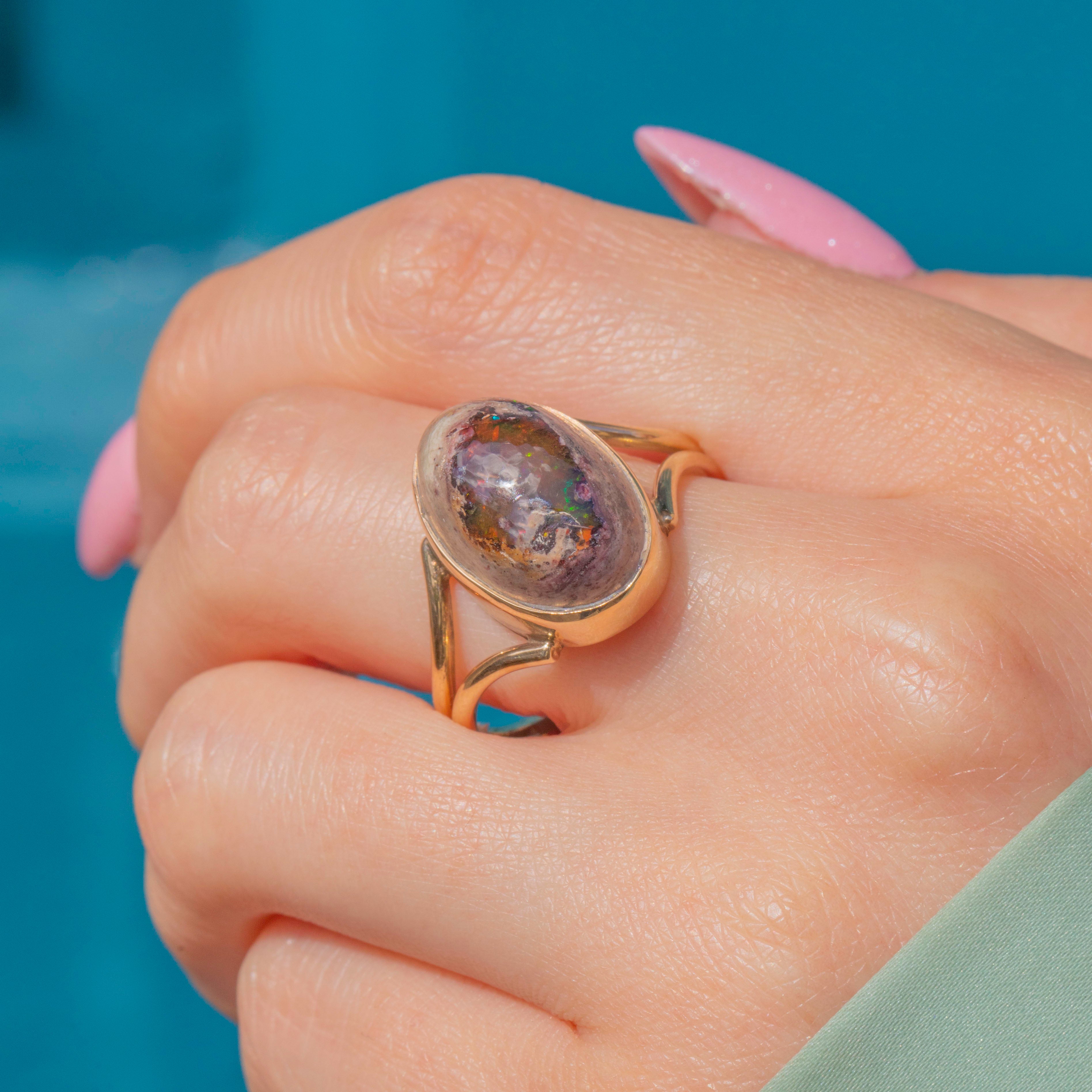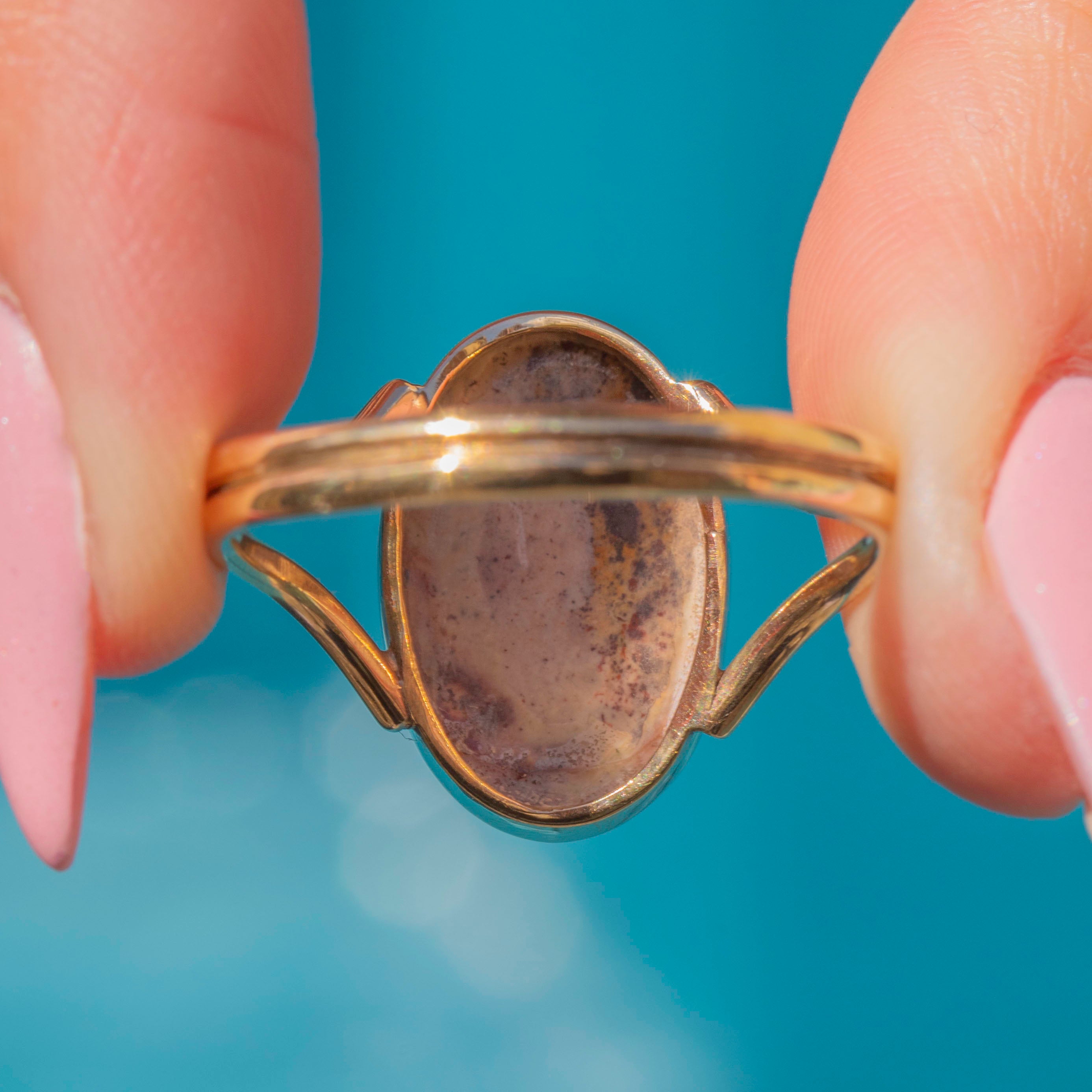 This 9ct Gold Boulder Opal cabochon ring is absolutely divine! Homing an exceptional Boulder Opalm mined in the depths of Australia, this vintage ring is a unique treasure.