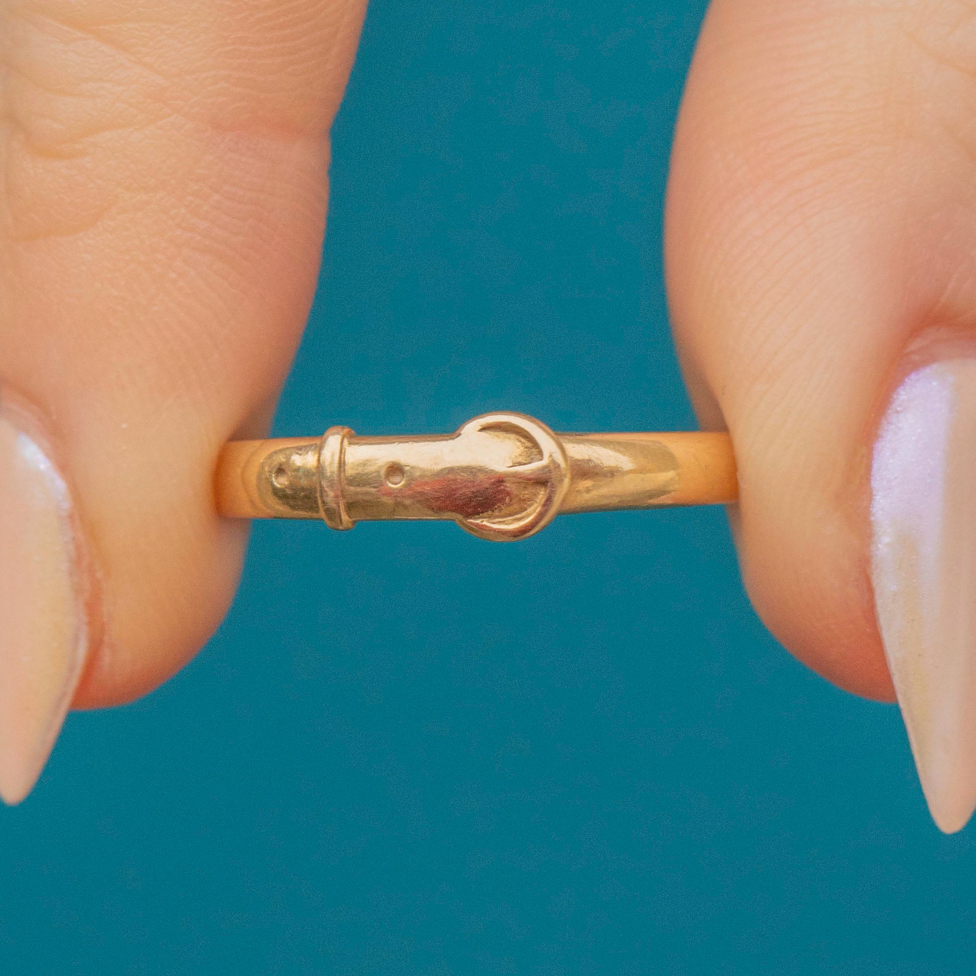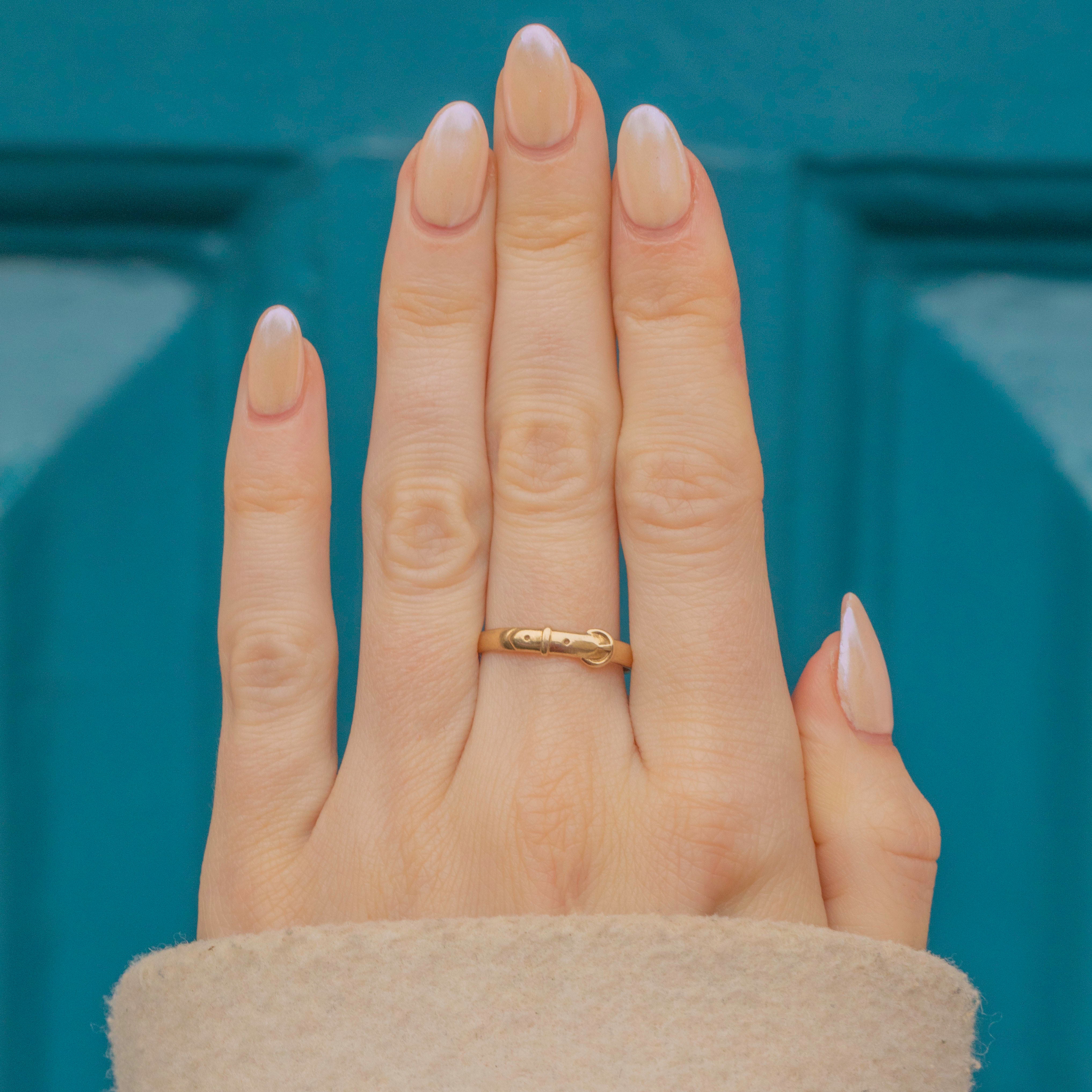 The slender width and low profile of this vintage buckle ring make it perfect for everyday wear; combined with its romantic symbolism, she would be a fantastic choice for a unique wedding band!
