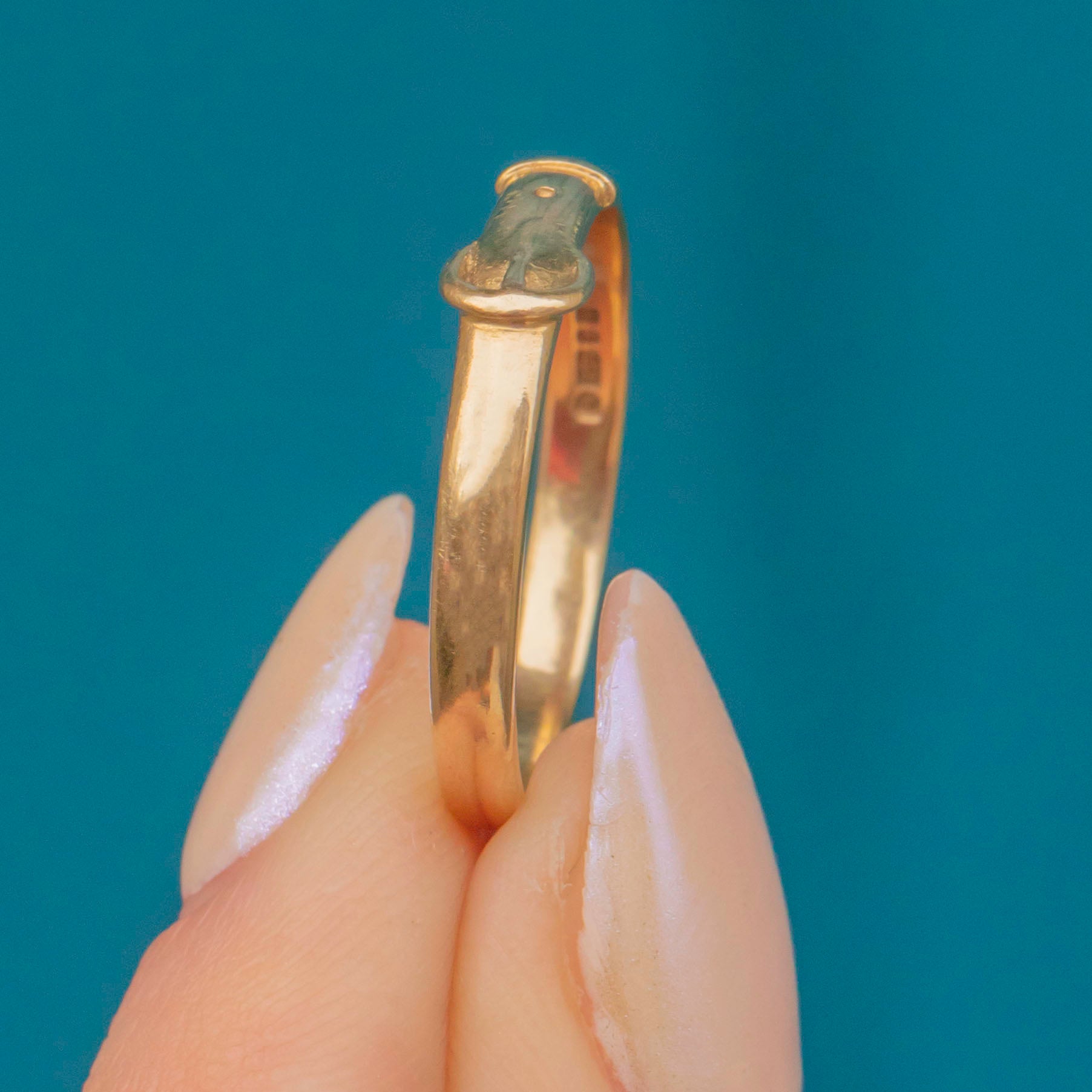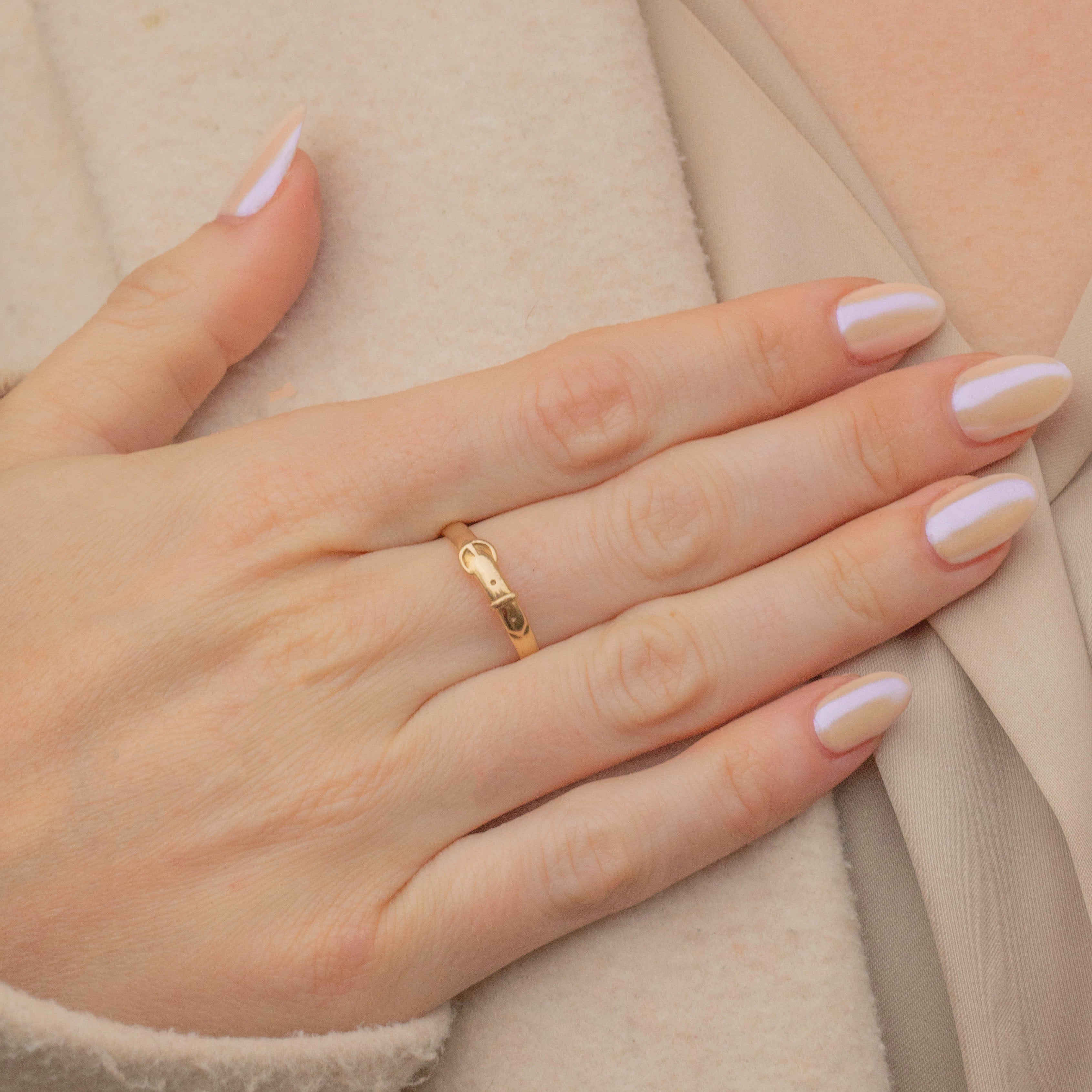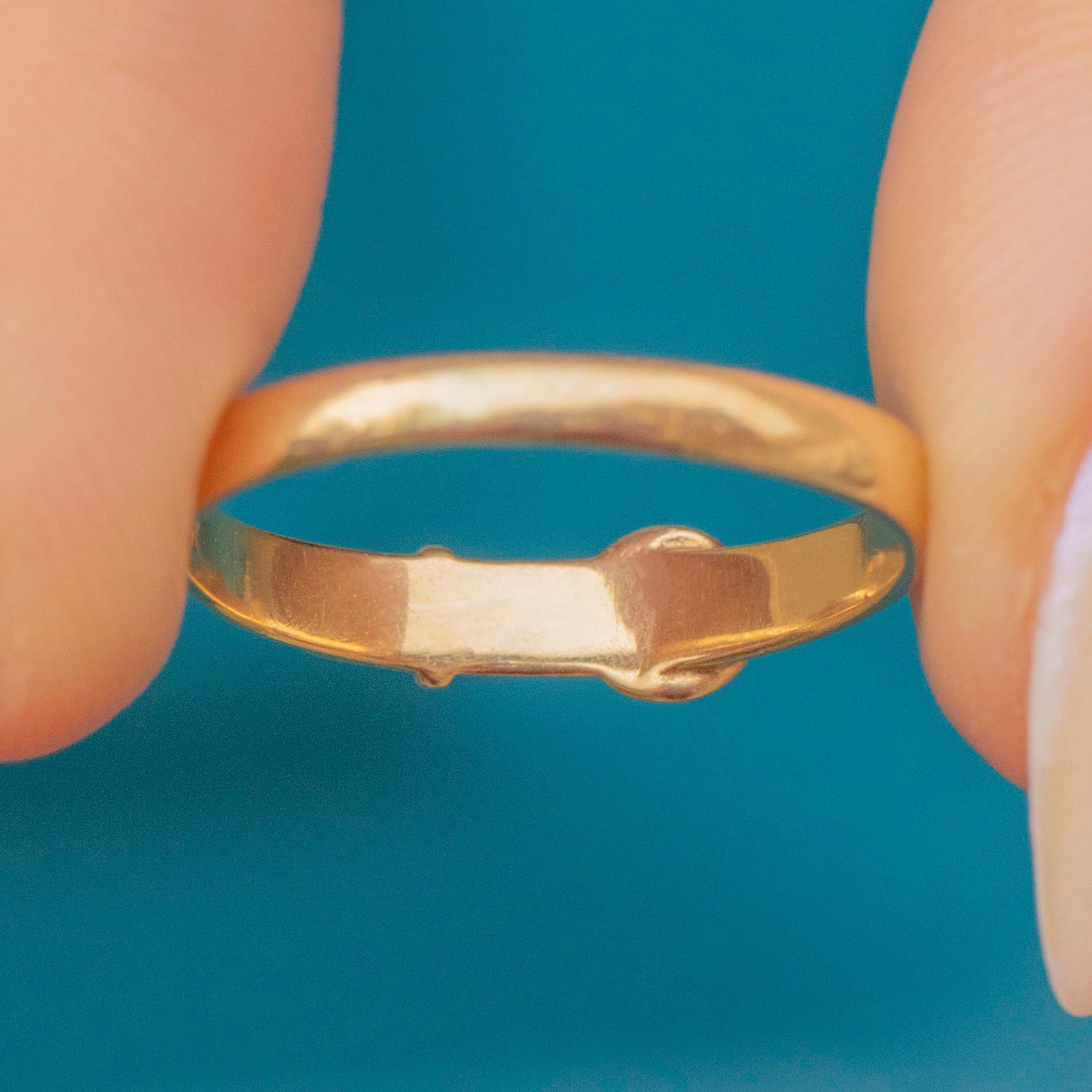 EXCELLENT. This 9ct Gold buckle ring is in excellent condition. The Gold has a lovely buttery hue and the band is smooth, with no surface wear to note. The inside of the band has a full set of English hallmarks dating to 1990, making this a true vintage treasure for your collection!