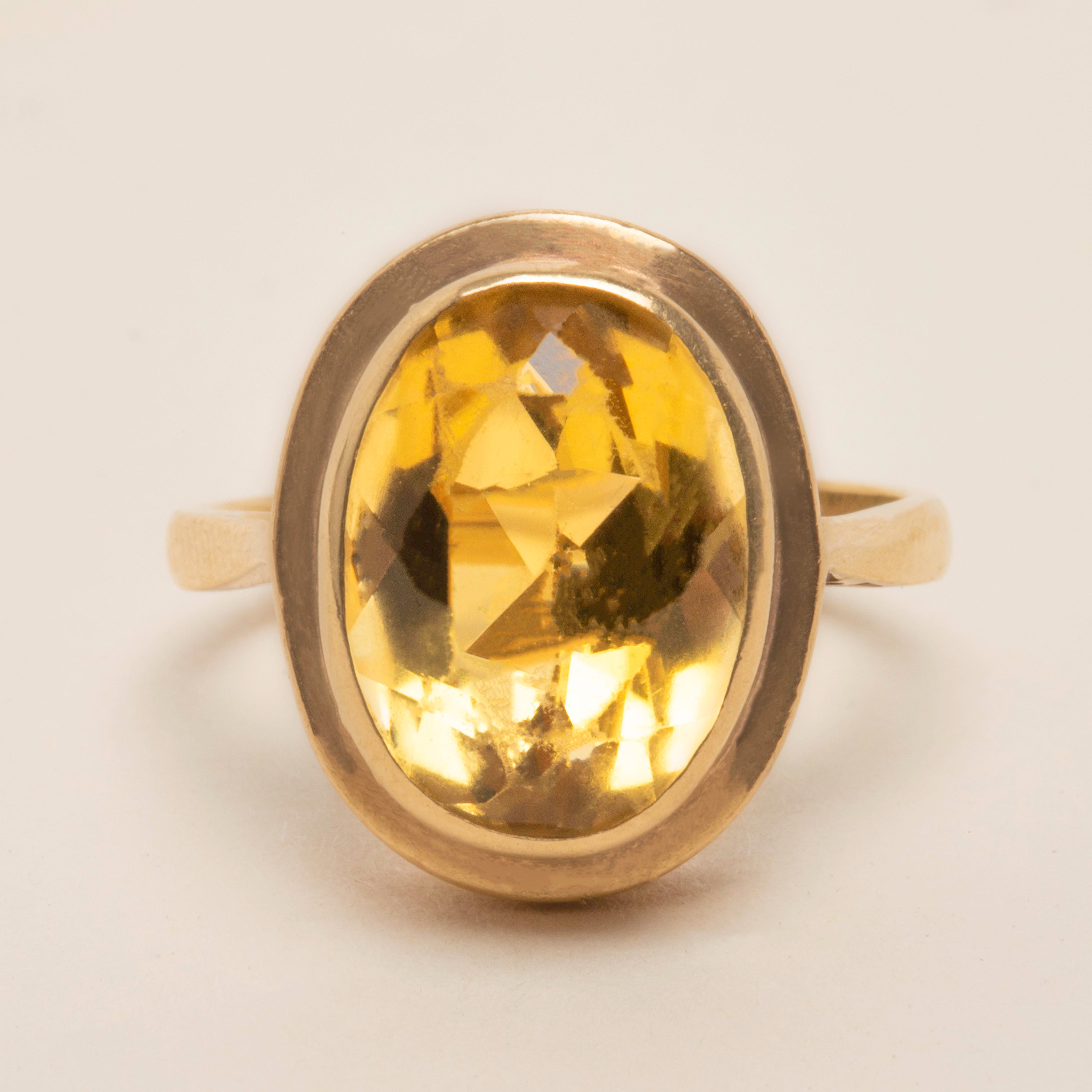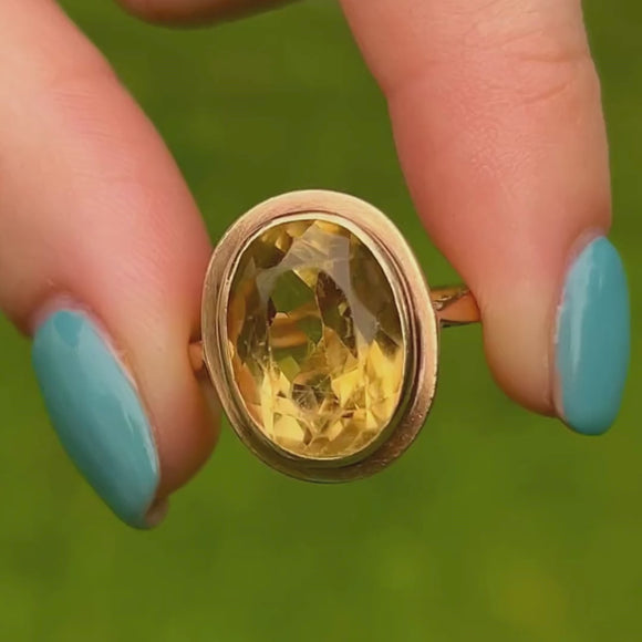 VERY GOOD This 9ct Gold Citrine Cocktail Ring is in a very good condition. Her sumptuous Citrine is beautifully faceted and sits securely in her setting, with only a small very slight scuff that is barely visible to the naked eye. Her 9ct Gold band has clear hallmarks and minimal signs of wear, meaning she can be worn and adored for many years to come!