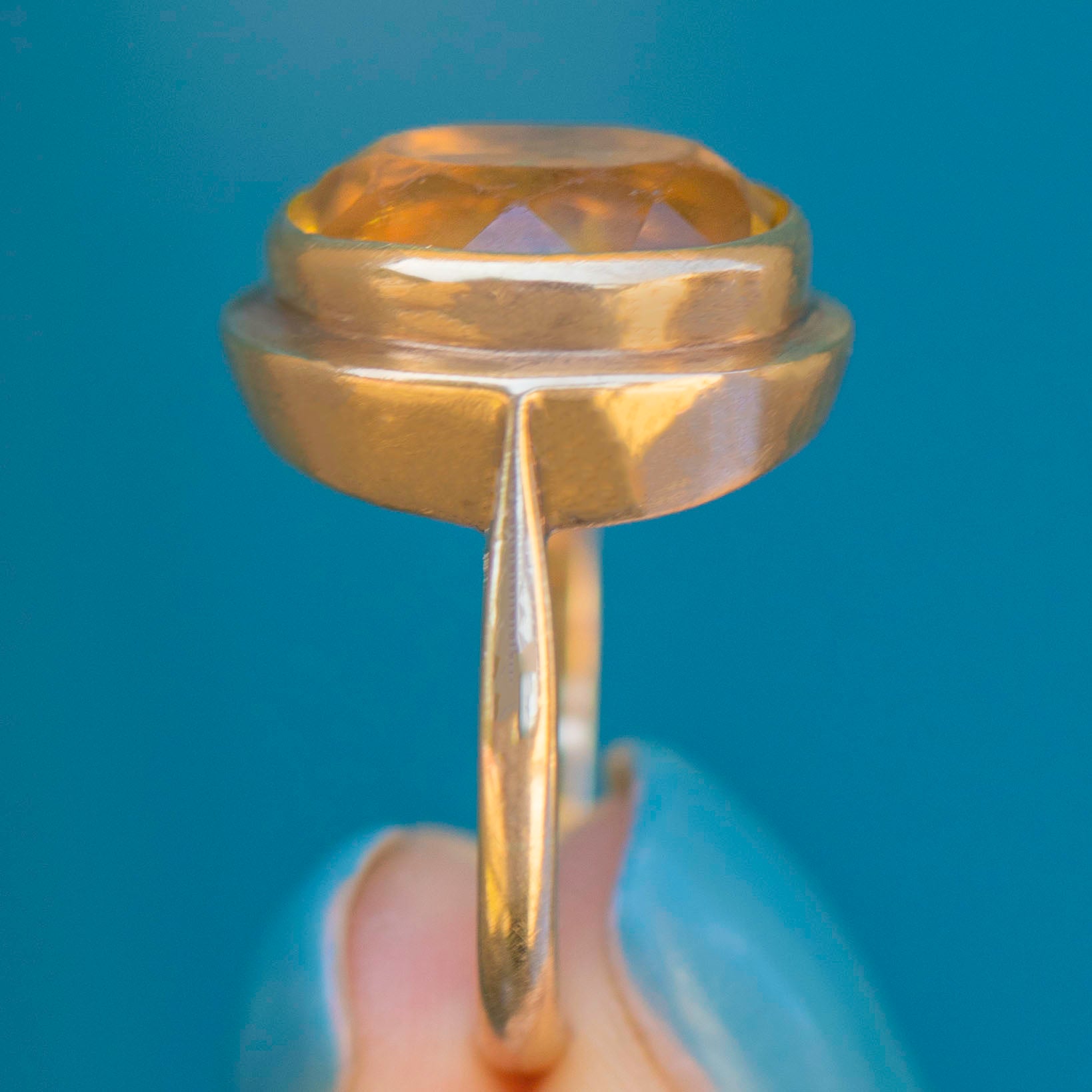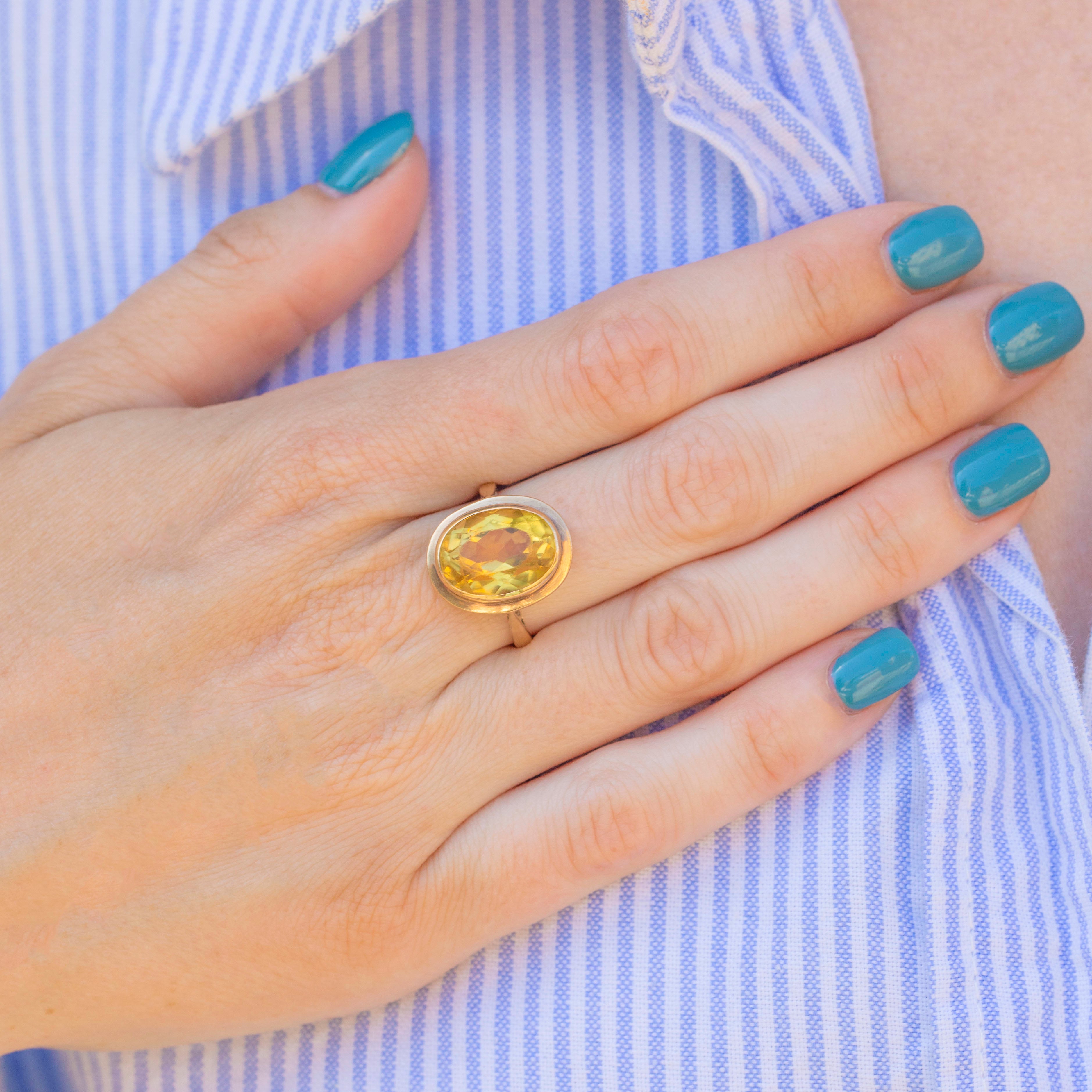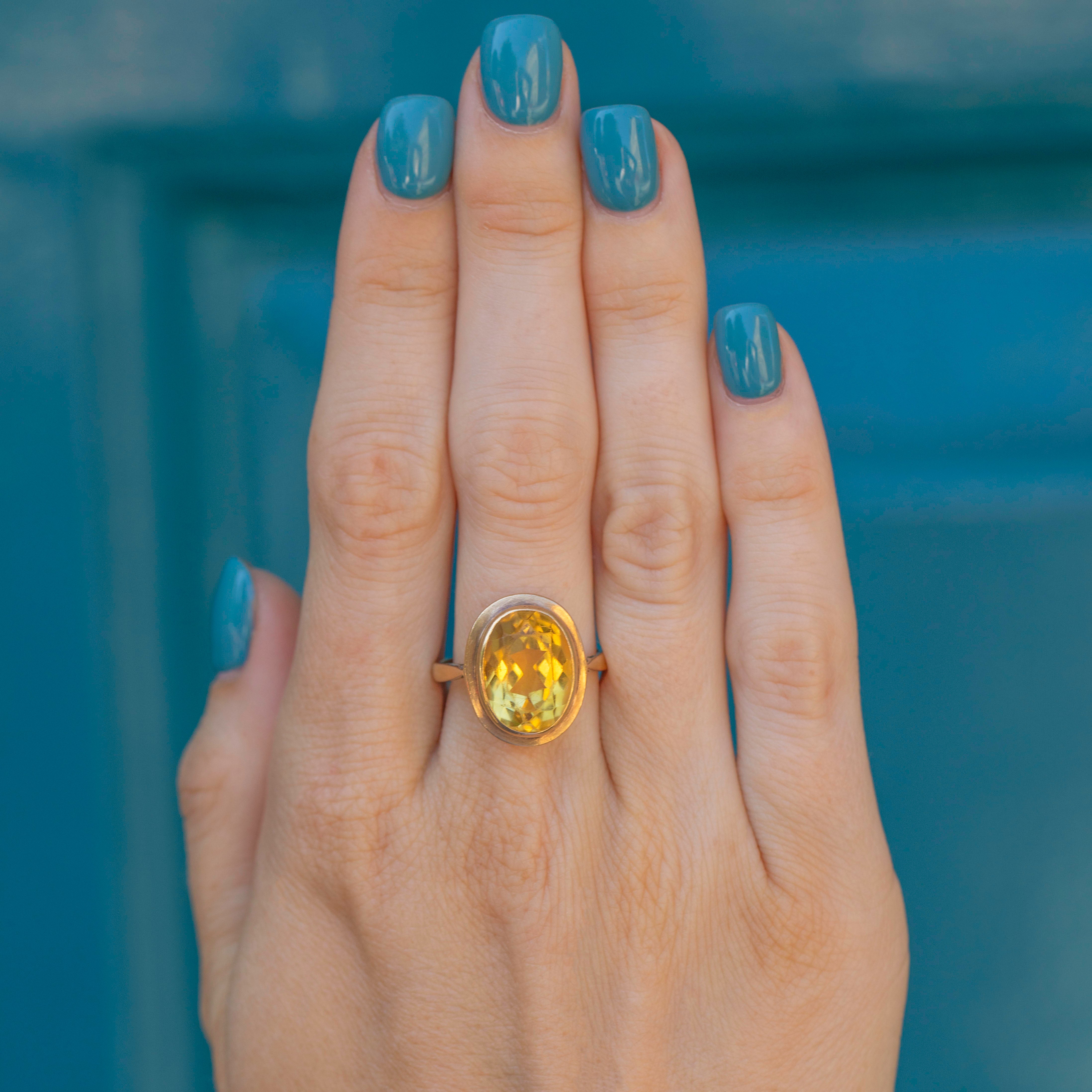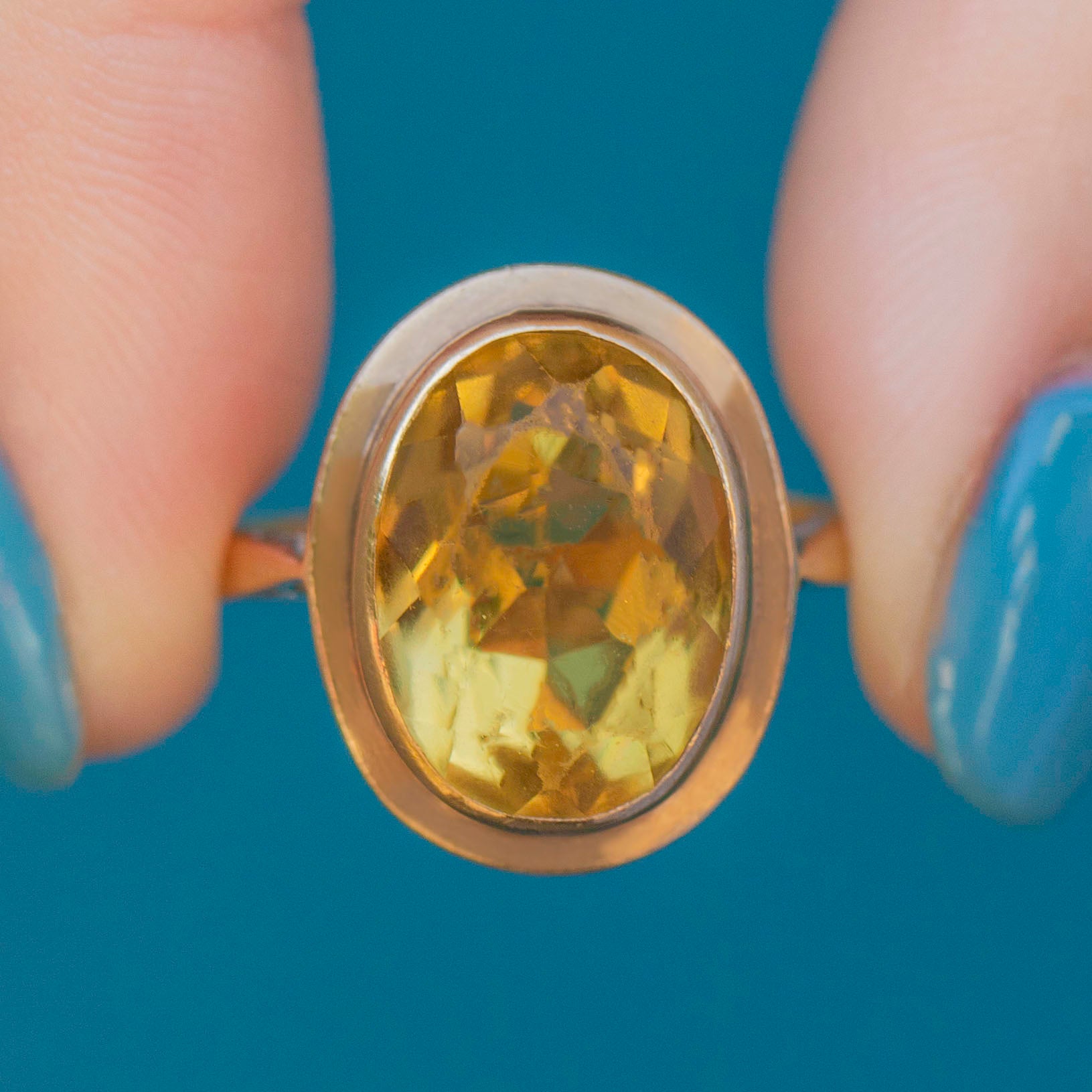 A sensational pairing, her 5.89ct syrupy Citrine is displayed in a honey-hued 9ct Gold bezel. This vintage cocktail ring is hallmarked to the year 1992, she's a piece you won't be able to keep your eyes off!