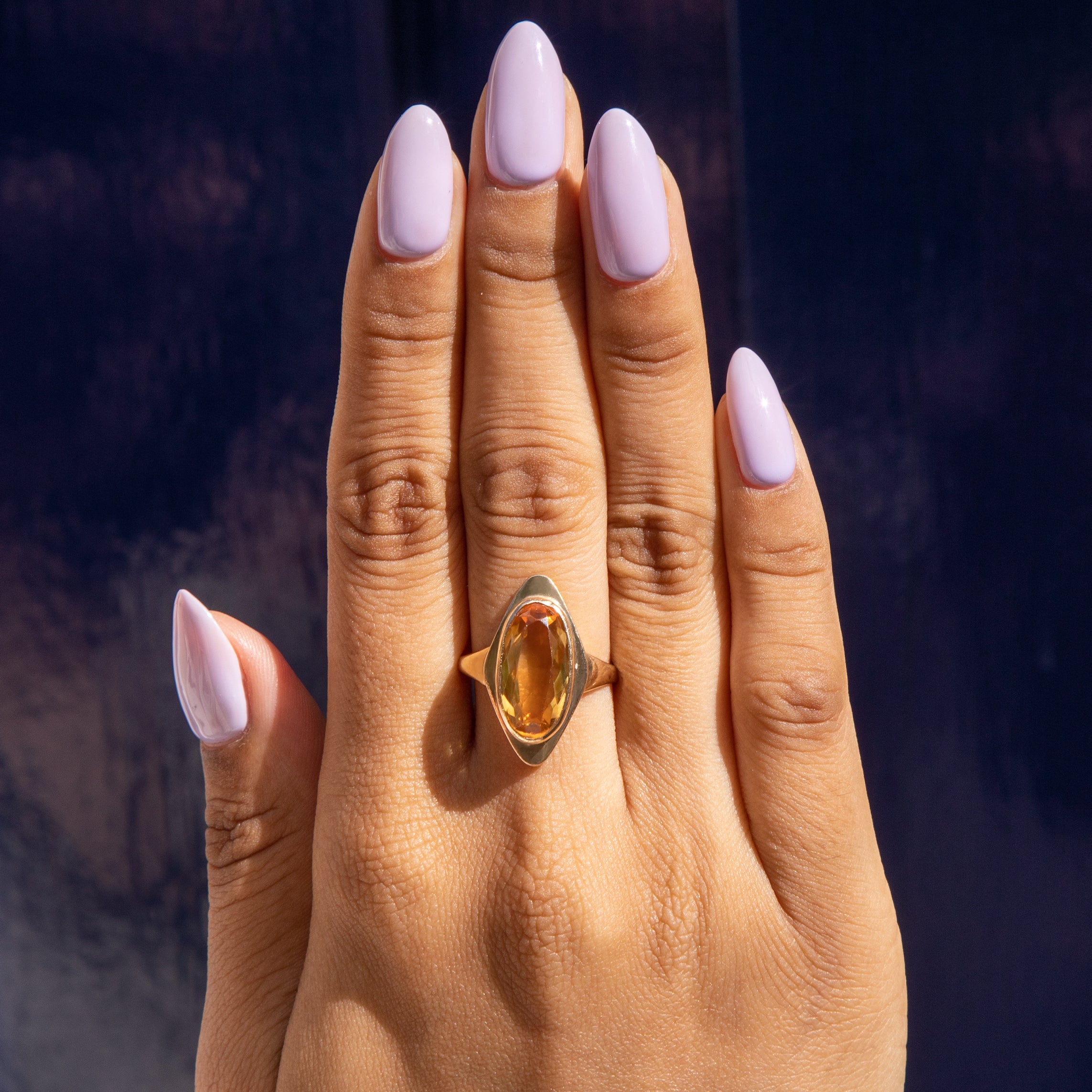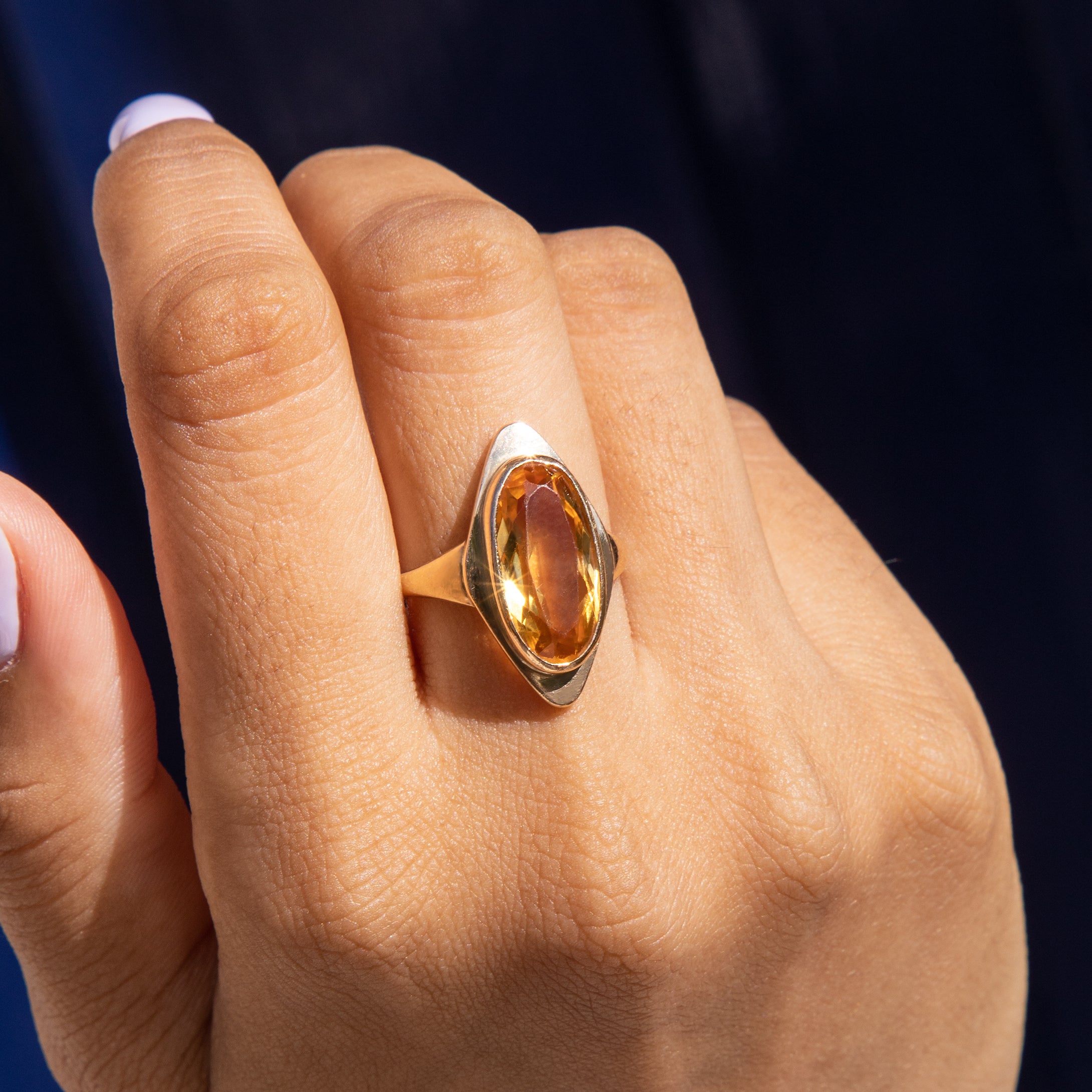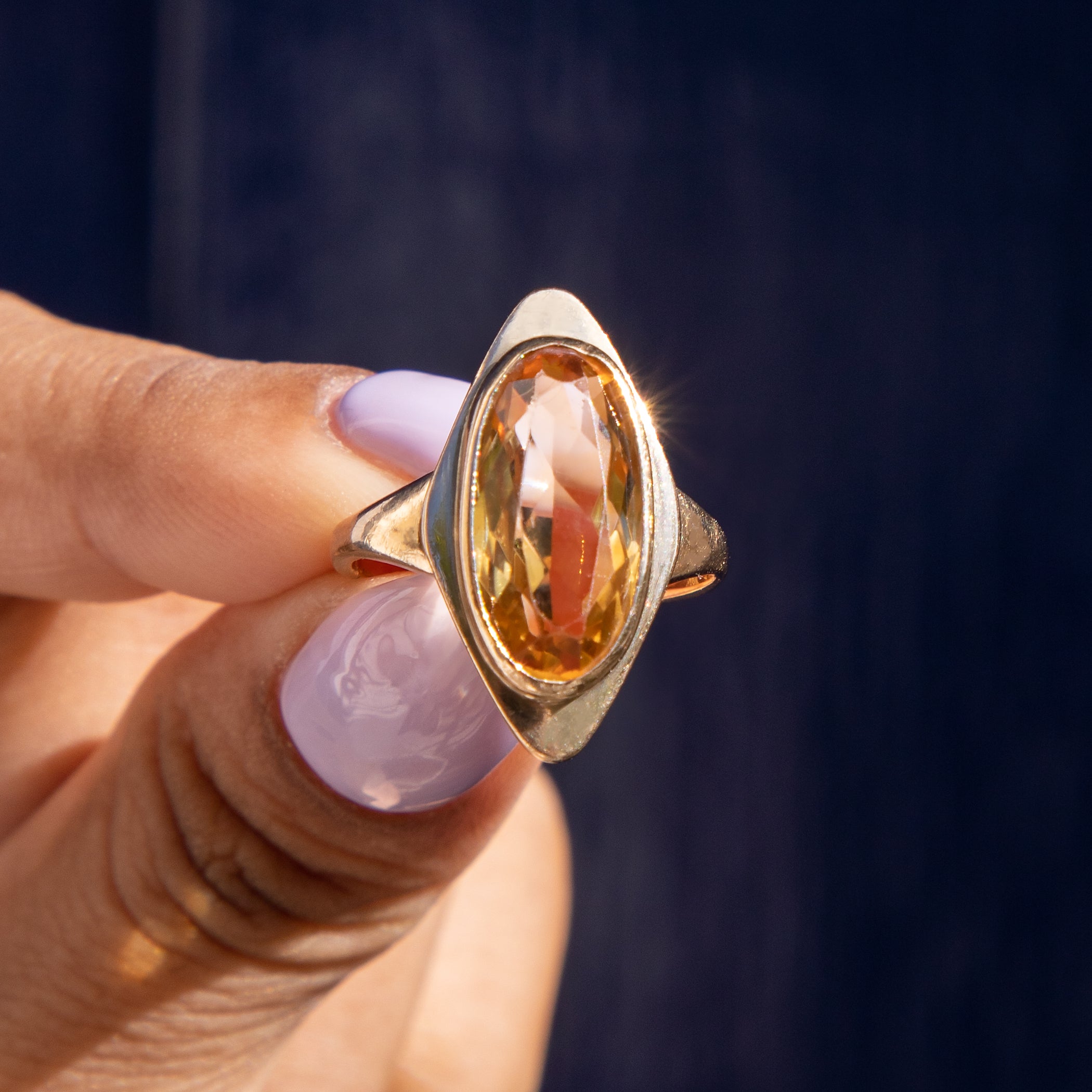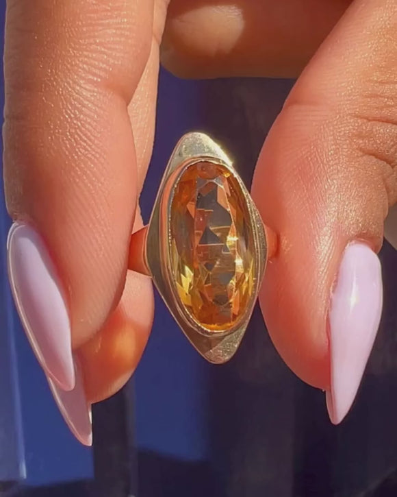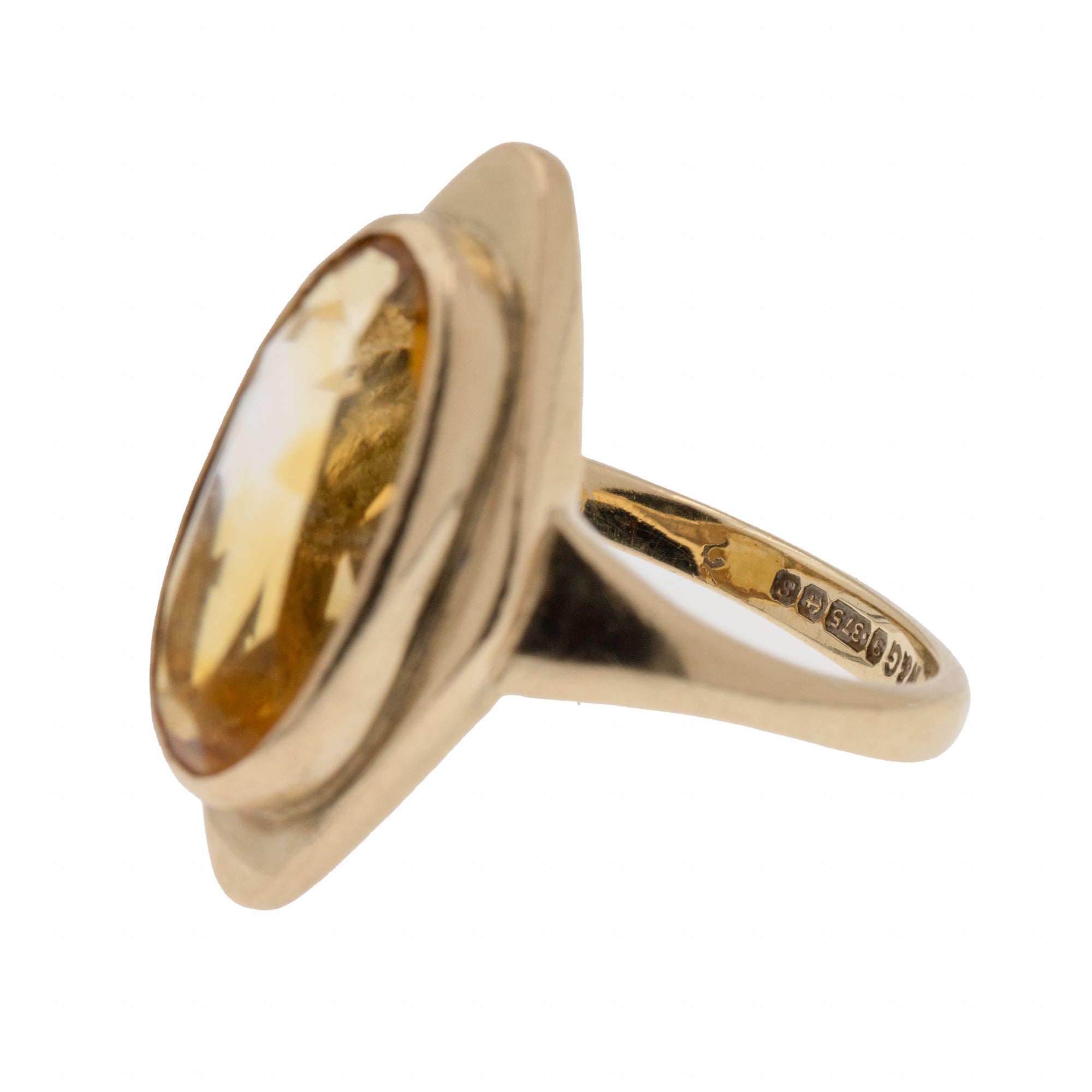 9ct ゴールド シトリン ロゼンジ リング、3.40ct.