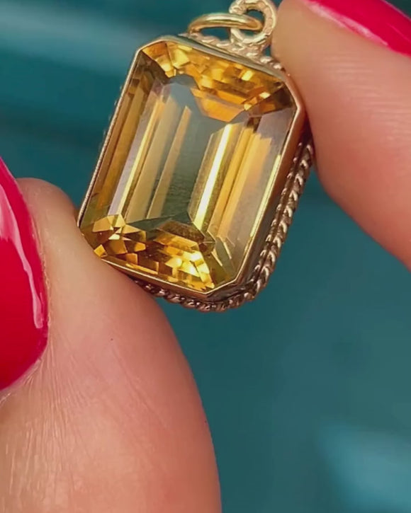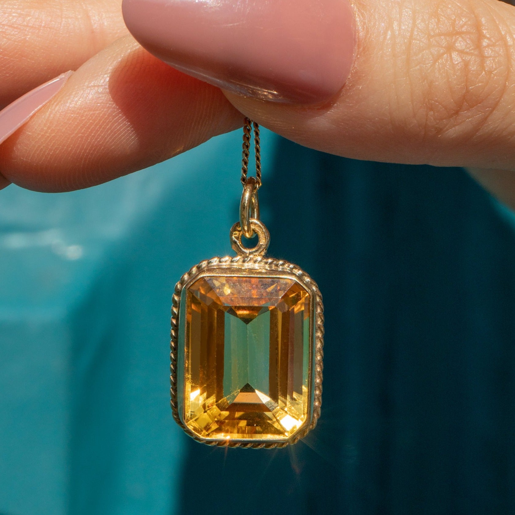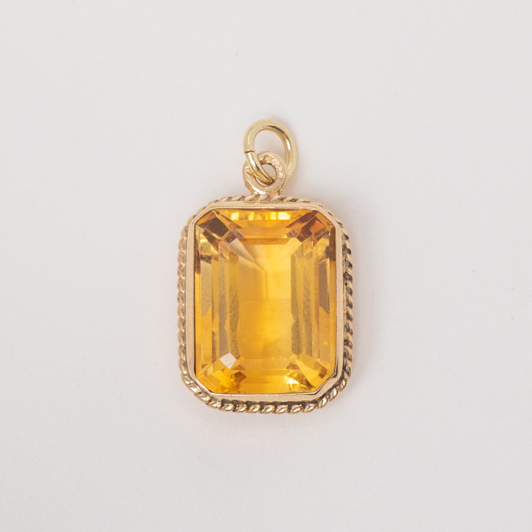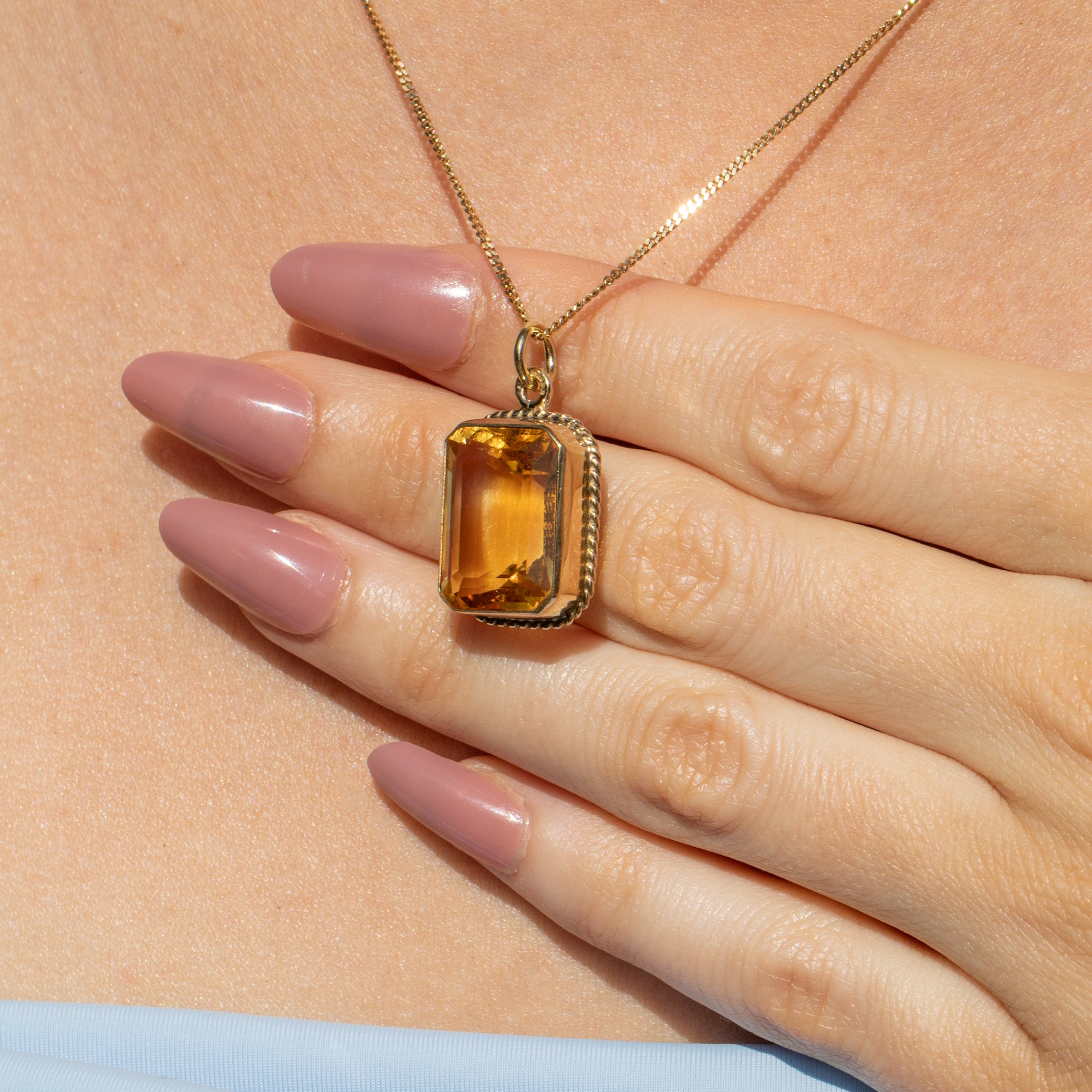 9ct Gold Citrine Pendant, 12.00ct Rectangular Citrine