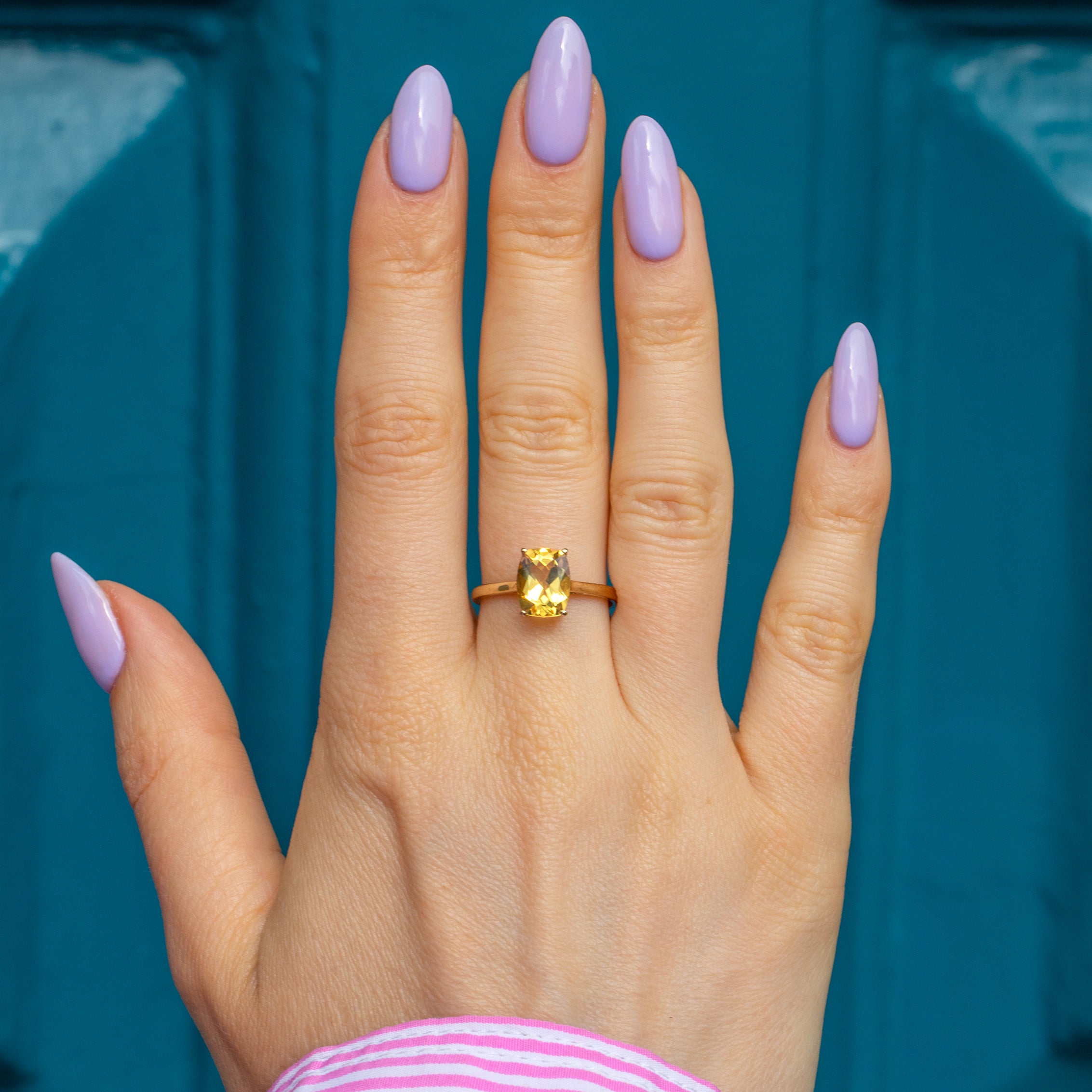 The perfect size for daily wear, this Citrine ring sits delicately on your finger and sparkles a lovely lemony hue when the light hits her.