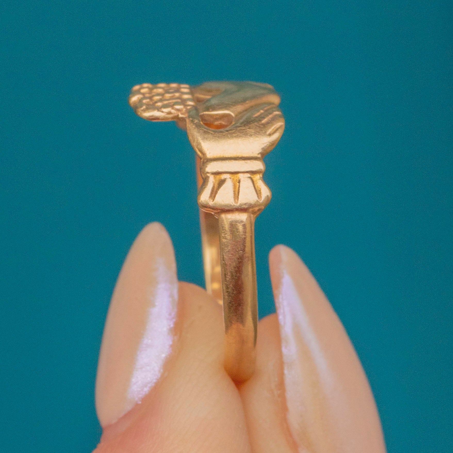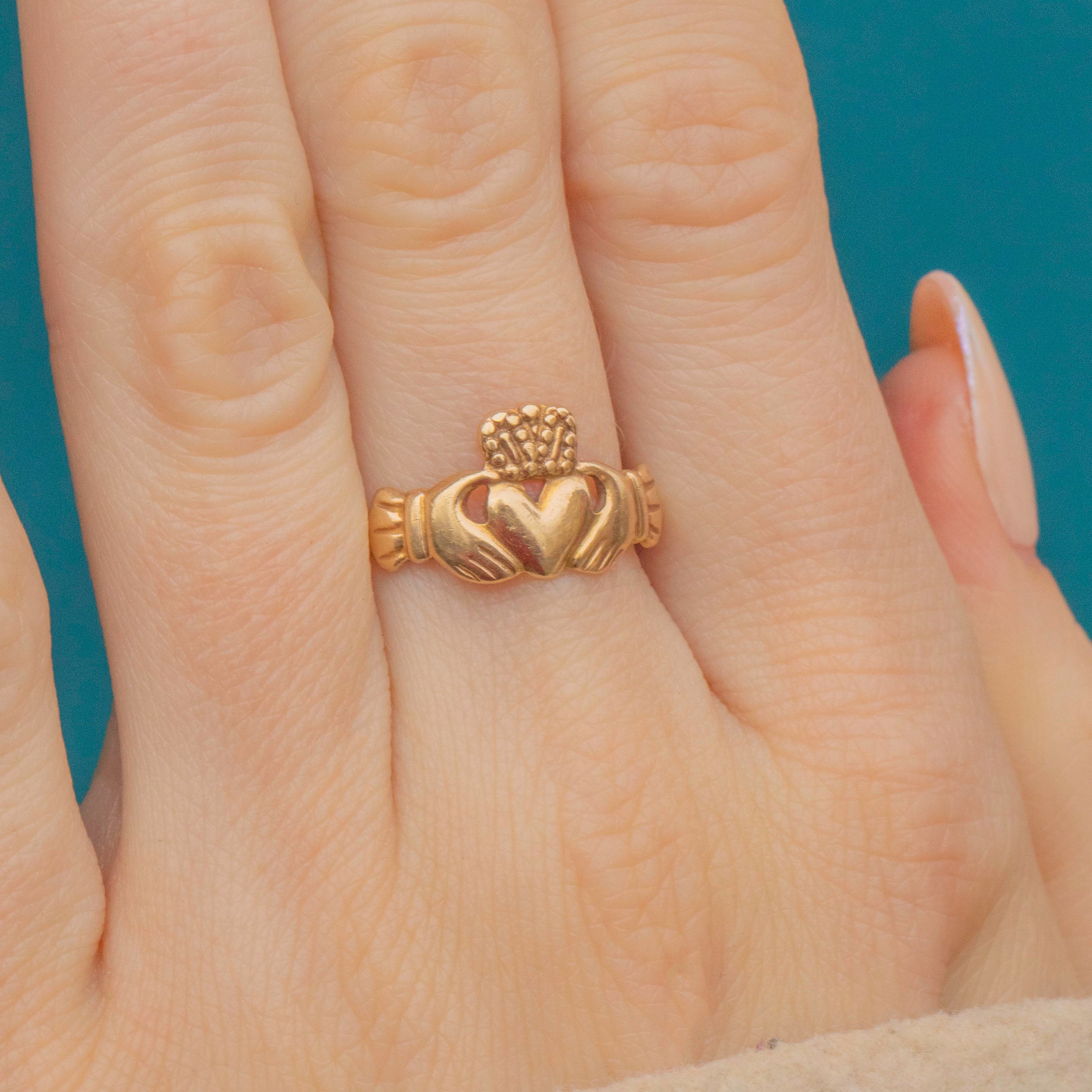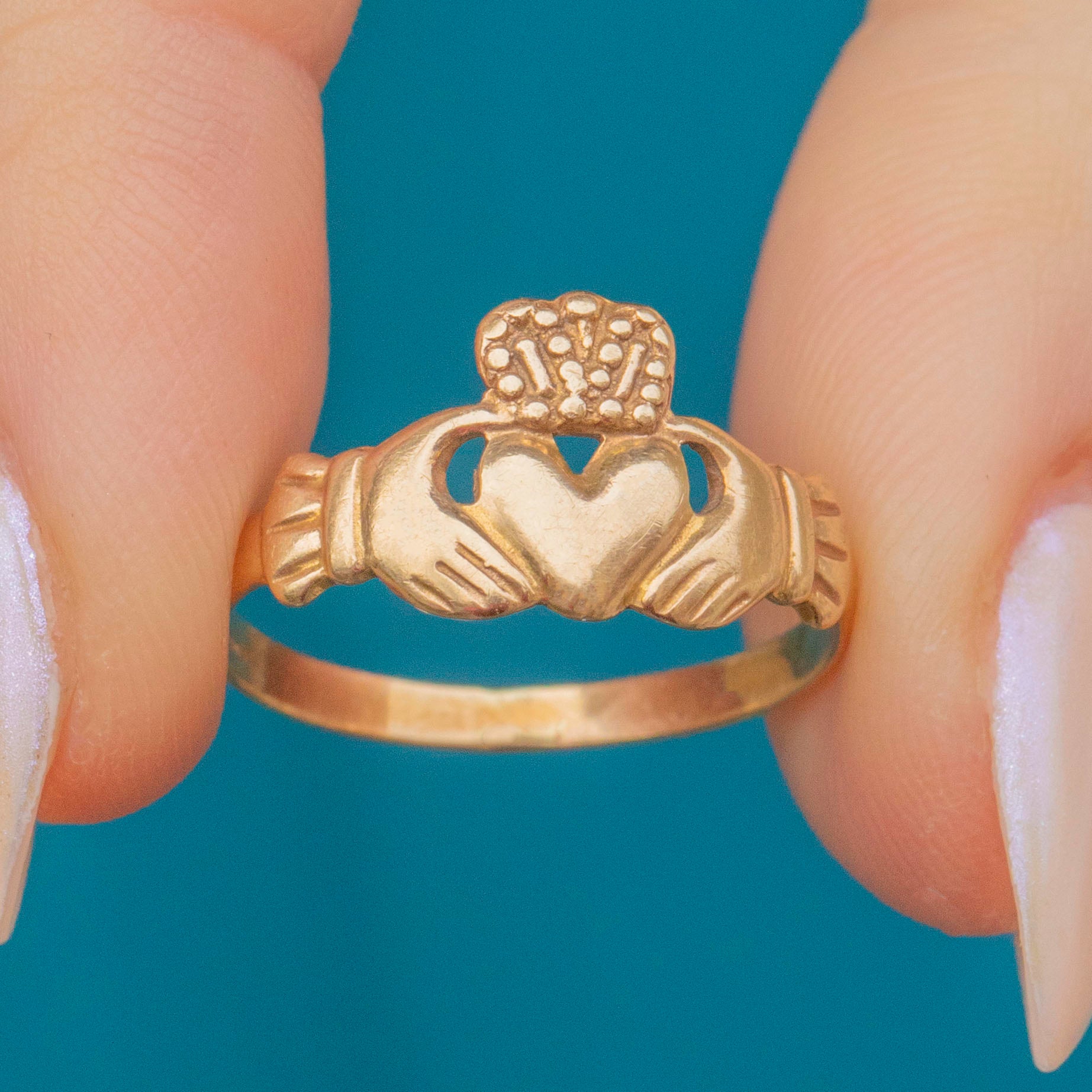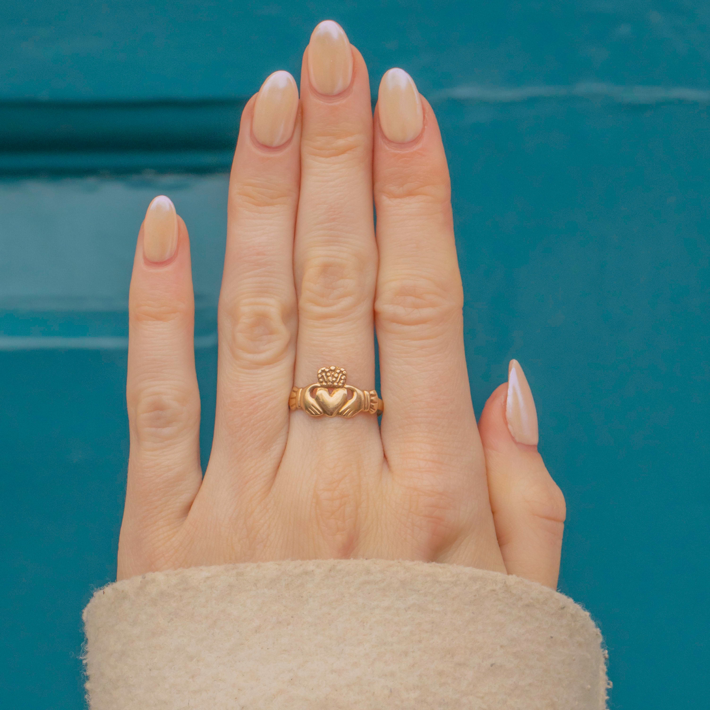 Crafted from solid 9ct Gold and displaying lovely details, this vintage Claddagh ring has a low profile making it perfect for everyday wear!