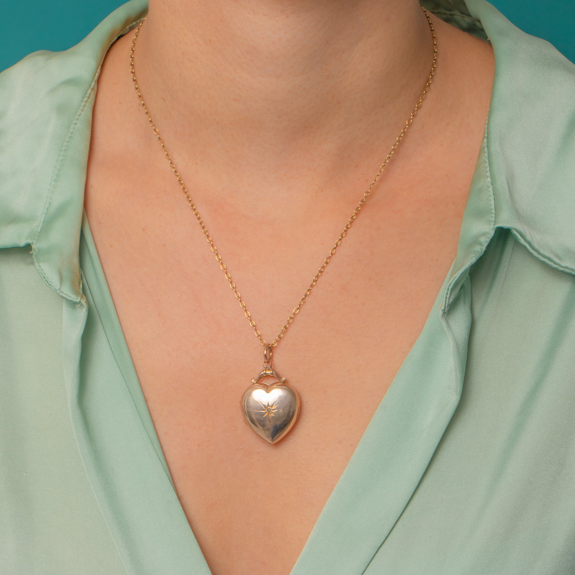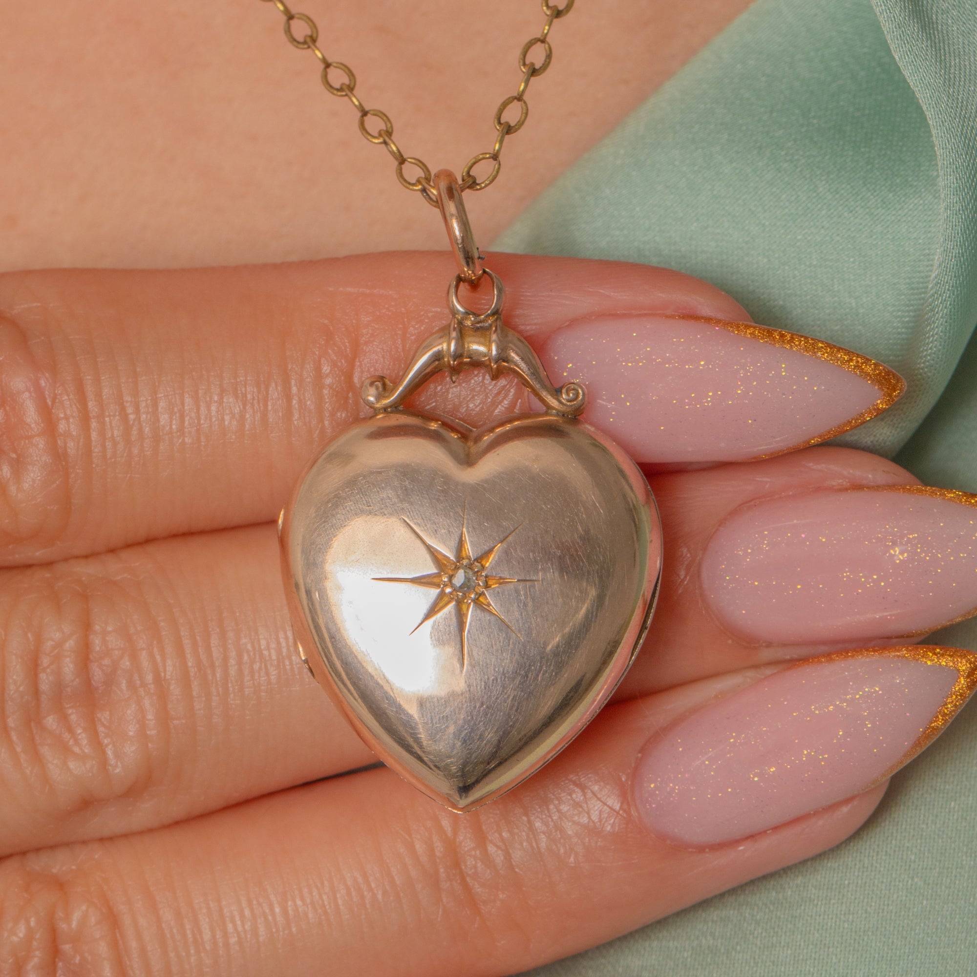 9ctゴールド ダイヤモンド スター パフィーハート ロケット