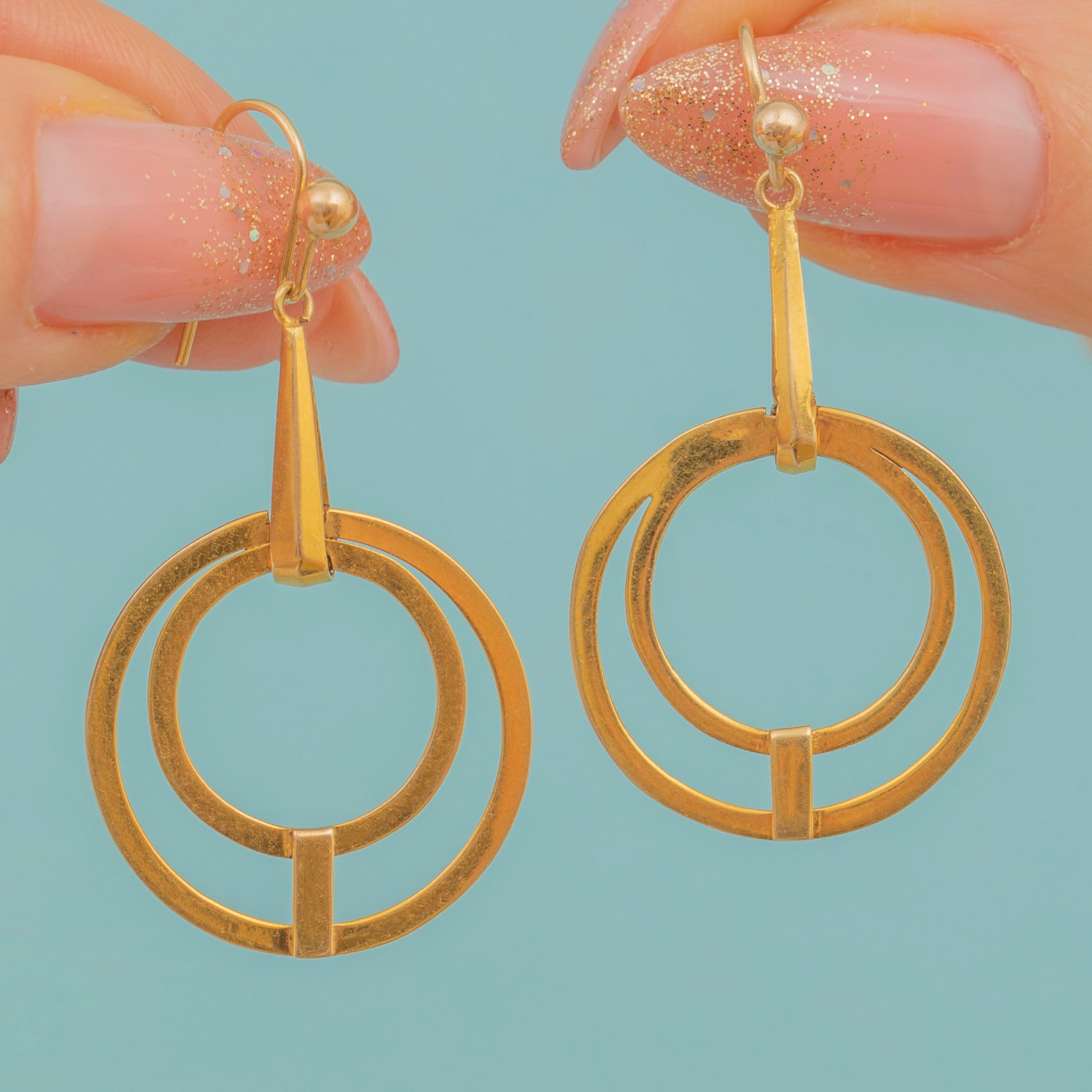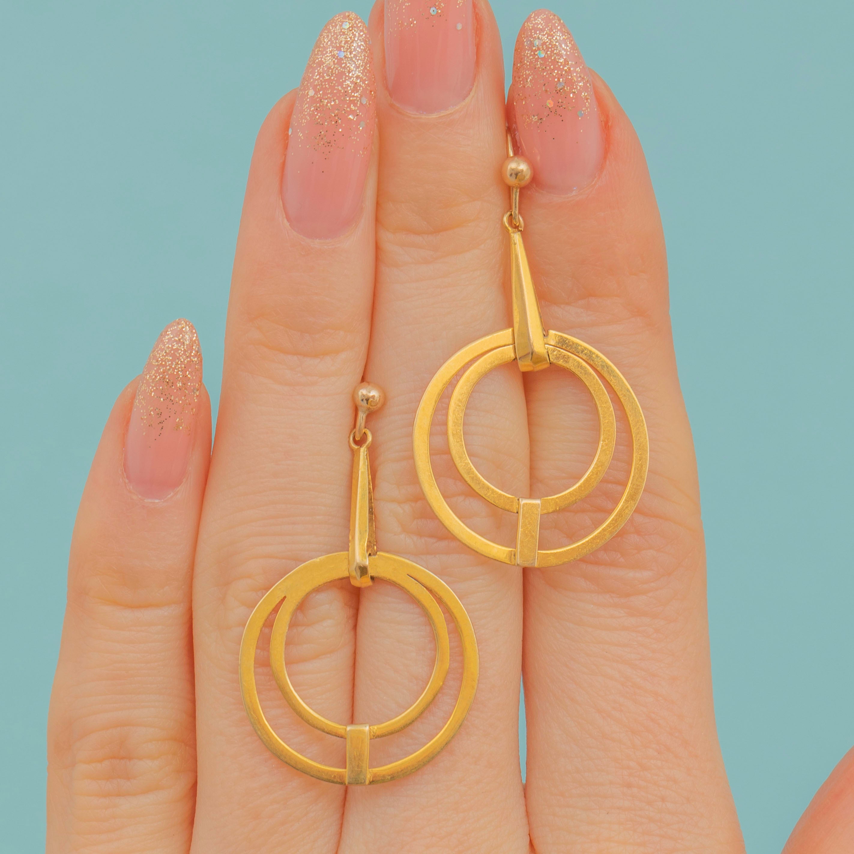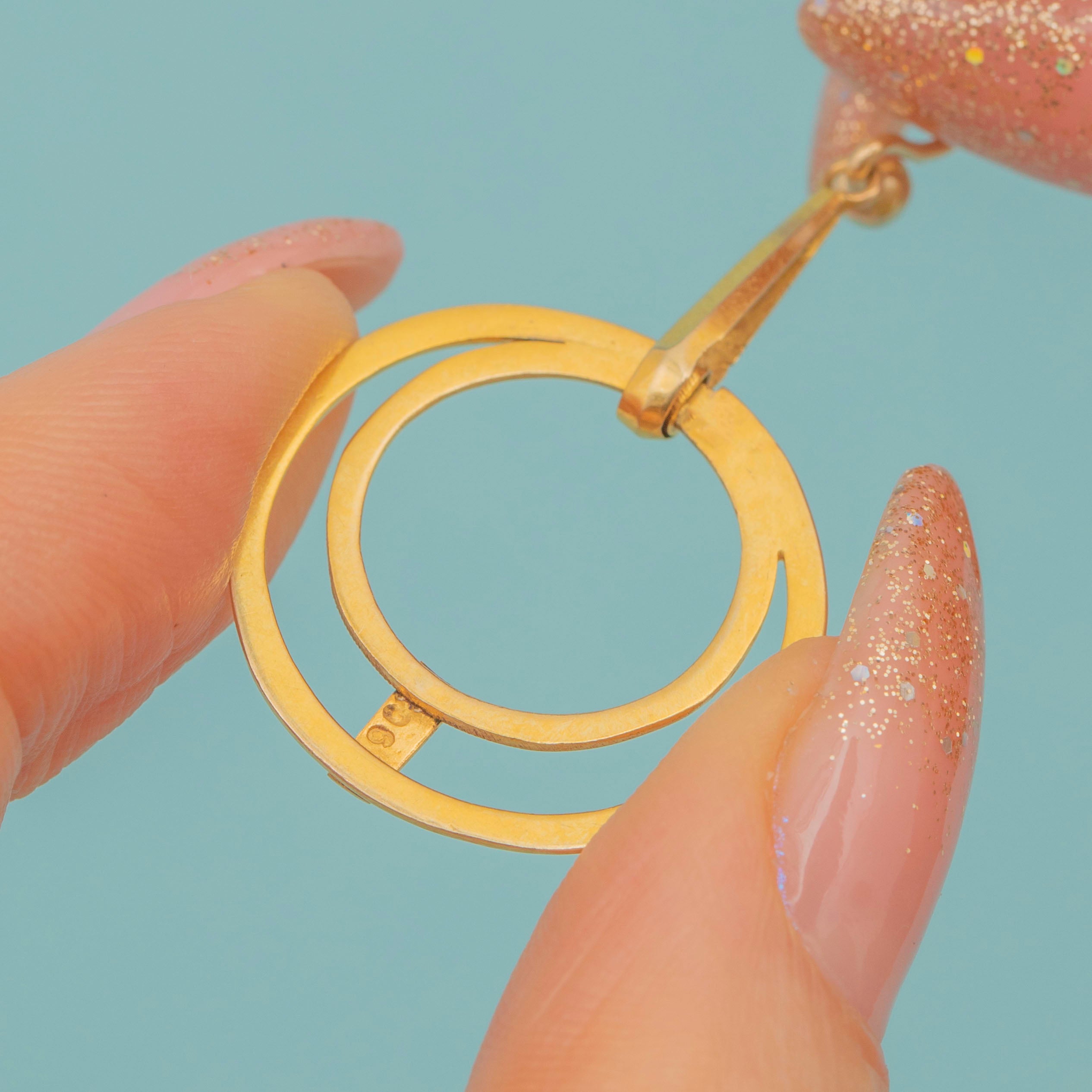 EXCELLENT. This pair of 9ct Gold double hoop drop earrings are in excellent condition. The earrings are complete with hooks for comfortable wear. With very minimal sign of wear, these earrings can be worn everyday with confidence.