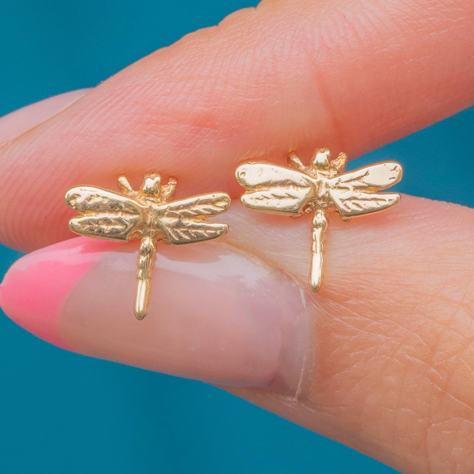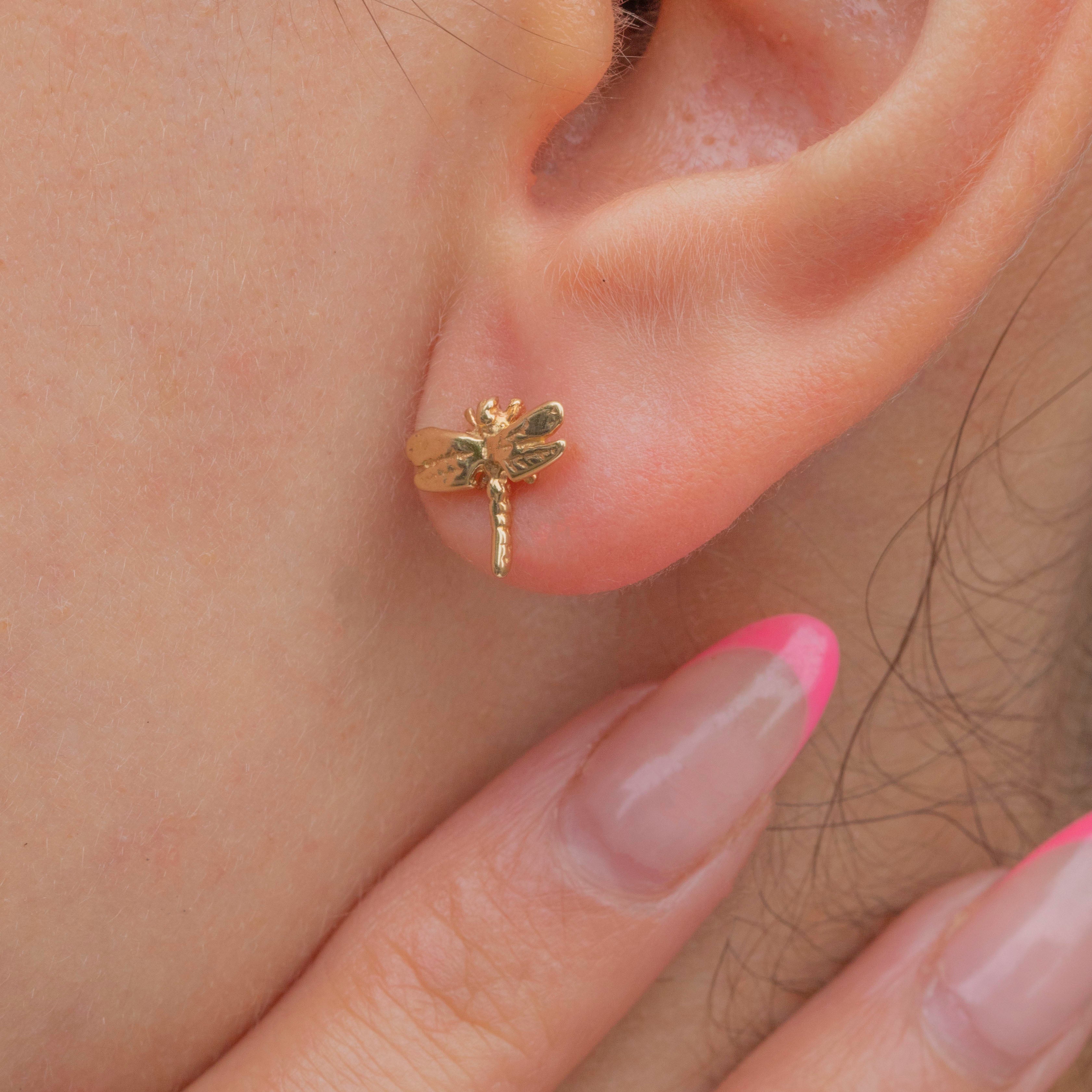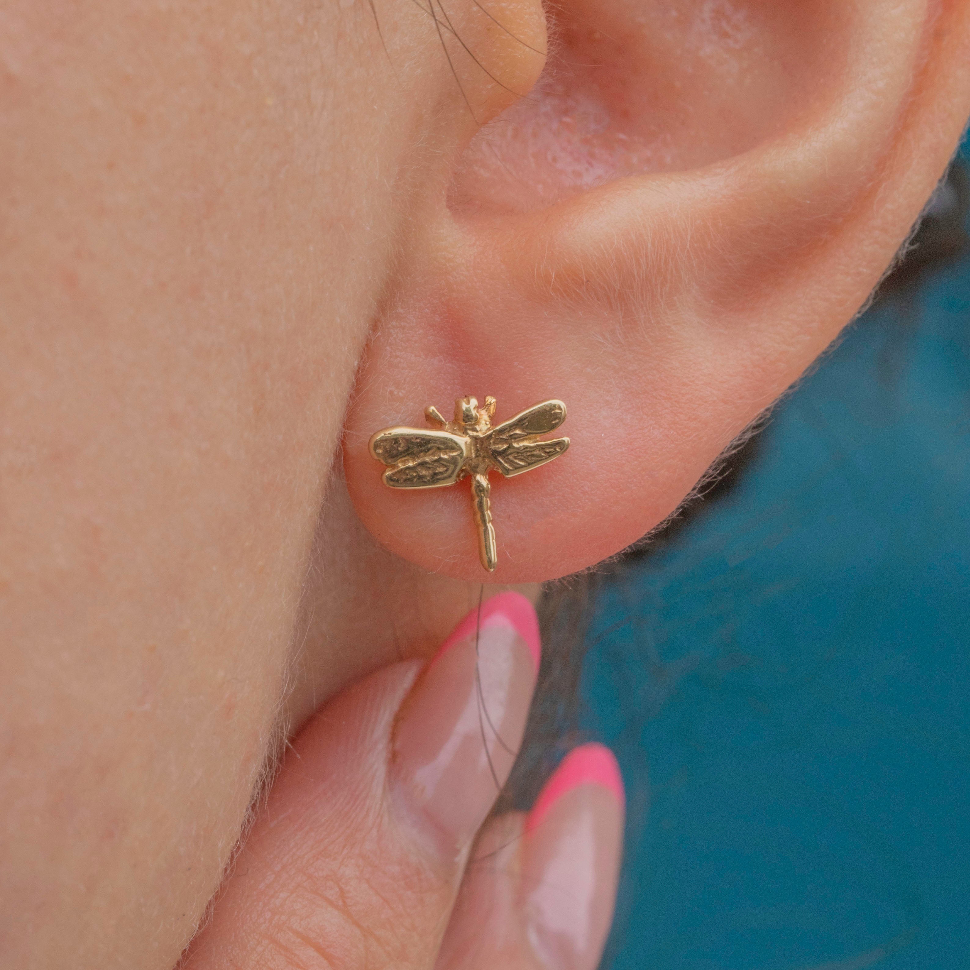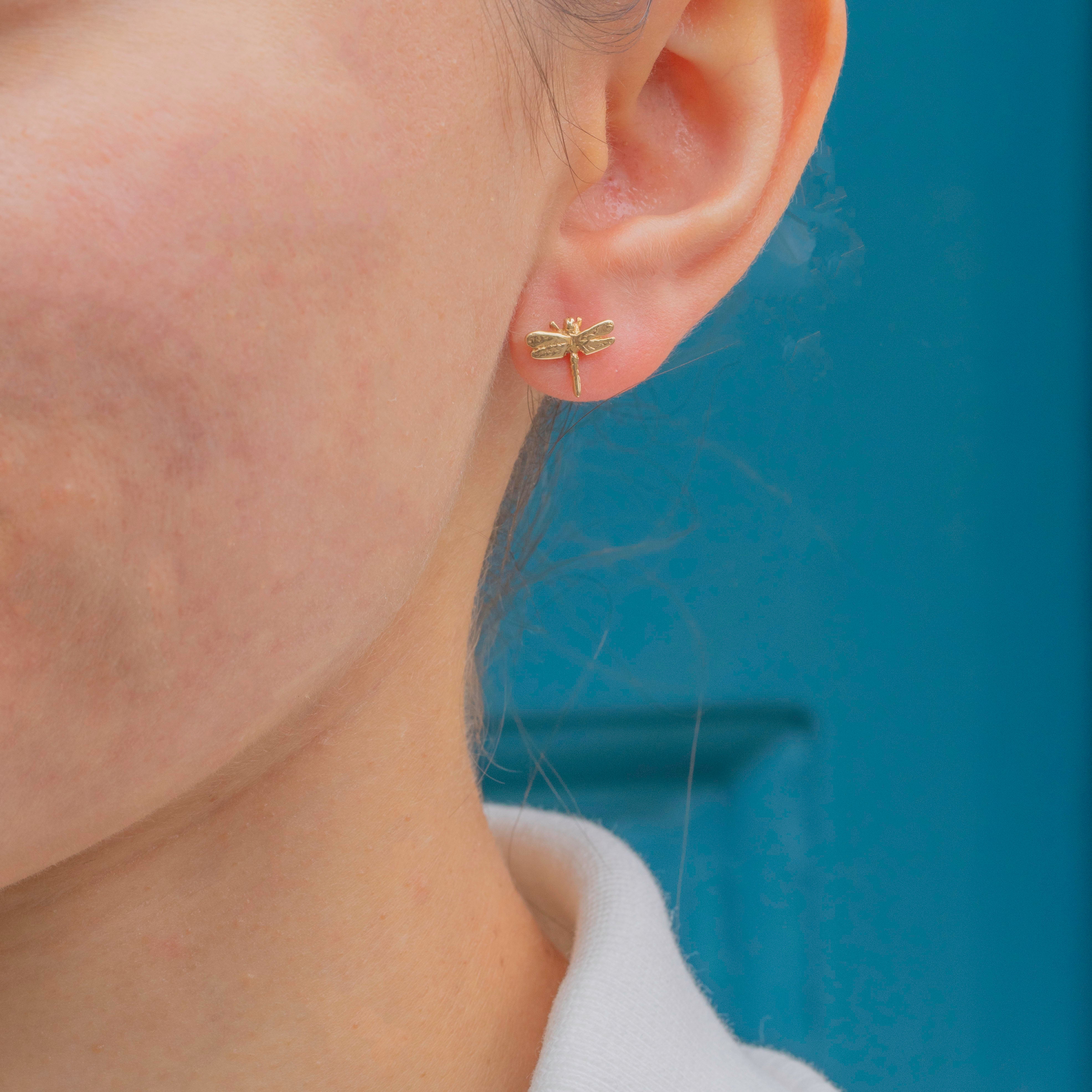 Charming and rare, these 9ct Gold dragonfly earrings will make a sweet addition to your lobes! Crafted from rich 9ct Gold, each stud captures delicate detail in every wing and curve. With their captivating, saturated 9ct Gold, they are just delightful!