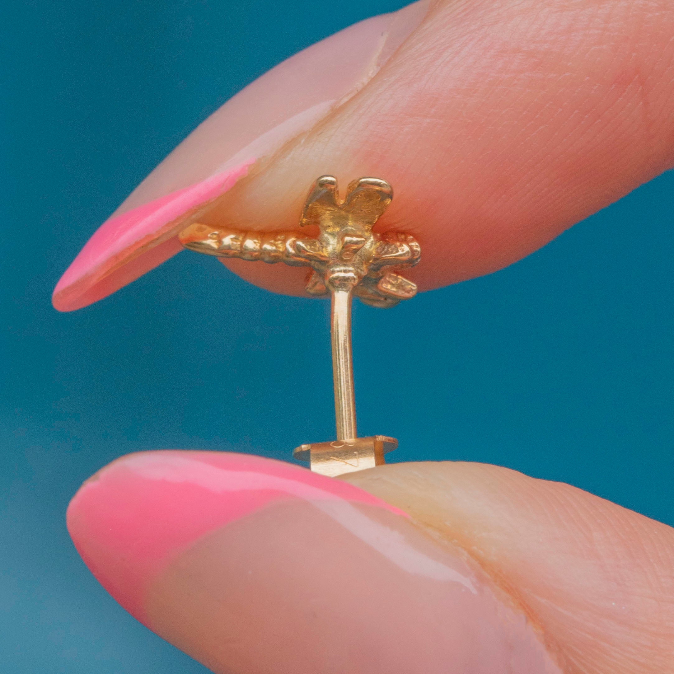 EXCELLENT: These 9ct Gold dragonfly earrings are in excellent vintage condition, with no visible dents, scratches, or signs of repair. The Gold retains a lovely, even tone with a soft, natural sheen, and the detailing remains crisp and well-defined. The butterfly backs are secure and function perfectly, allowing you to wear these solid Gold stud earrings confidently!