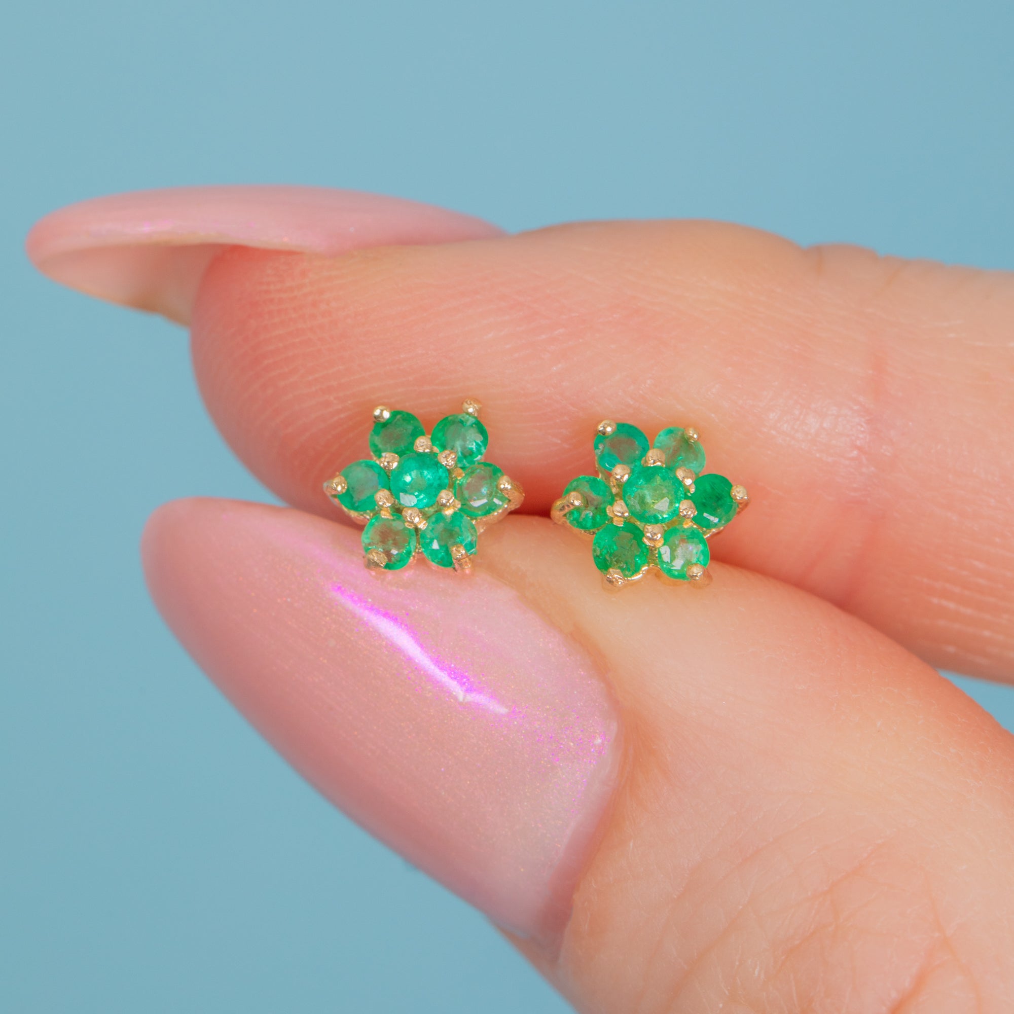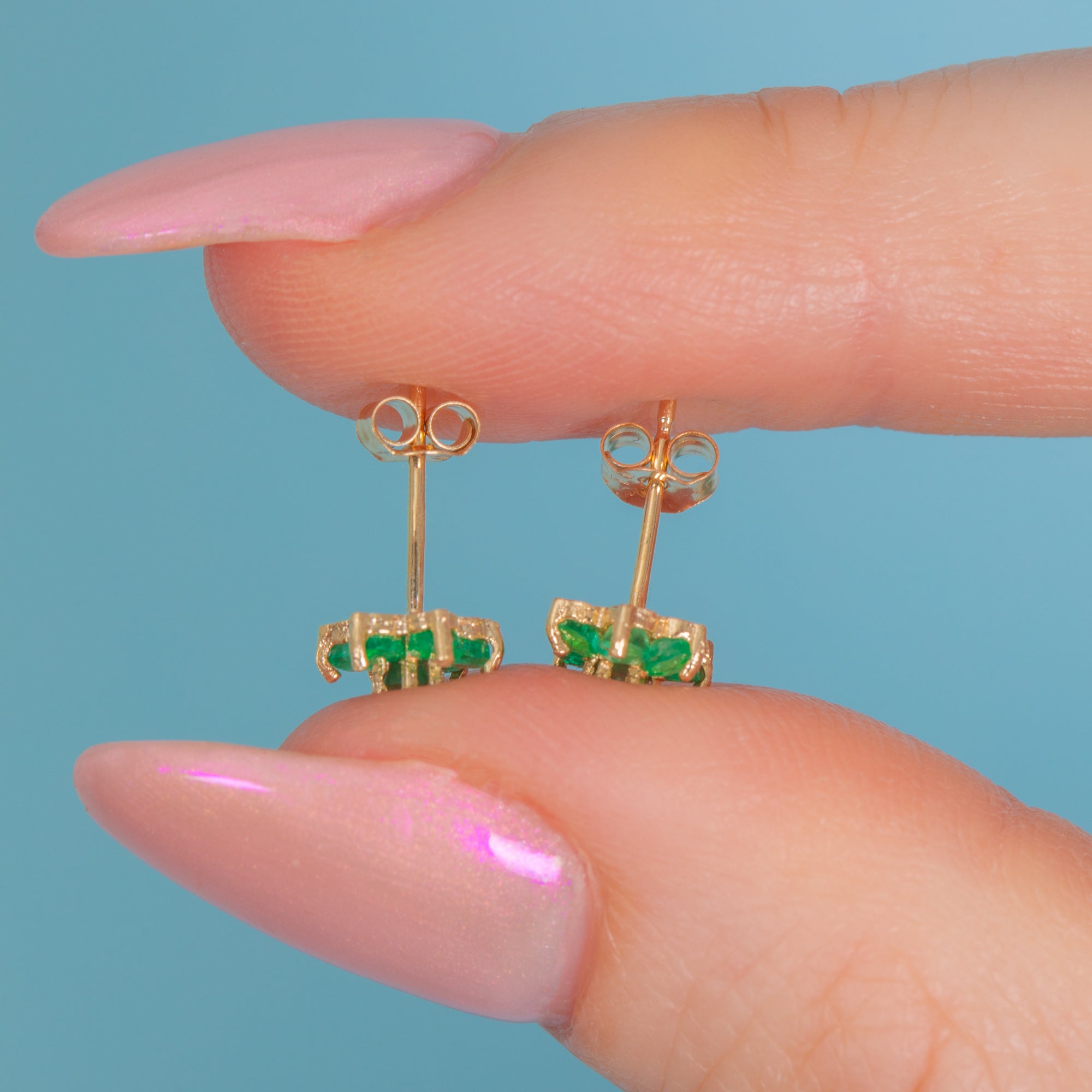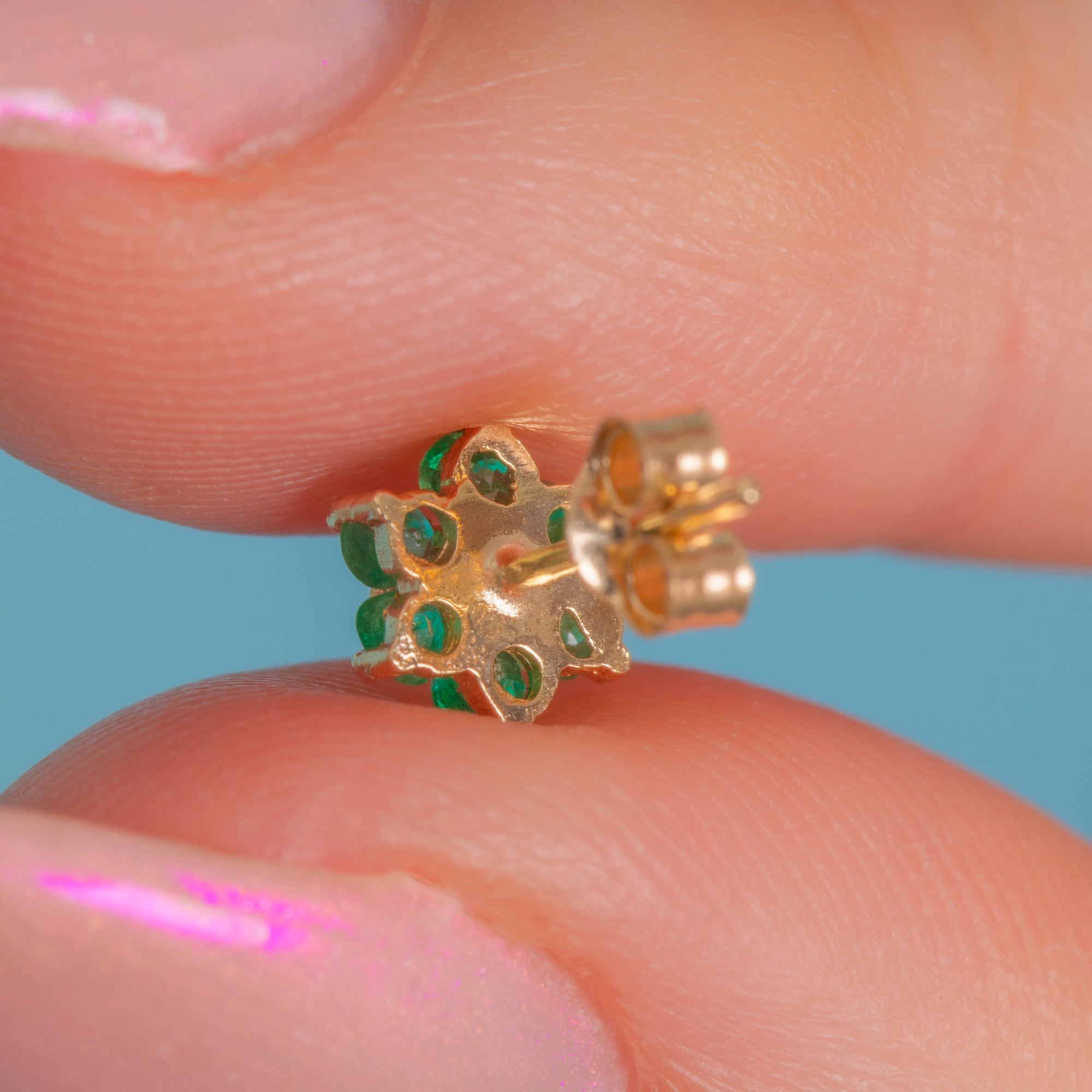 We love everything about this pair of 9ct Gold Emerald cluster stud earrings! These Gold studs have an undeniable elegance about them and will see you through the day and into the night with ease.