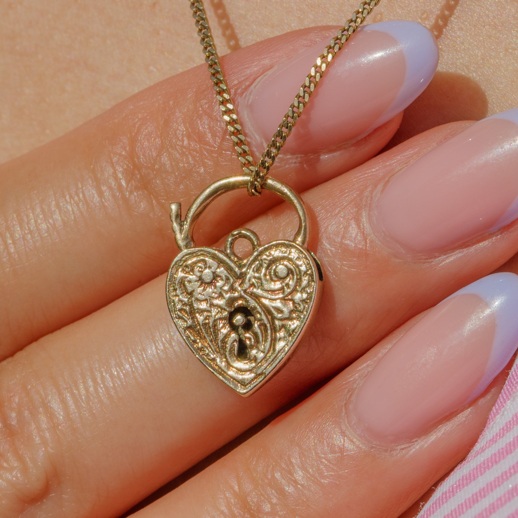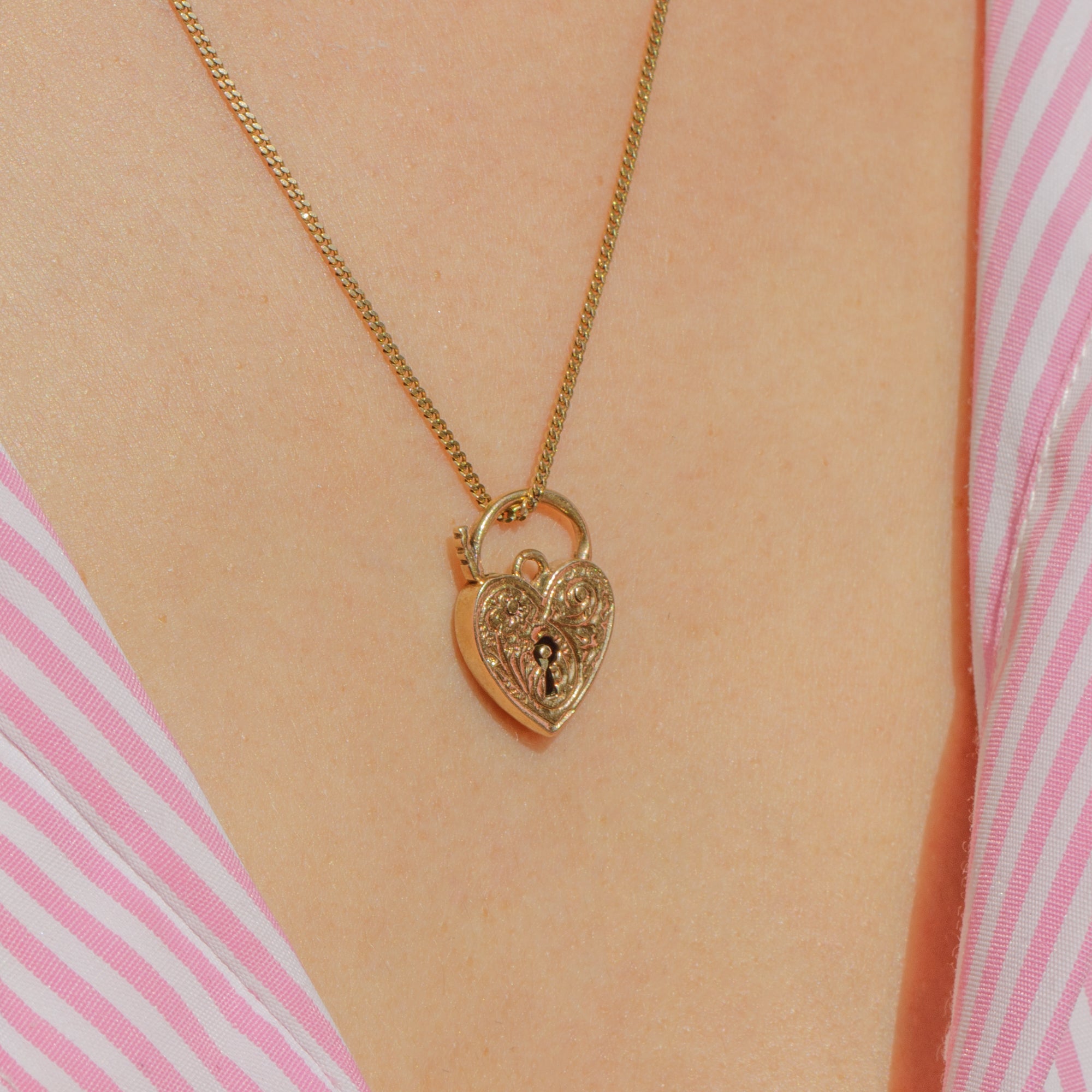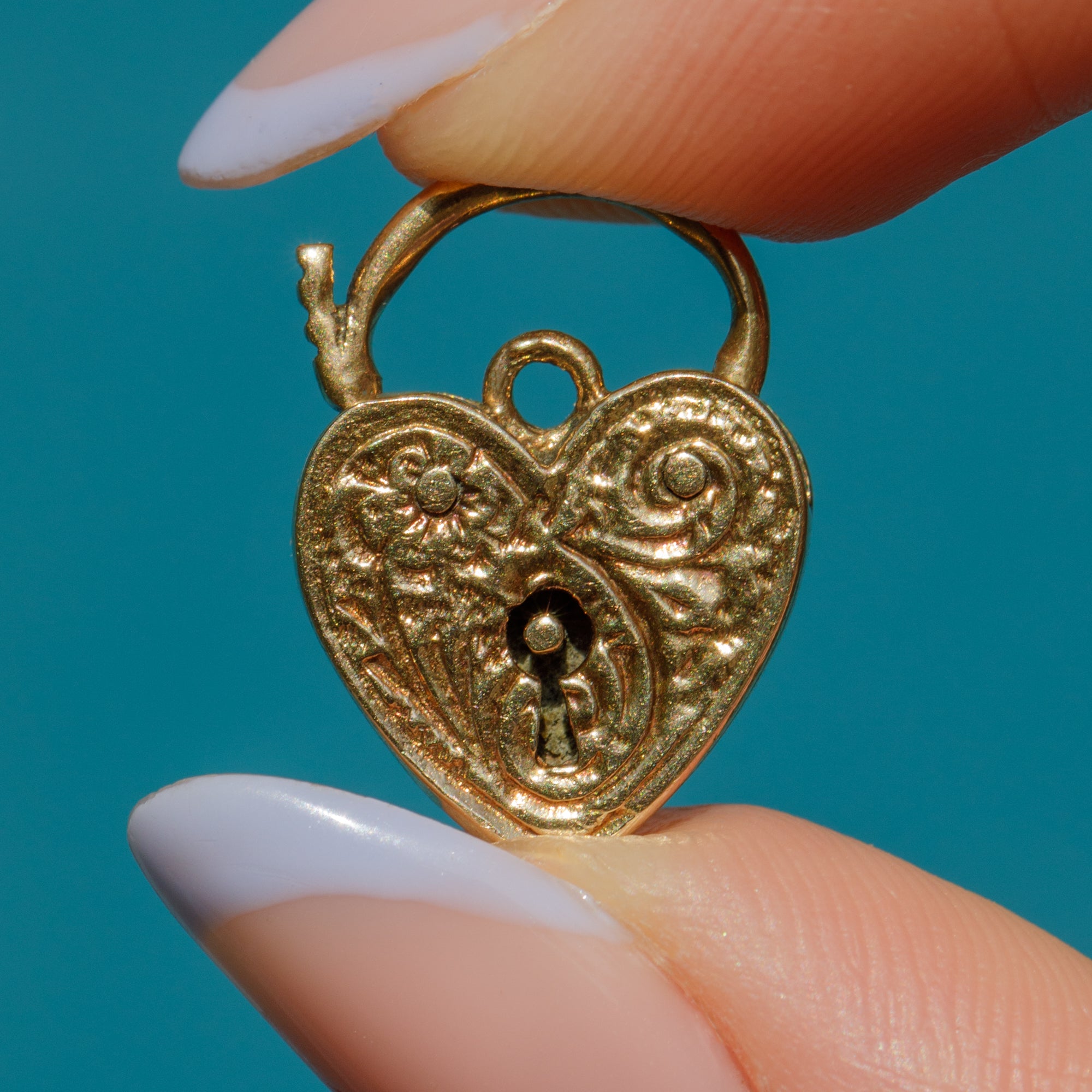 Symbolic of love and commitment, heart padlocks have been a favoured token of love since the Victorian era. With a fully functioning lever, this vintage Gold heart pendant can easily be styled with a Gold chain or bracelet!