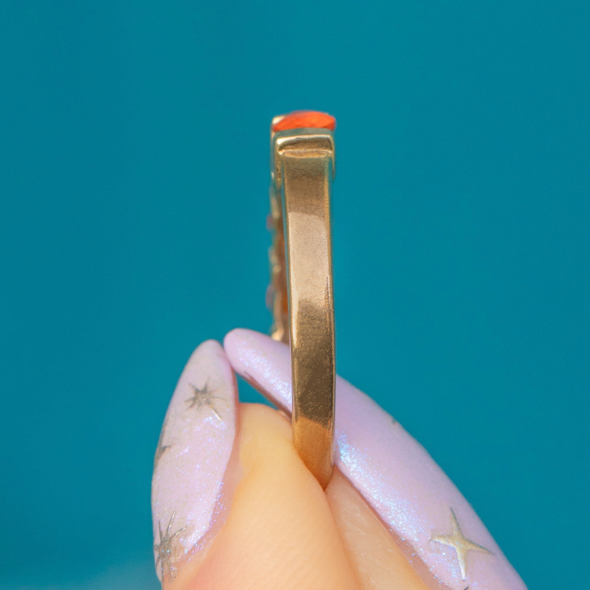 This vintage Opal ring has a low profile making it an easy choice for regular wear and allows you to stack it amongst your other favourite jewels. If you love classic designs with a unique twist, this Fire Opal ring will make a superb addition to your jewellery collection!