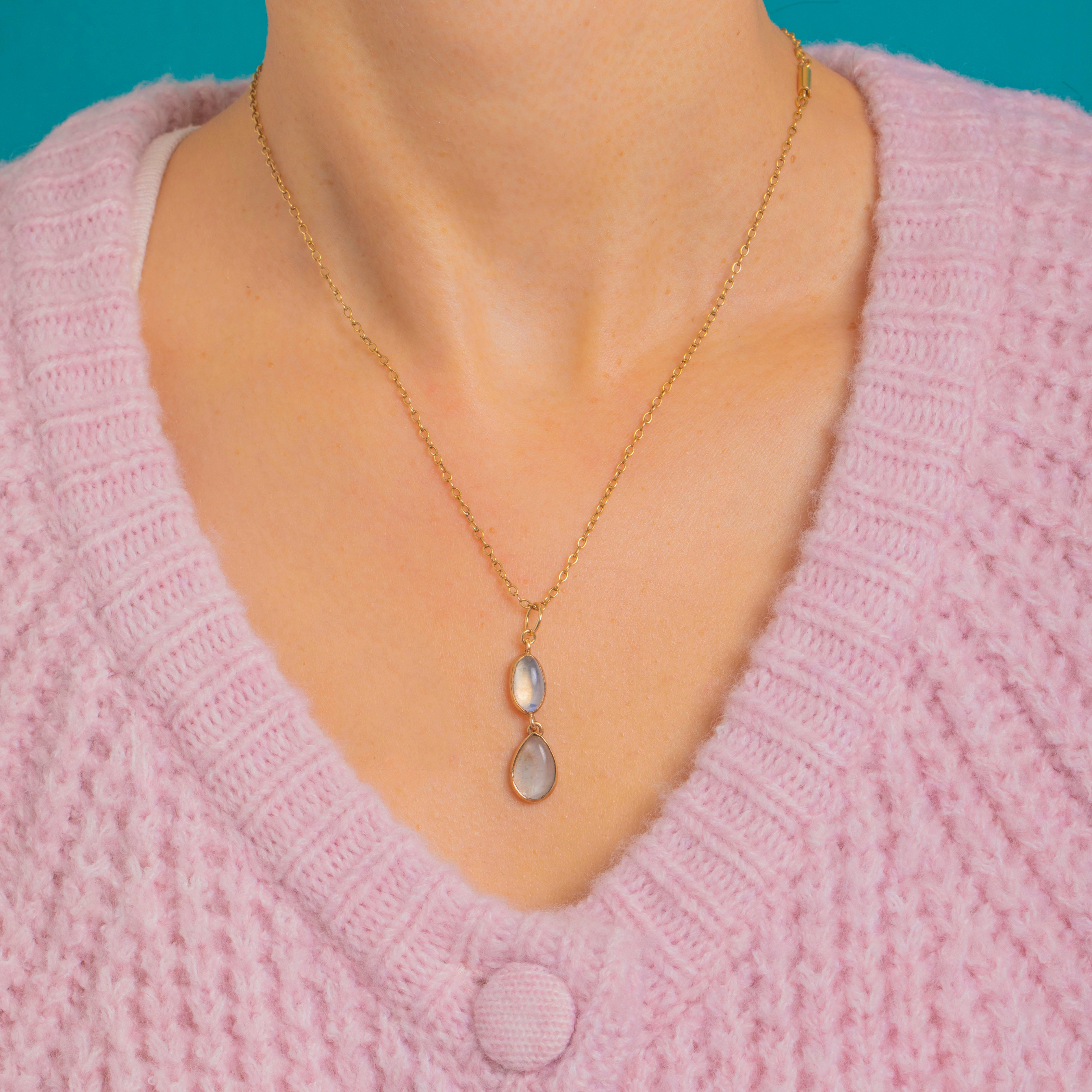 9ct Gold Foiled Moonstone Double Drop Pendant
