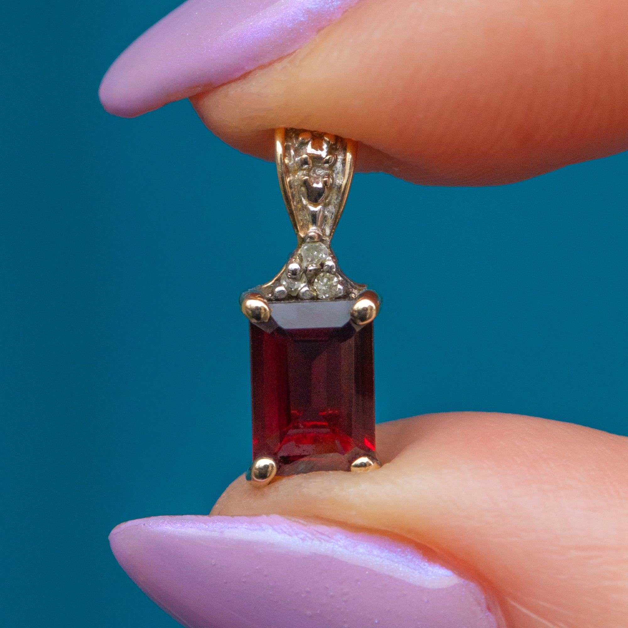 This 9ct Gold Garnet Diamond charm exudes elegance!