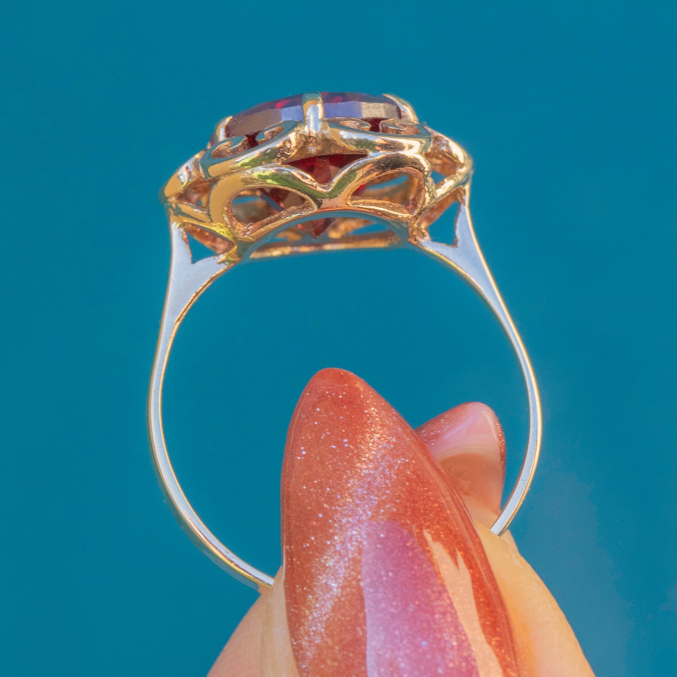 This 9ct Gold Garnet flower ring is a glamorous vintage piece for your attire!
