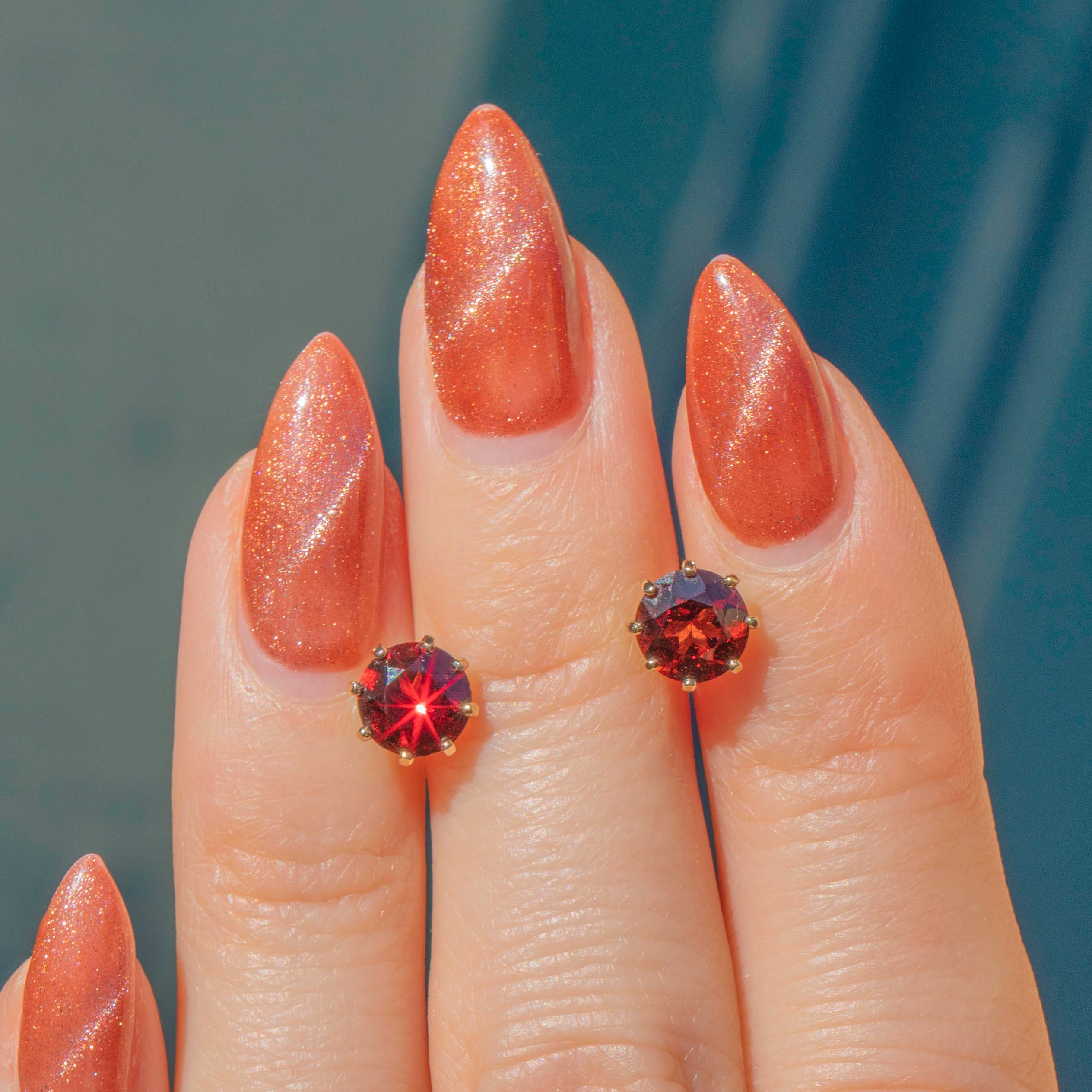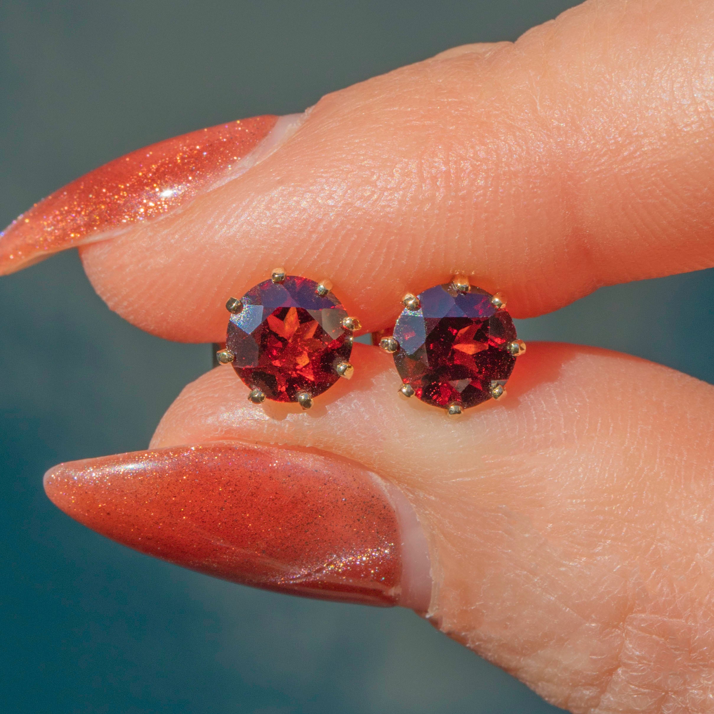 MEASUREMENTS: Garnets are 6mm in diameter, weighing approx. 1.30ct combined.