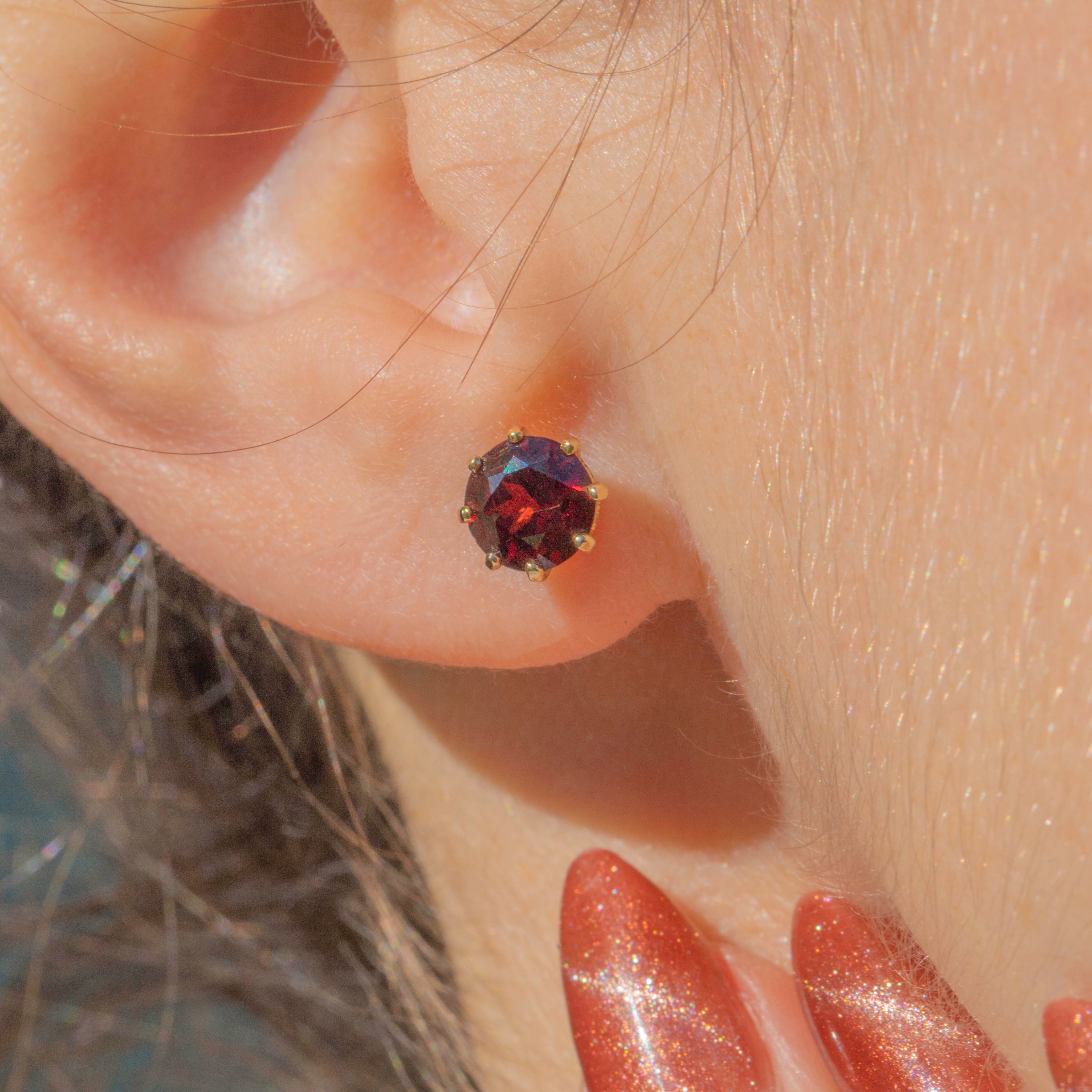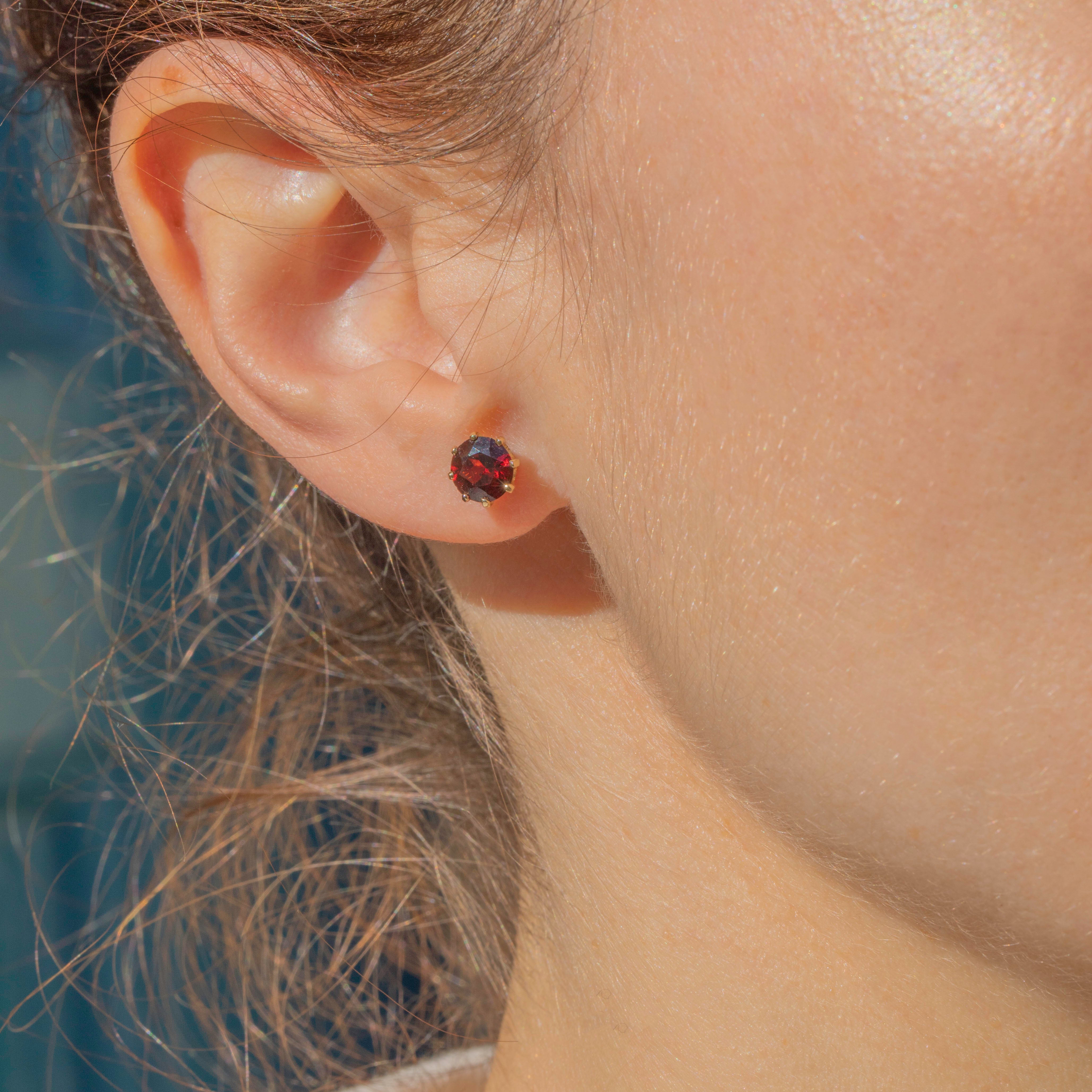 EXCELLENT: These 9ct Gold Garnet stud earrings are in excellent condition. Each Garnet is radiant, saturated in colour and secure in its setting. There is a minor fleabite on the side of one Garnet, however, this is very difficult to spot without a jeweller's loupe. With secure butterfly backs, you can wear these Garnet stud earrings with confidence!