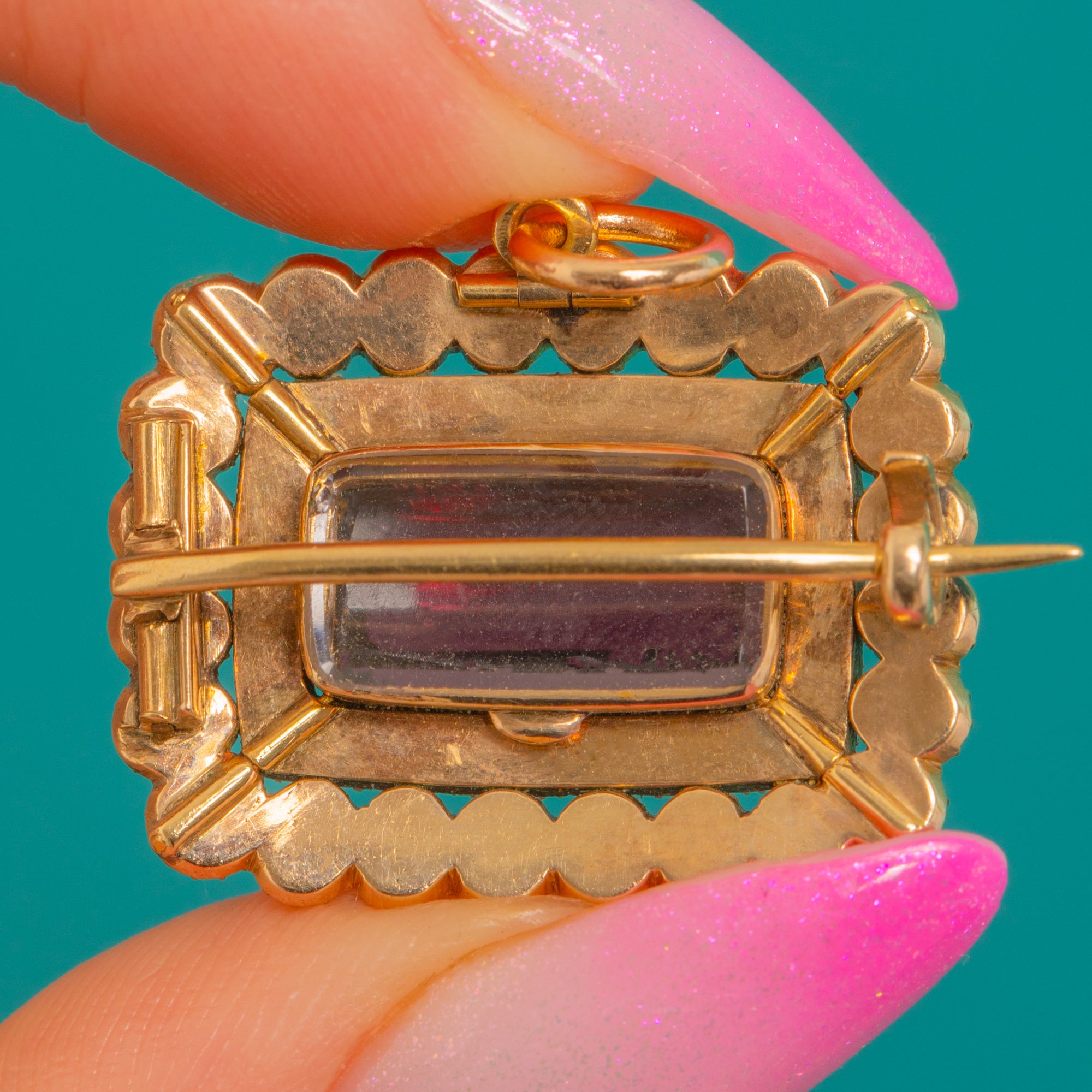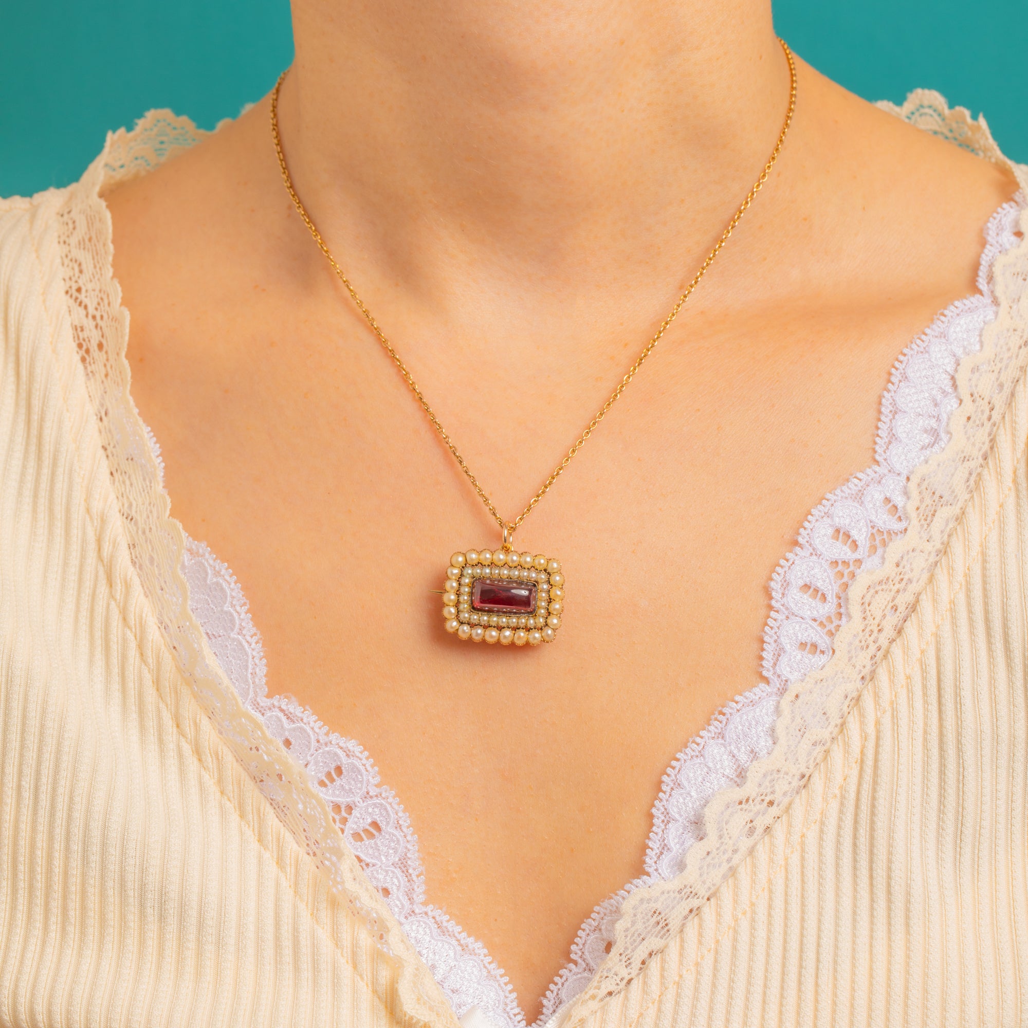 9金製 Georgian シュガーローフ ガーネットおよび天然真珠 ロケット式ペンダント