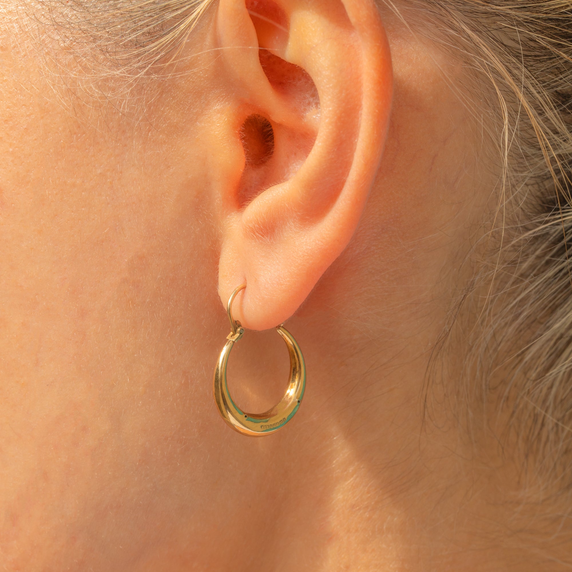 These vintage Gold hoops are the perfect pair for everyday wear! Crafted from solid 9ct Gold, each hoop has an elegantly graduating form and a gorgeous glossy surface that catches the light beautifully.