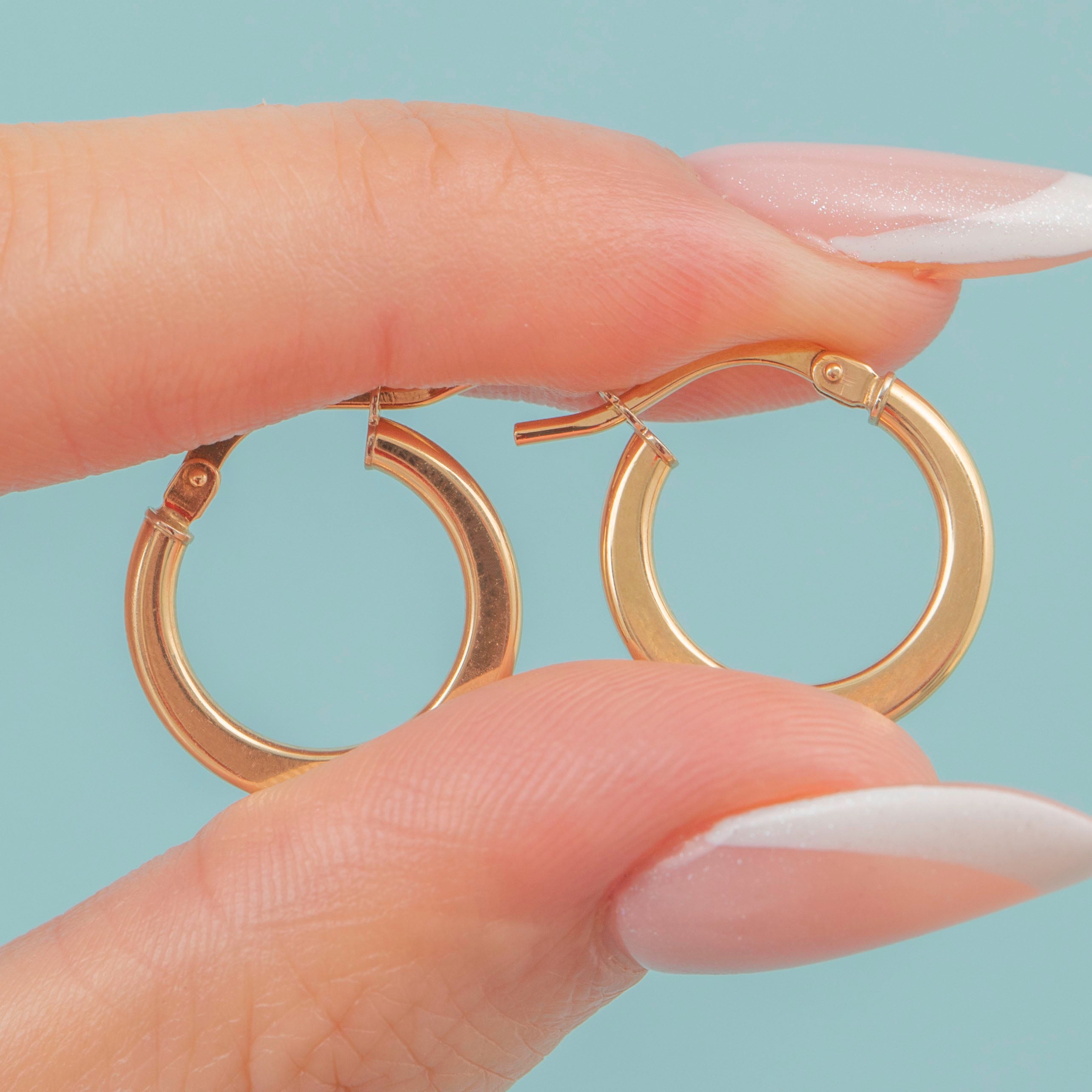 These 9ct Gold huggie hoop earrings are the perfect way to chic up any attire! Crafted entirely from buttery 9ct Gold, with a sleek boxed edge design, they will quickly become a staple piece in your jewellery collection.