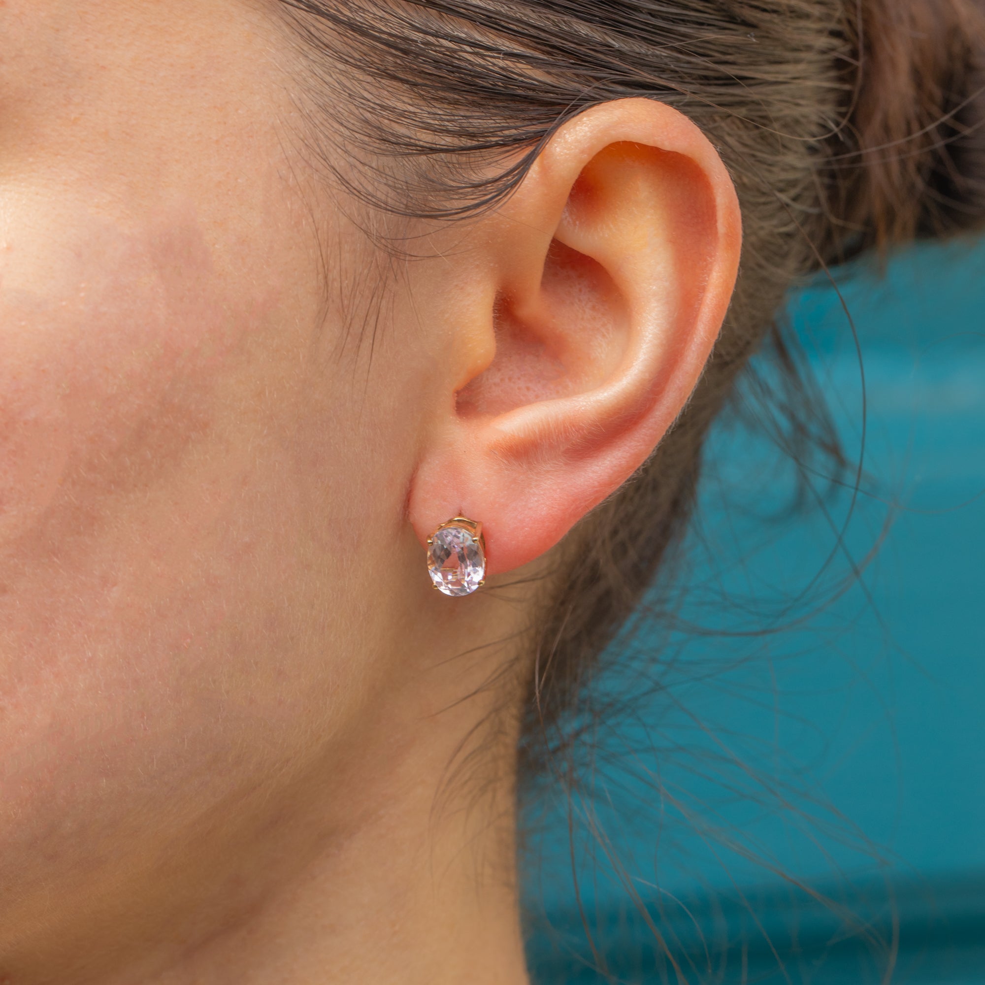 The large oval-cut Kunzites will provide wonderful coverage for your lobes and are held proudly in a double basket setting that allows the light to pour through from every angle!