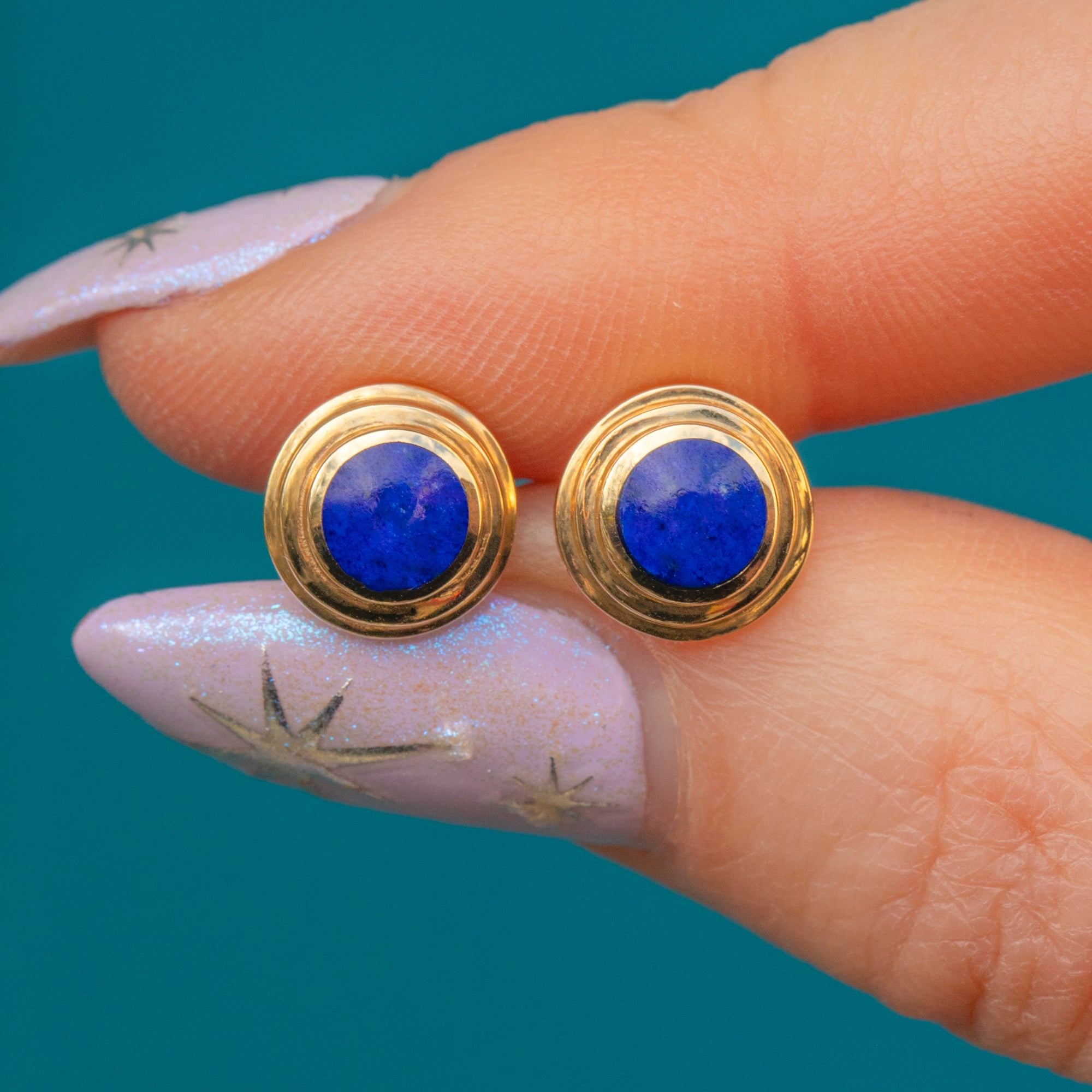 These striking vintage earrings have been set with cobalt blue Lapis Lazuli, hugged by buttery 9ct Gold bezels and textured borders that complement them beautifully!