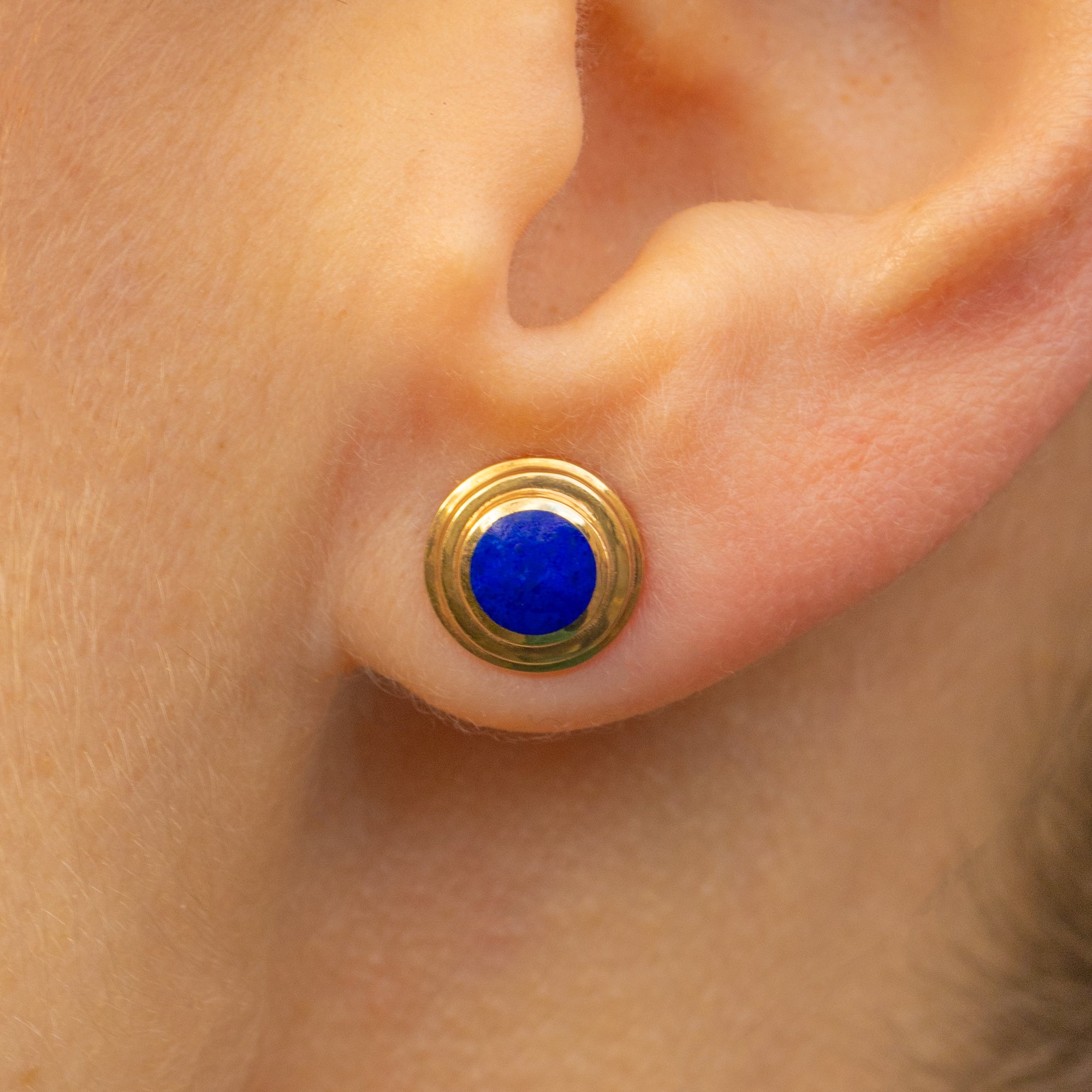 EXCELLENT. These 9ct Gold Lapis Lazuli stud earrings are in excellent condition! The Lapiz Lazuli are smoothly domed and securely set, with no surface wear to note. The Gold is bright and buttery and the butterfly-backs are snug-fitting, so you can enjoy wearing these vintage Lapis Lazuli studs confidently!