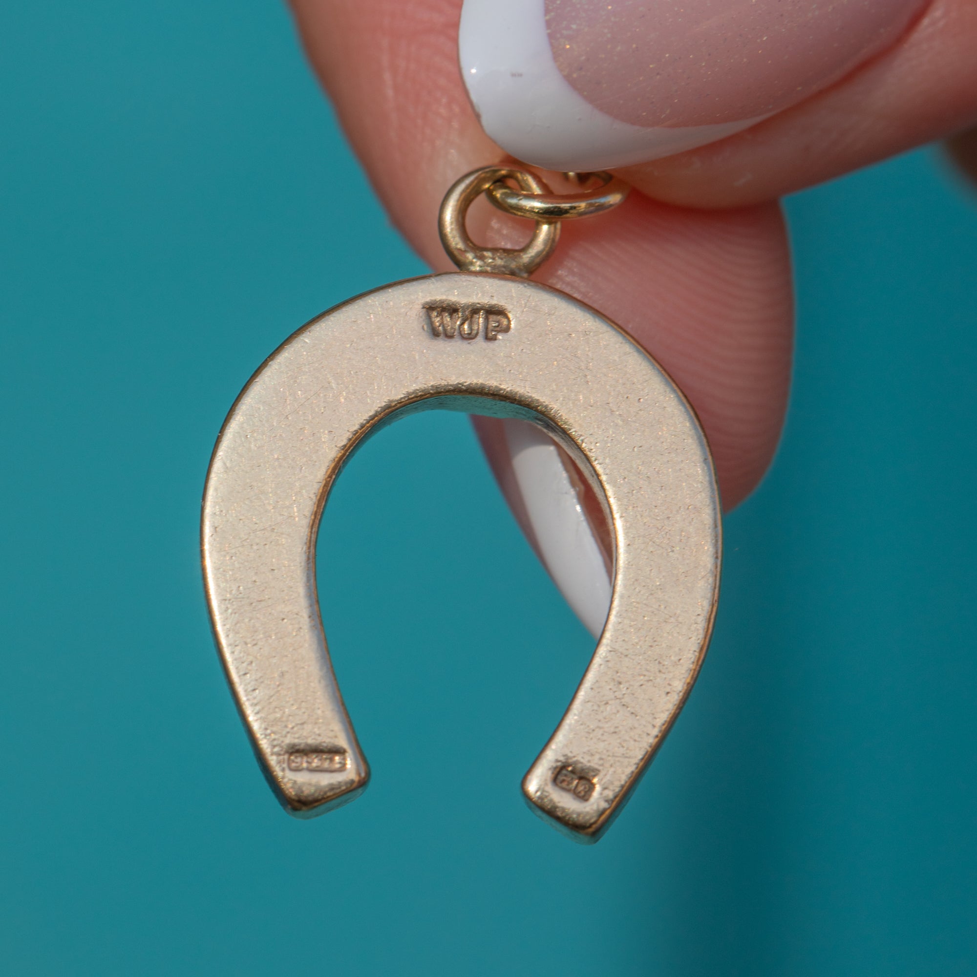EXCELLENT: We are pleased to report that this 9ct Gold Lucky Horseshoe Pendant is in excellent condition. Her 9ct Gold is glossy and smooth while her shape has maintained its original form. Securely attached to its jump ring, you can wear this beautiful Gold horseshoe charm with confidence.