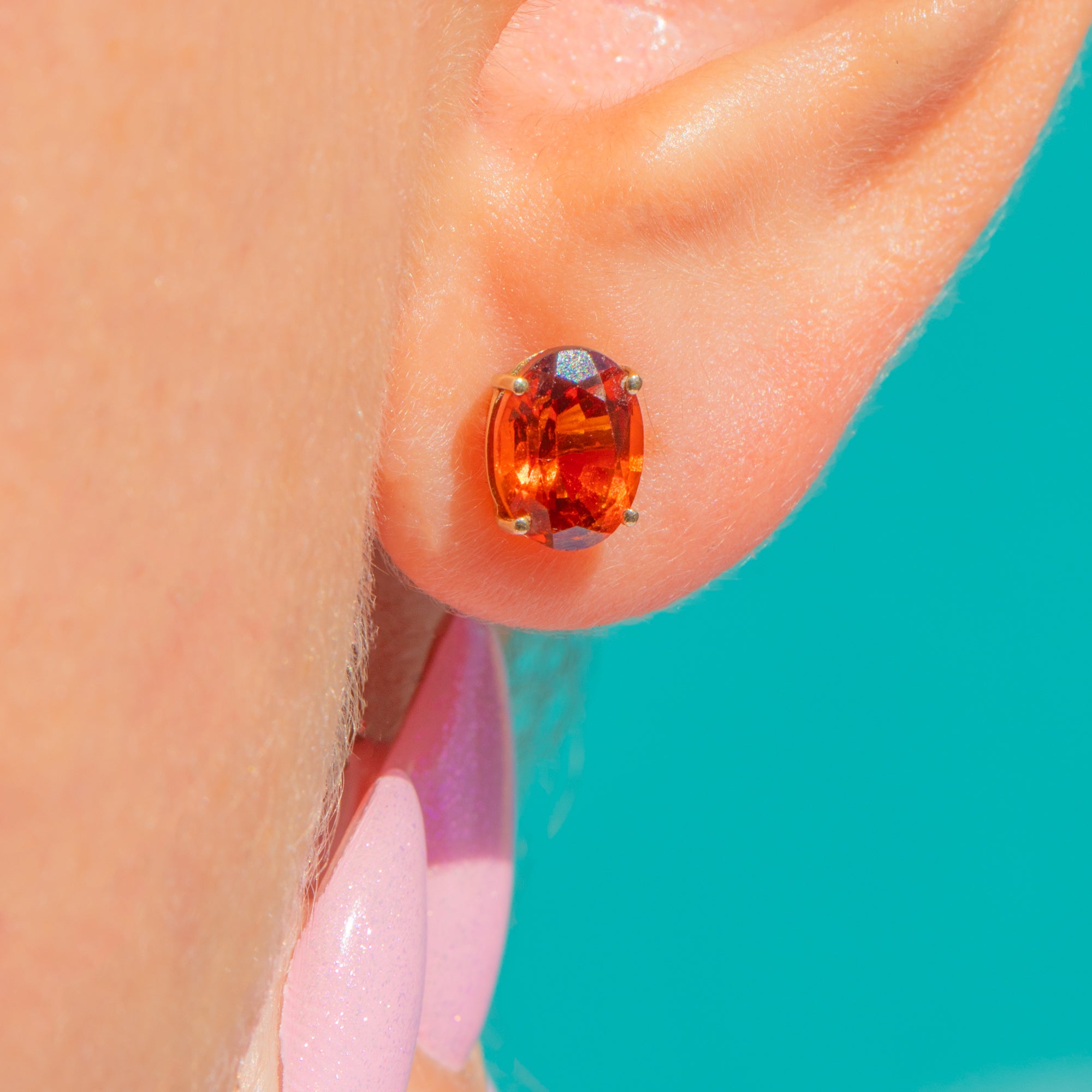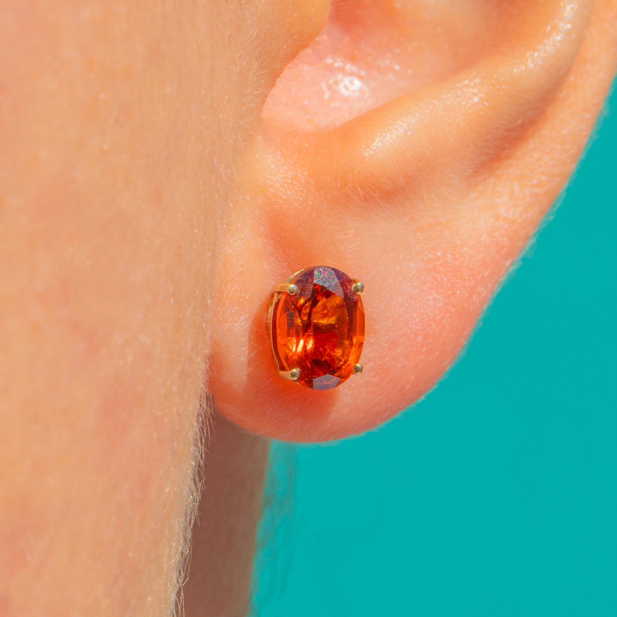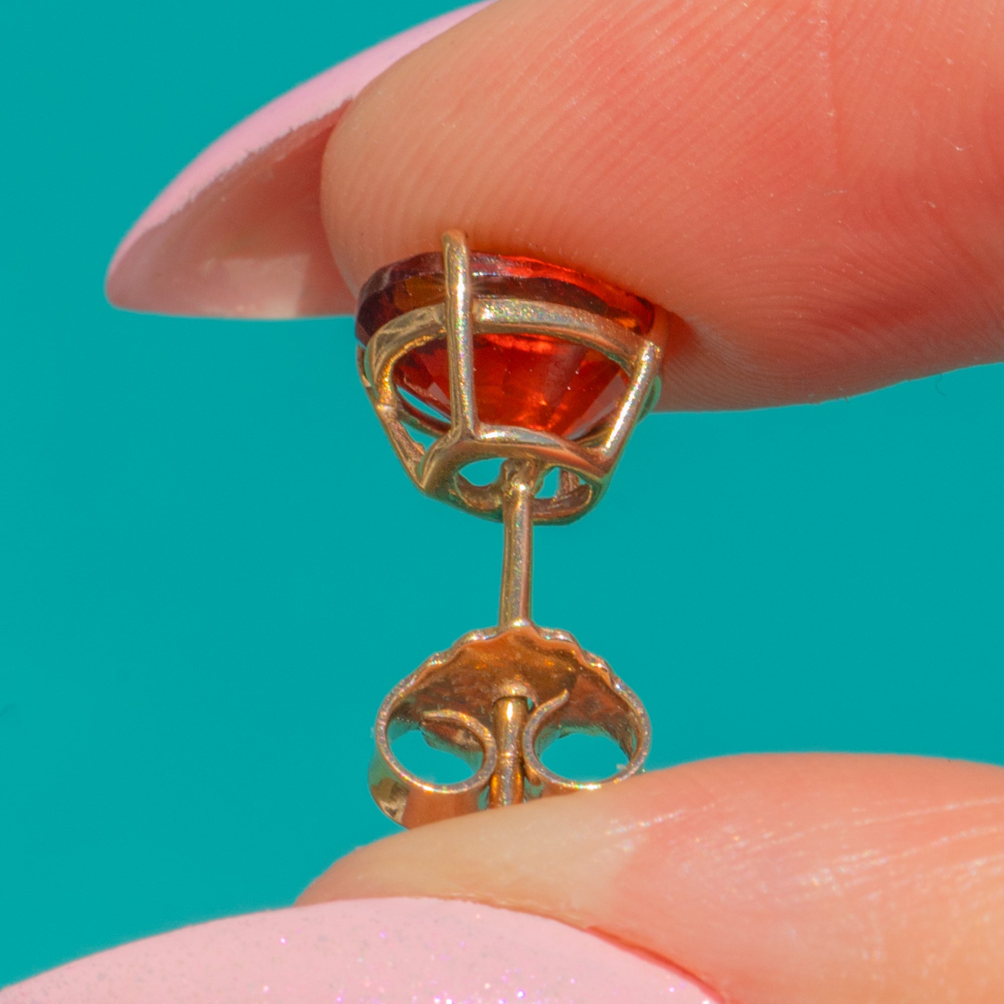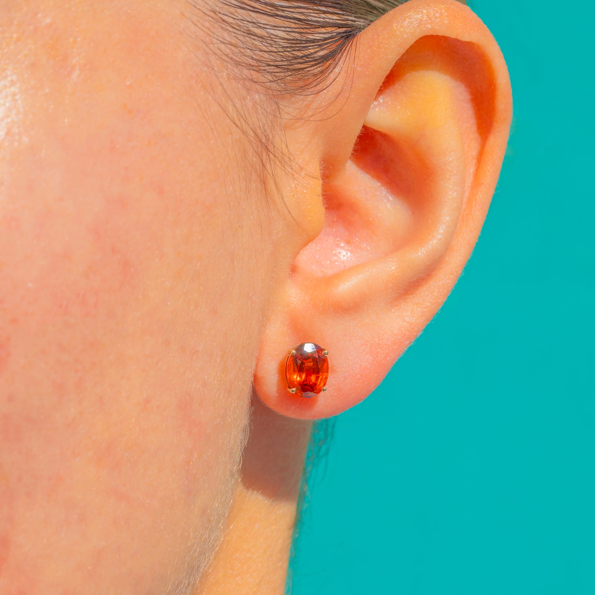 マデイラの陽光を思わせる豊かな輝きを湛えた、ヴィンテージ9ctゴールド製スタッドピアス。鮮やかなオーバルカットのシトリンが、クラシックな4本爪セッティングで美しく引き立ちます。洗練されたミニマルなシルエットが、濃密なオレンジの色彩を主役に据え、時代を超えて愛される華やかさと現代的な軽やかさを兼ね備えています。