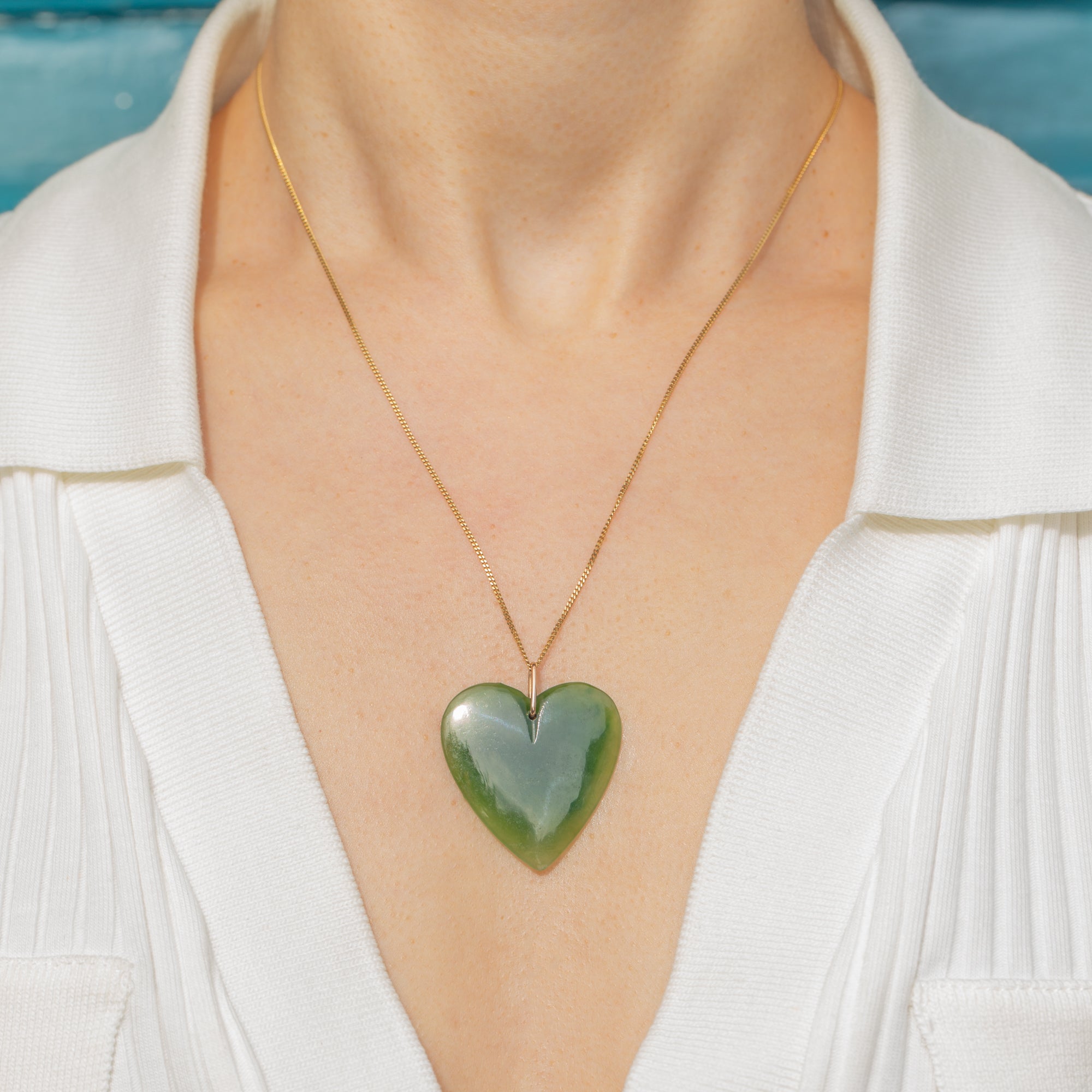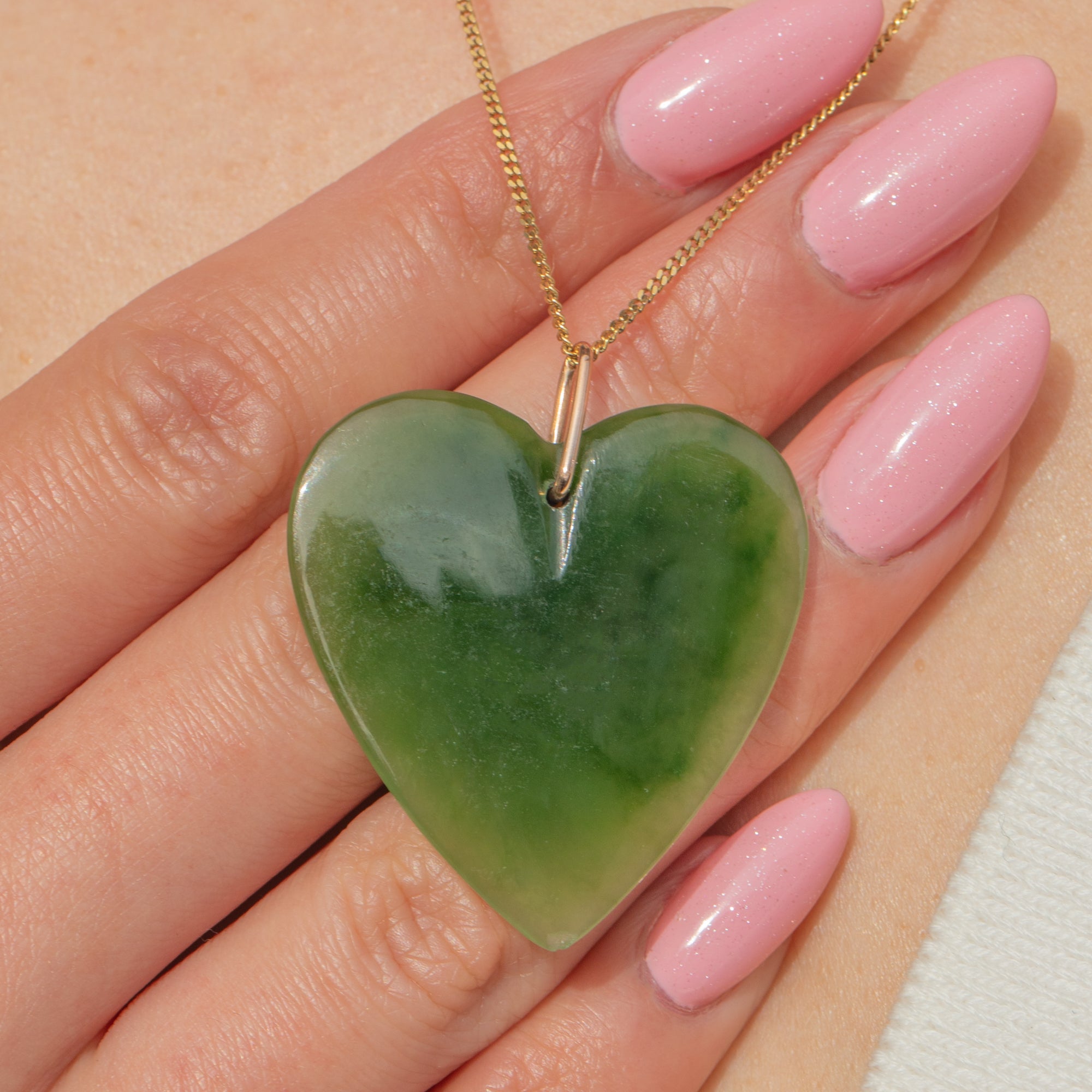 9ct Gold Nephrite Jade Heart Pendant