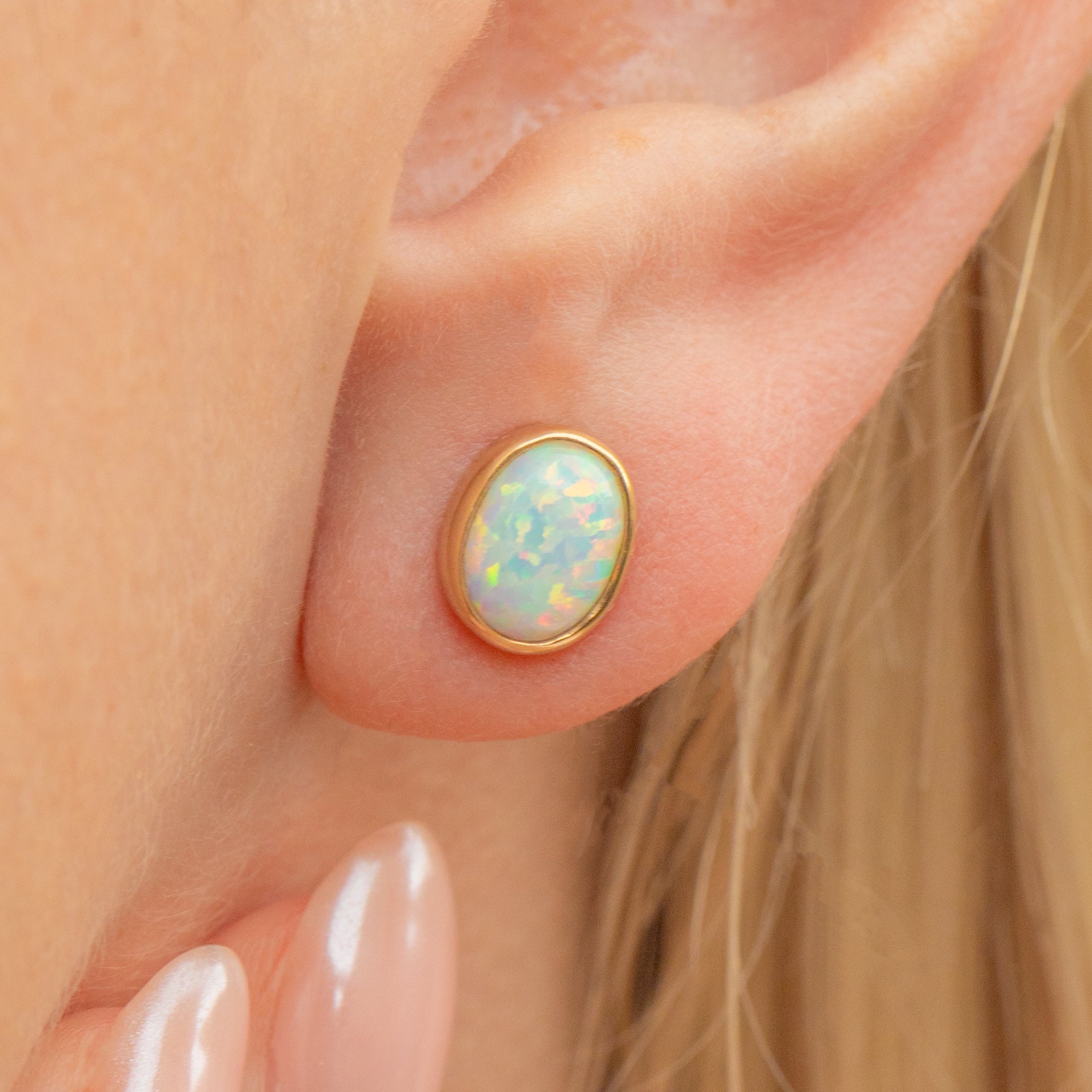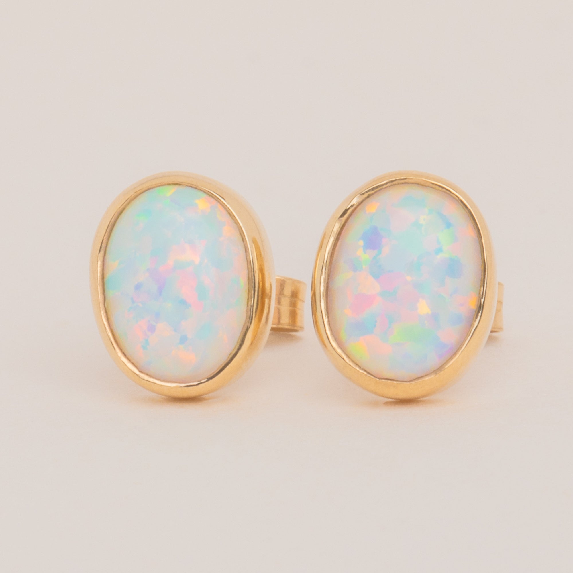 9ct Gold Opal Bezel Stud Earrings